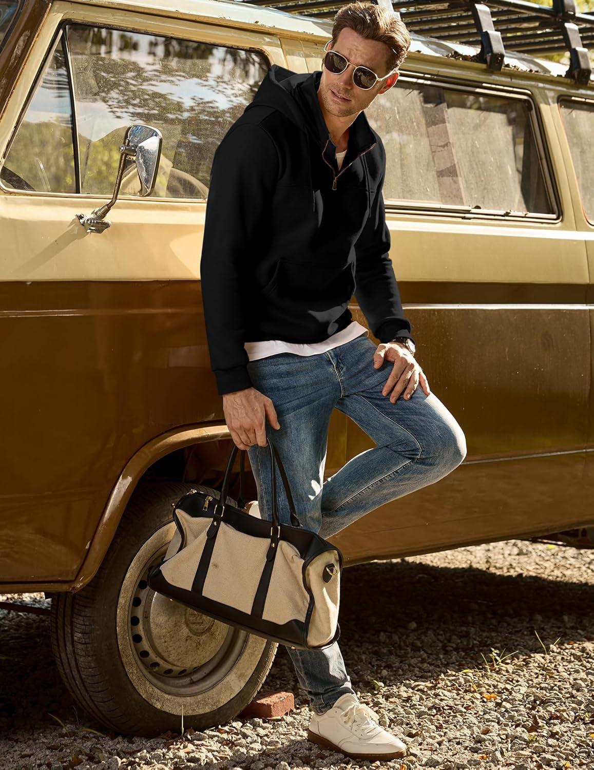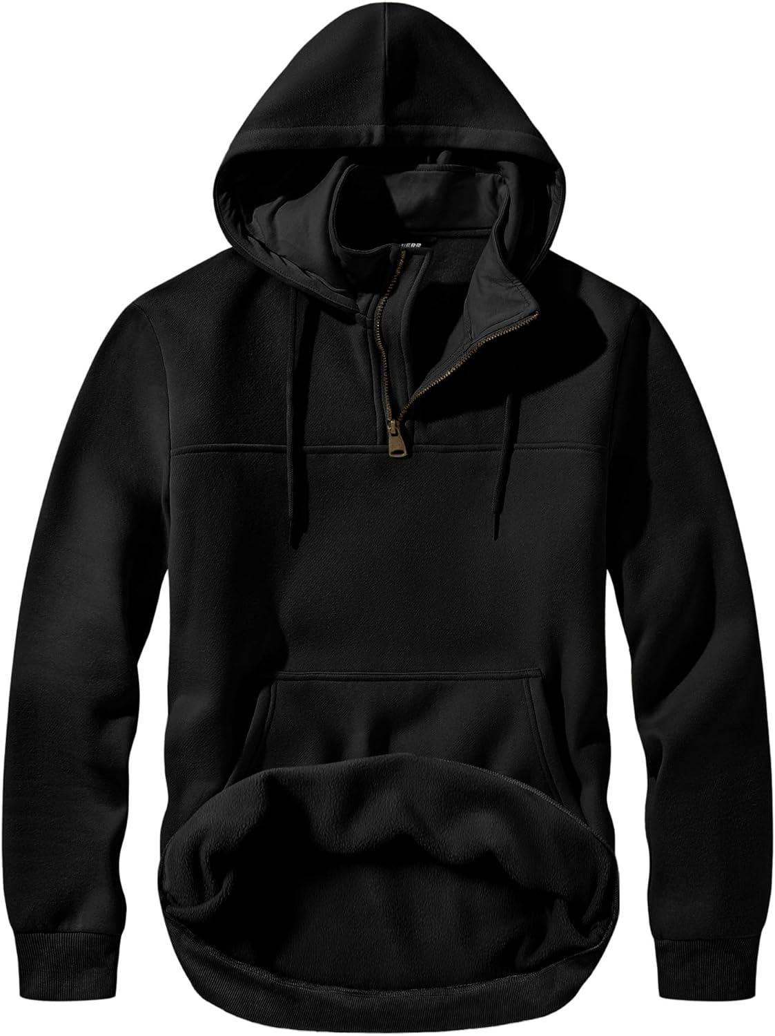 JMIERR Mens Casual Cotton Hoodies Drawstring Quarter Zip Pullover Sweatshirts(00 Black)