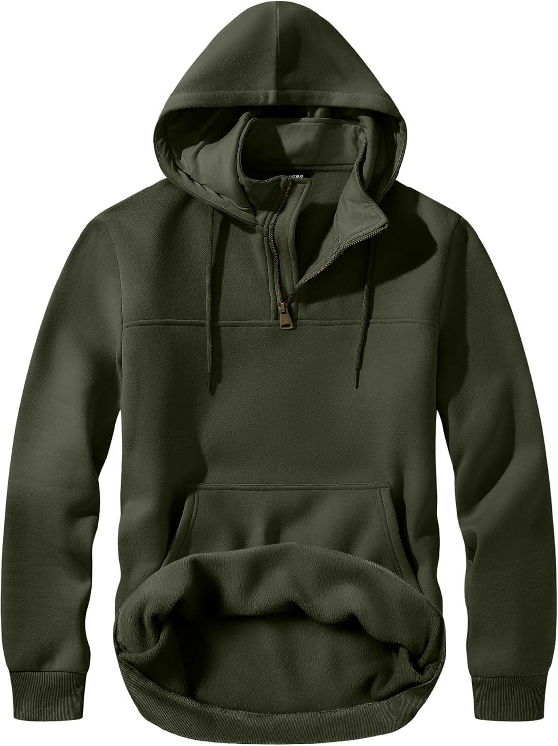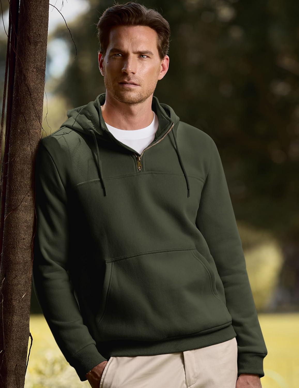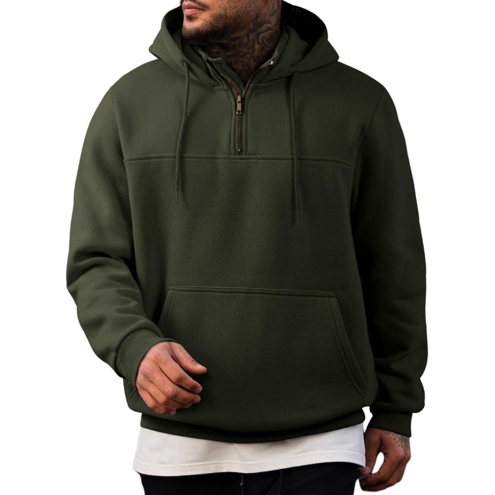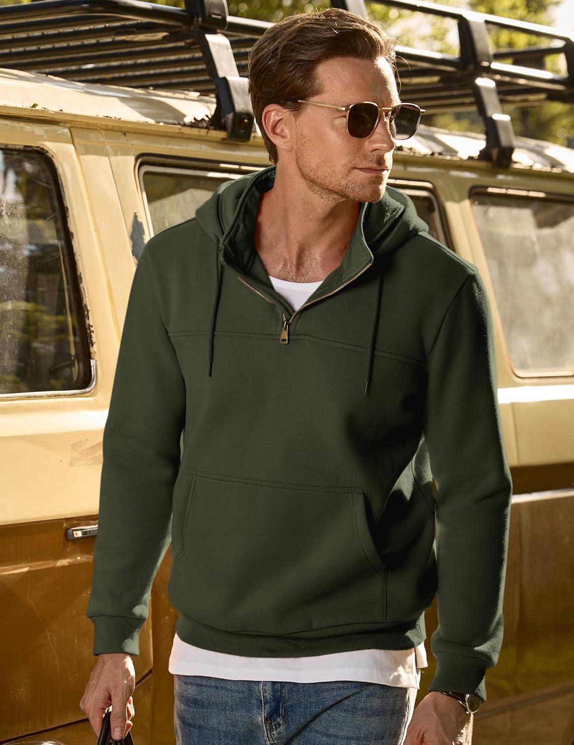 JMIERR Mens Casual Cotton Hoodies Drawstring Quarter Zip Pullover Sweatshirts(01 Green)