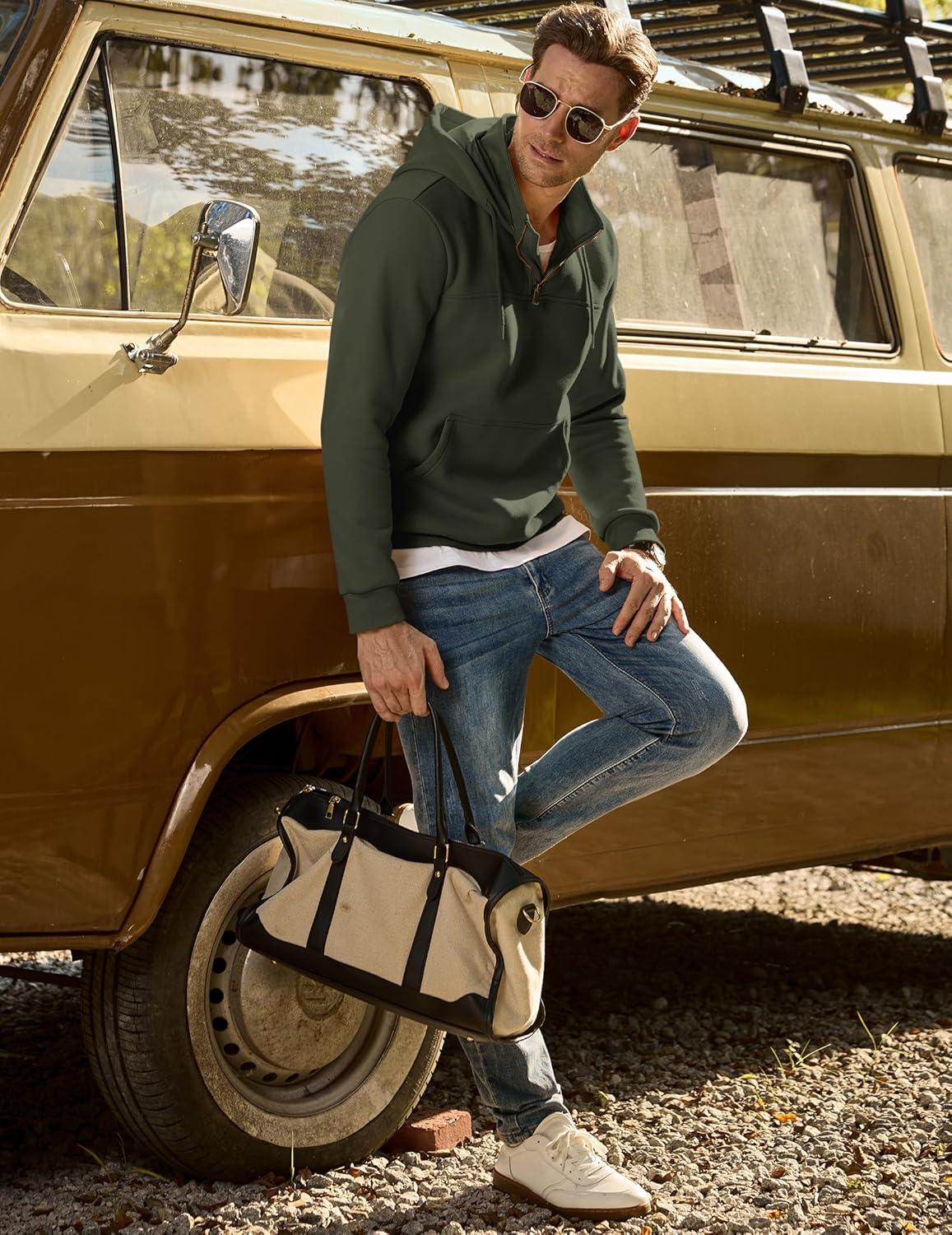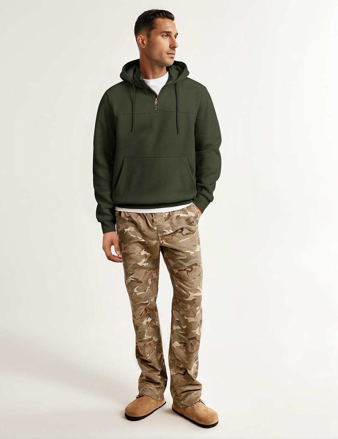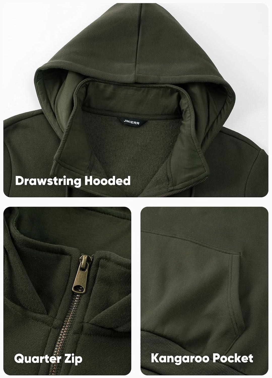 JMIERR Mens Casual Cotton Hoodies Drawstring Quarter Zip Pullover Sweatshirts(01 Green)