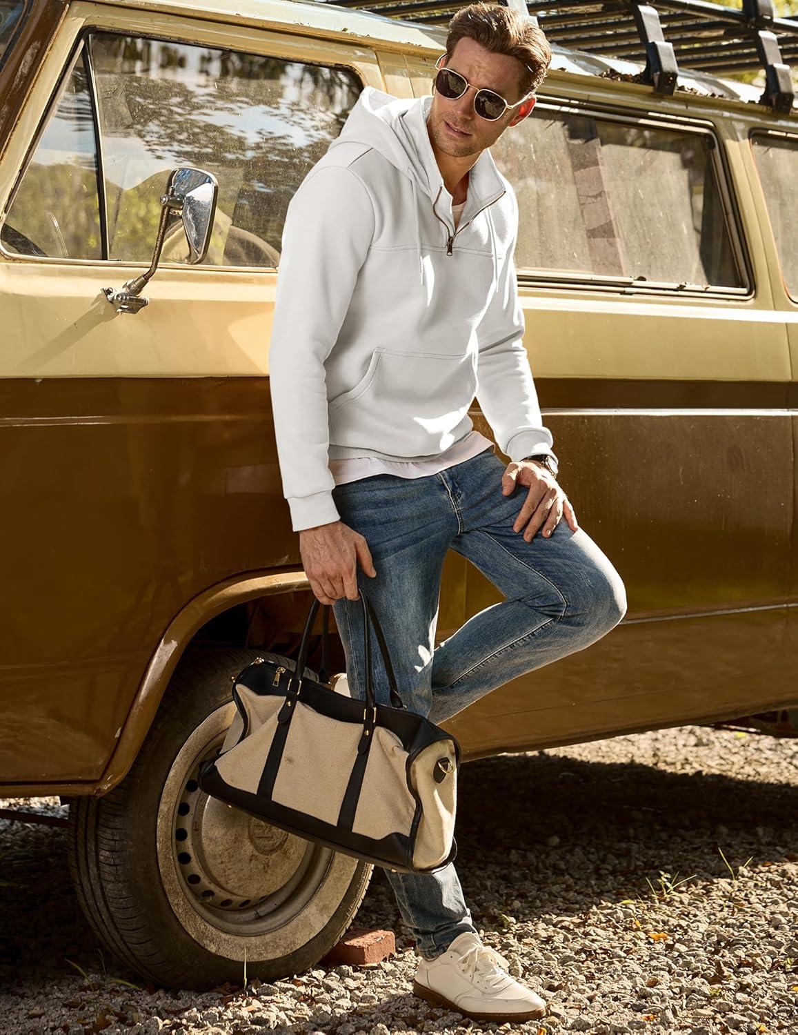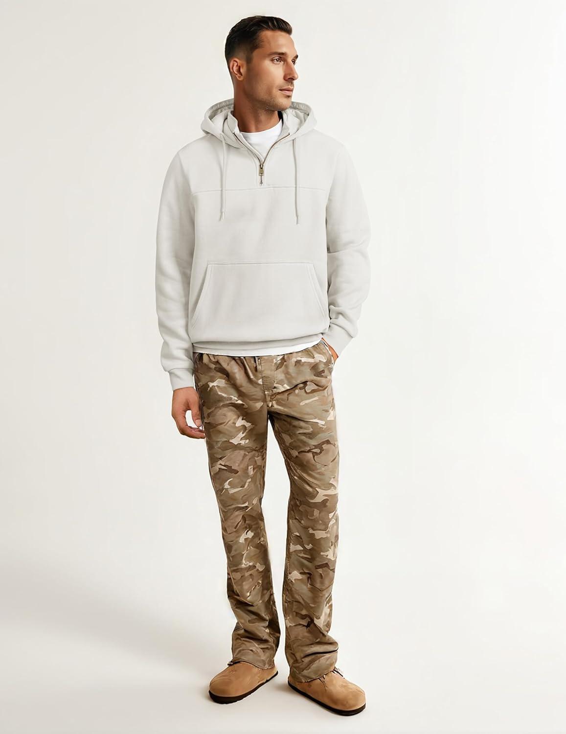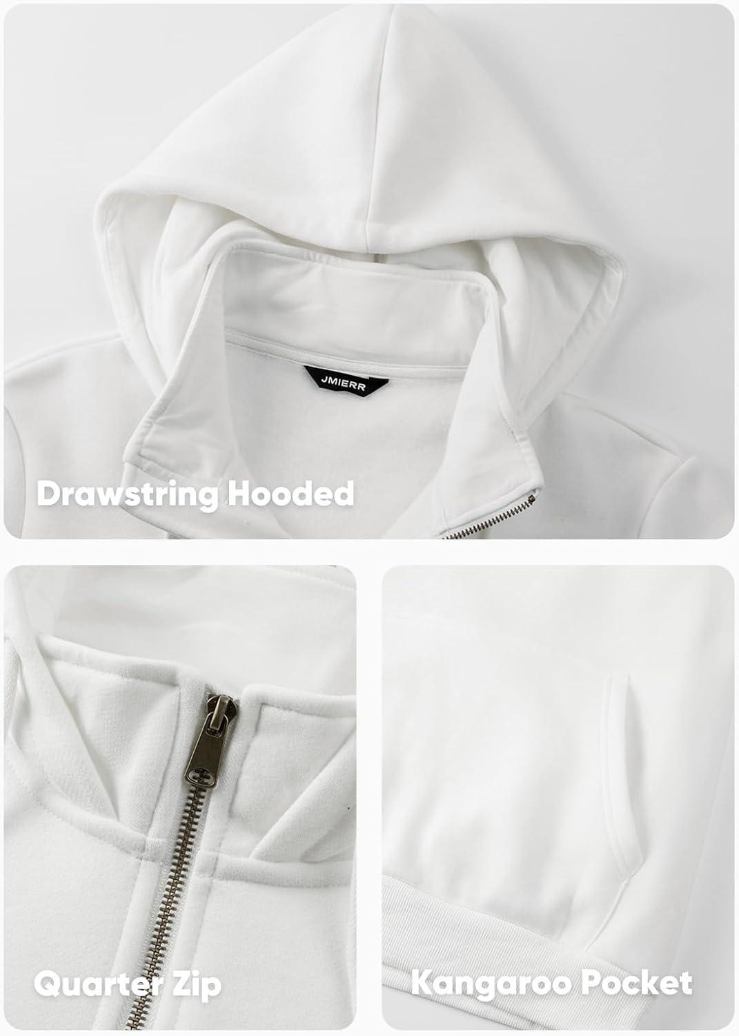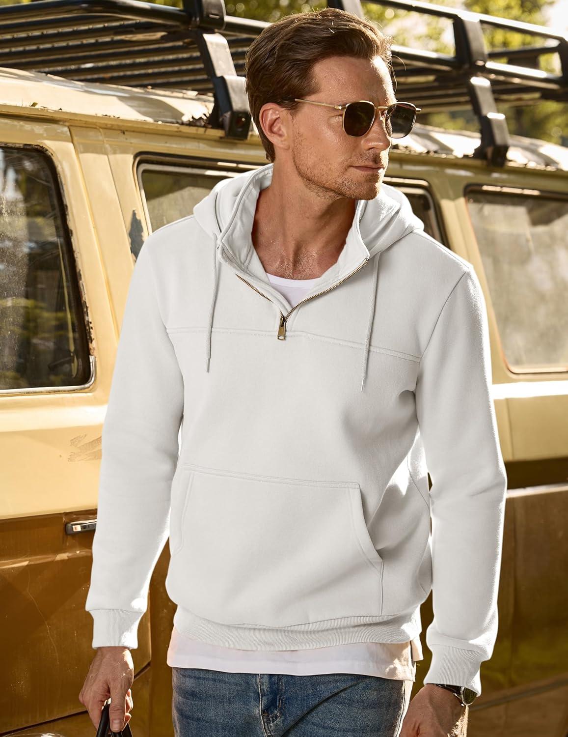 JMIERR Mens Casual Cotton Hoodies Drawstring Quarter Zip Pullover Sweatshirts(04 White)