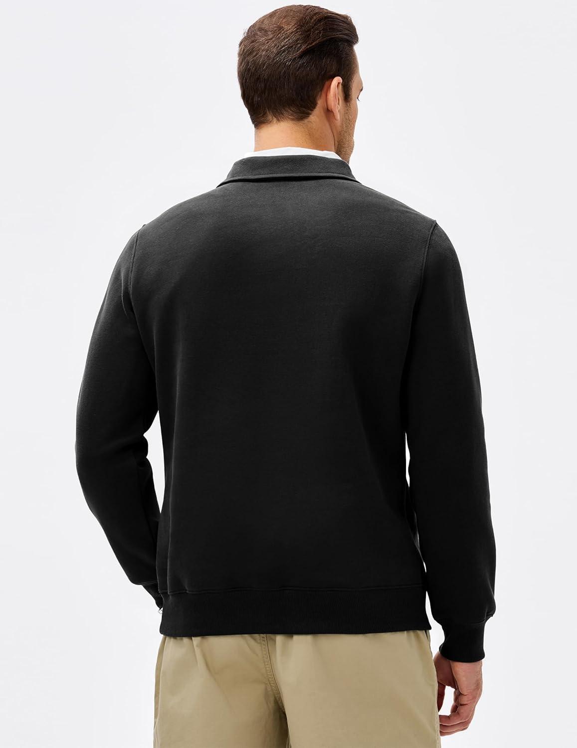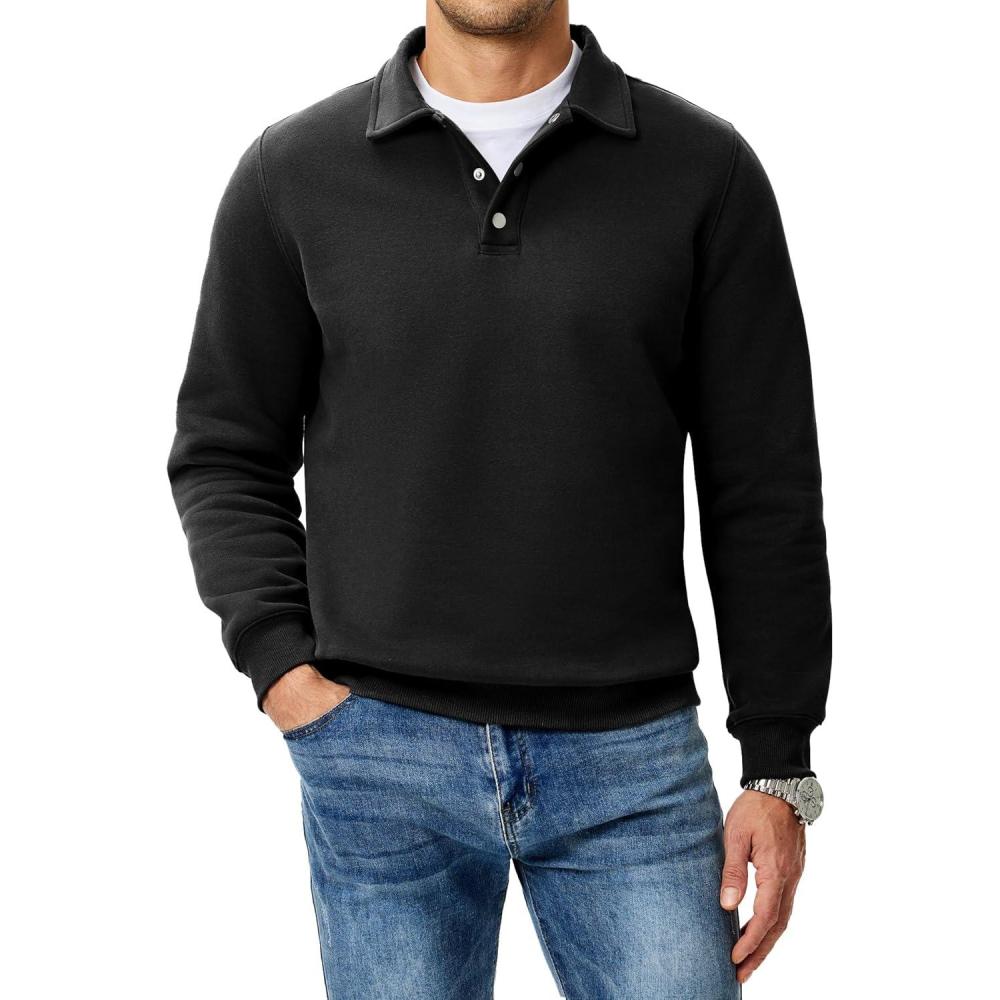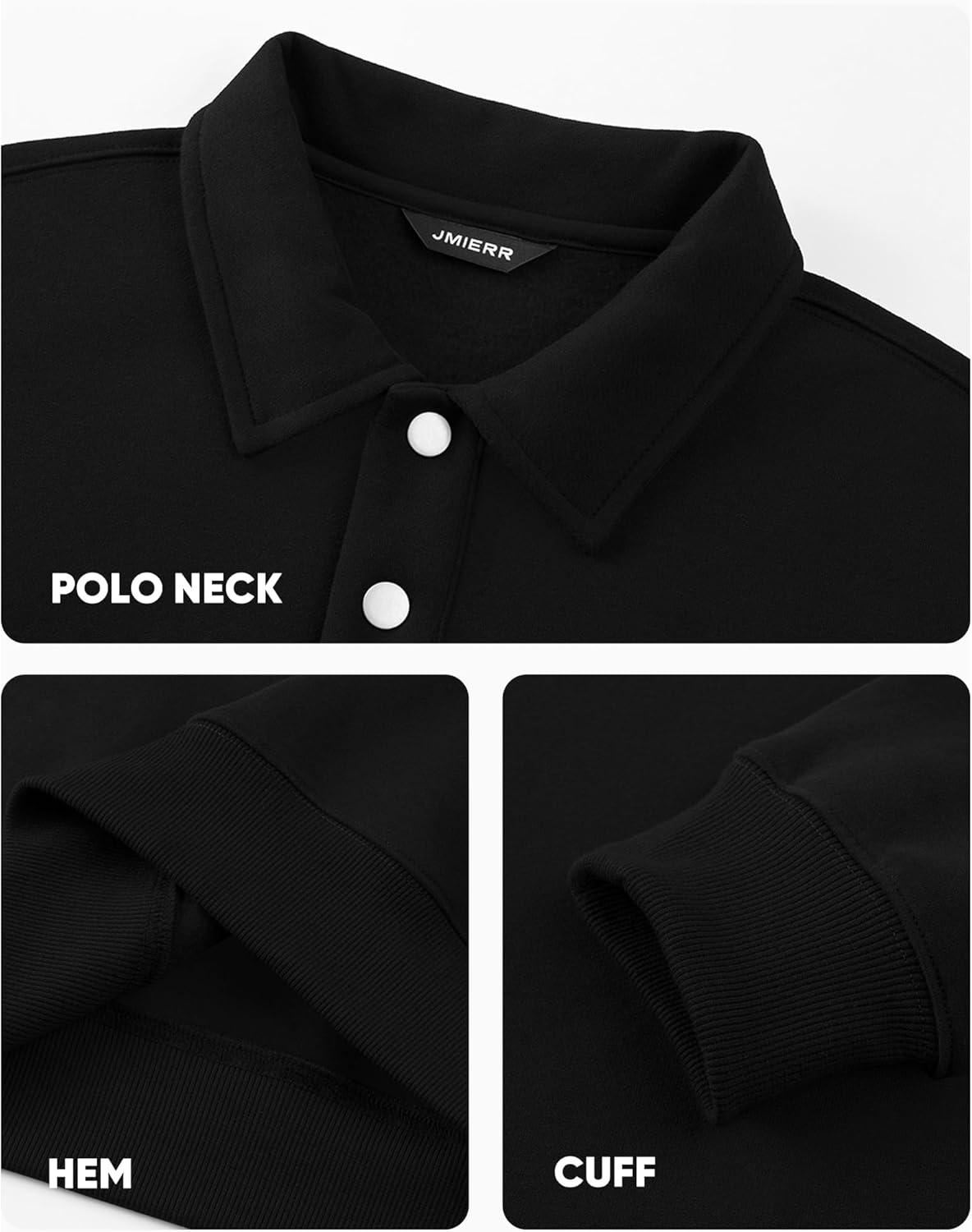 JMIERR Mens Casual Cotton Polo Sweatshirts Long Sleeve Button Collared Pullover Shirts(Black)