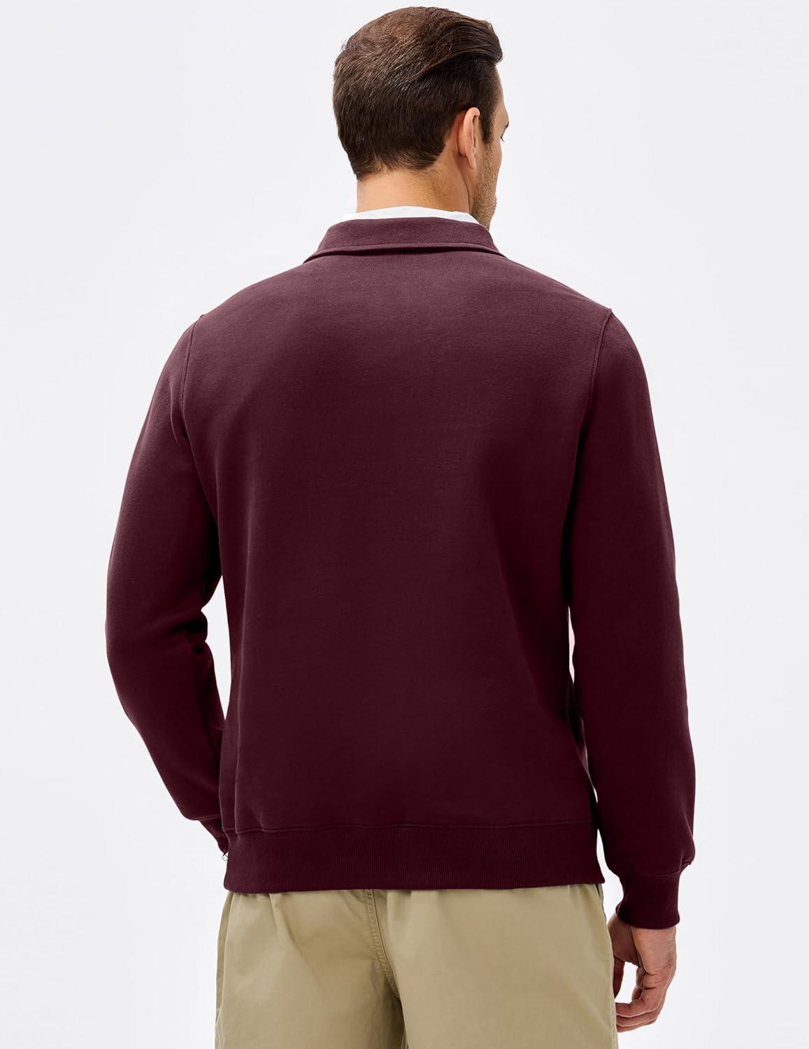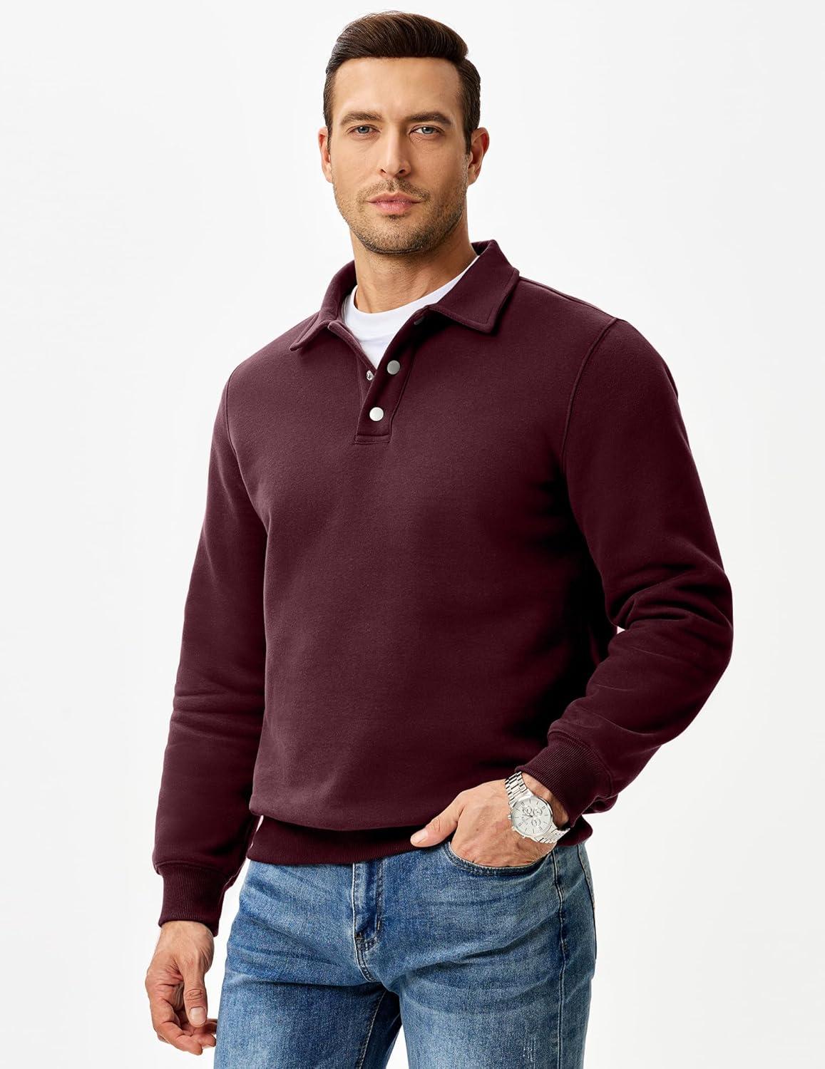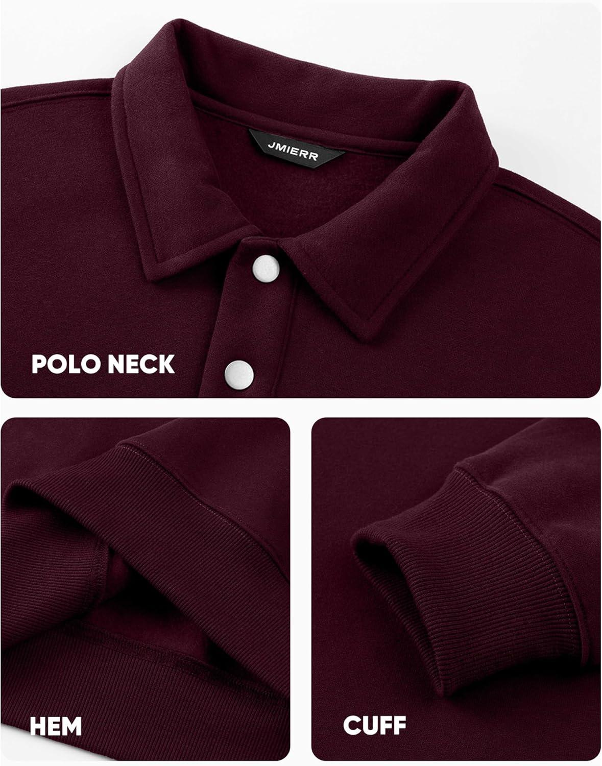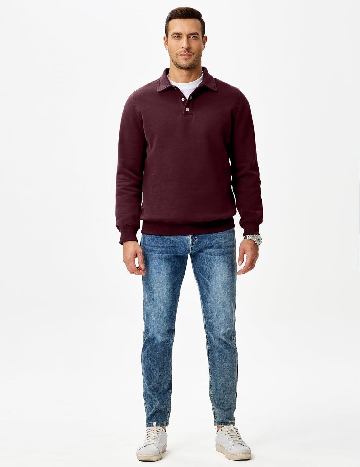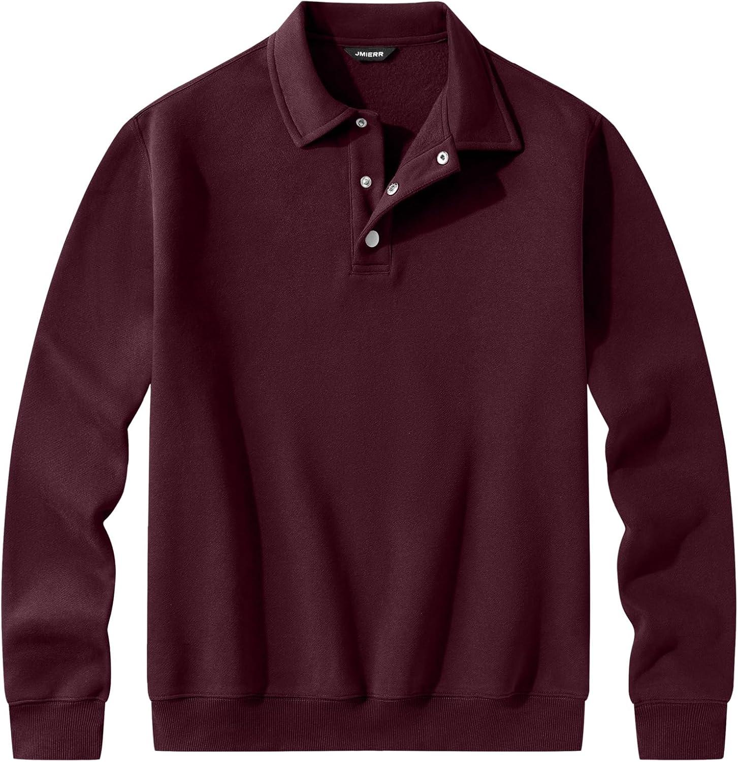 JMIERR Mens Casual Cotton Polo Sweatshirts Long Sleeve Button Collared Pullover Shirts(Red)