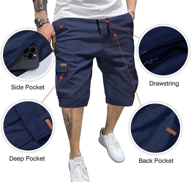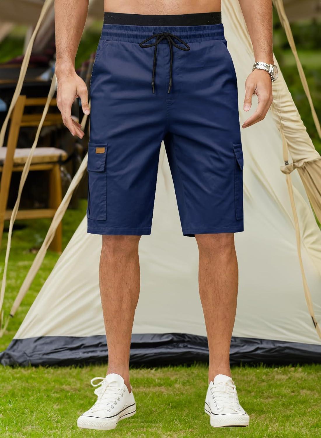 JMIERR Mens Casual Cotton Twill Cargo Shorts Drawstring Classic Chino Stretch Short with 6 Pockets(A Blue)