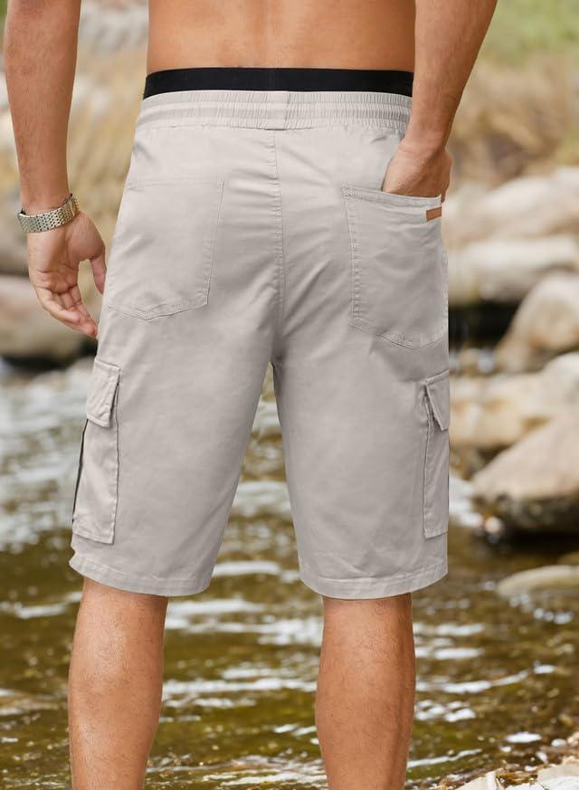 JMIERR Mens Casual Cotton Twill Cargo Shorts Drawstring Classic Chino Stretch Short with 6 Pockets(A Sliver Gray)