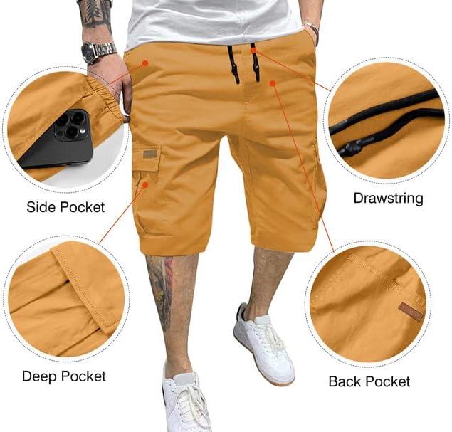 JMIERR Mens Casual Cotton Twill Cargo Shorts Drawstring Classic Chino Stretch Short with 6 Pockets(Yellow)