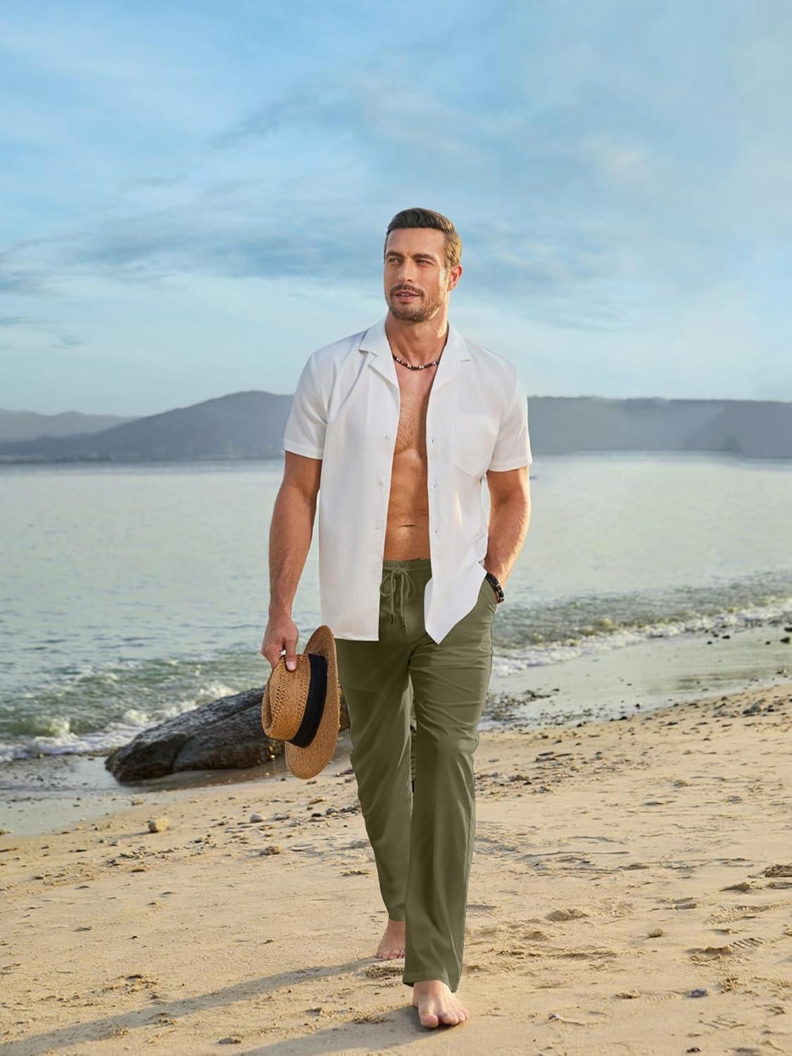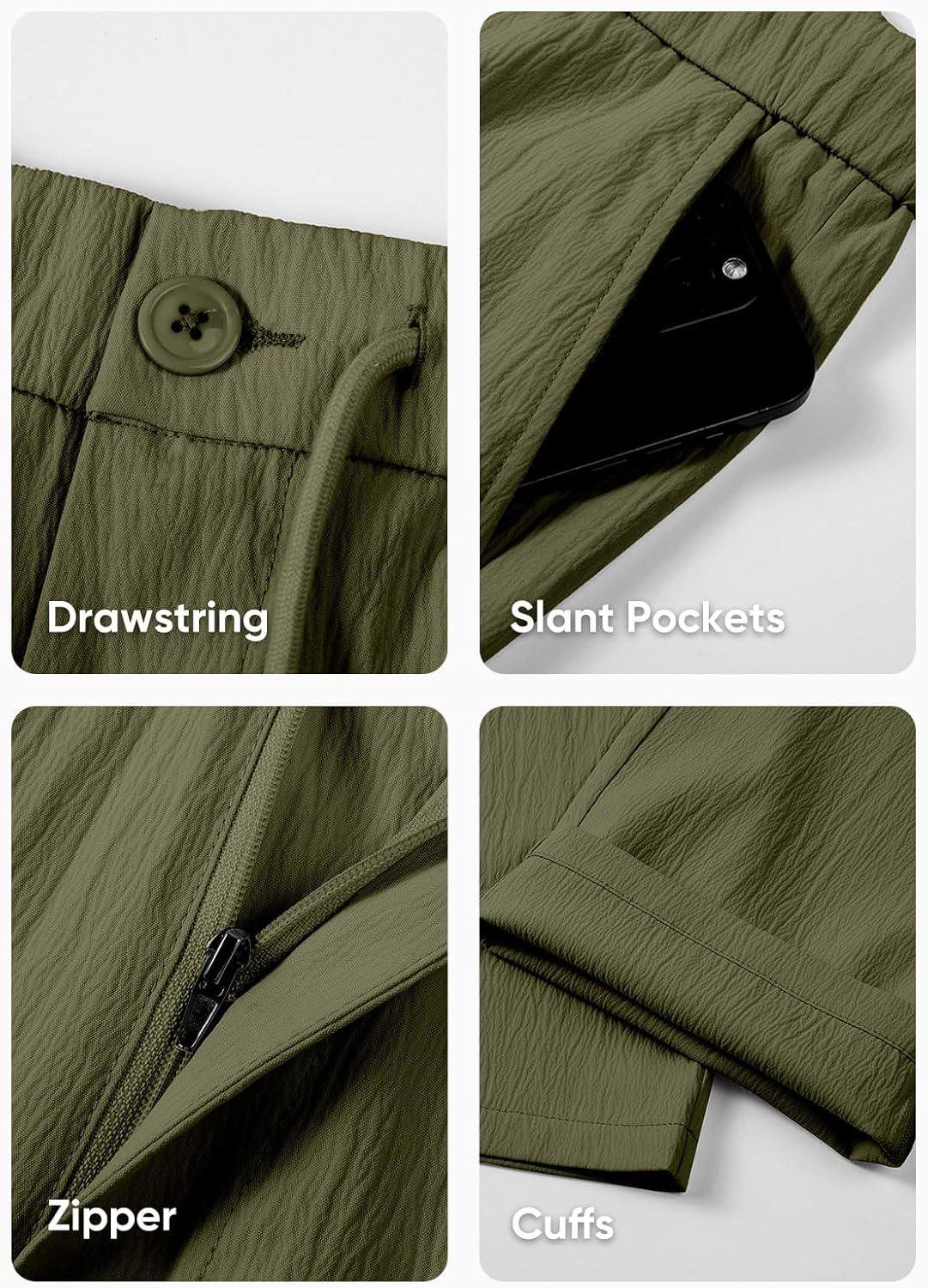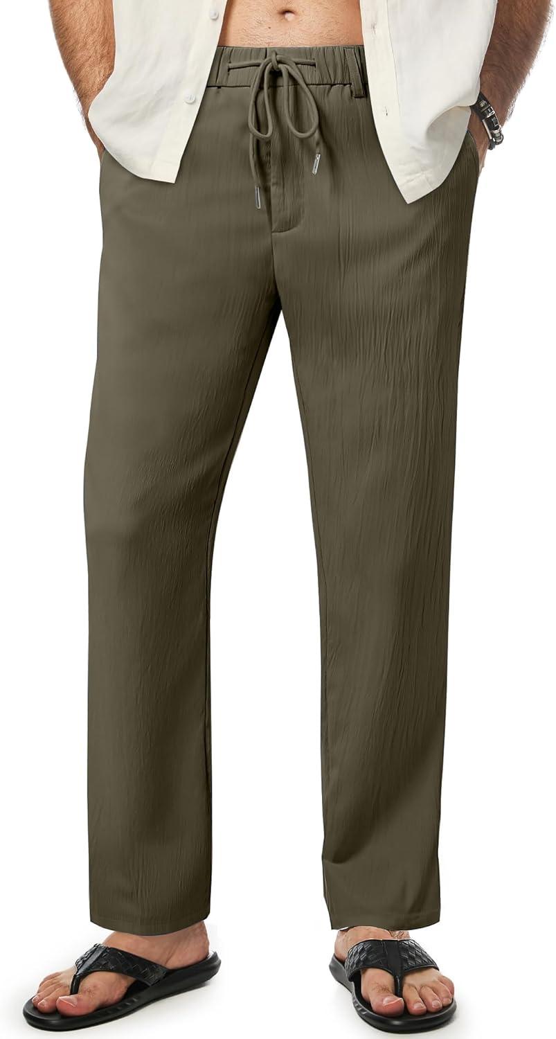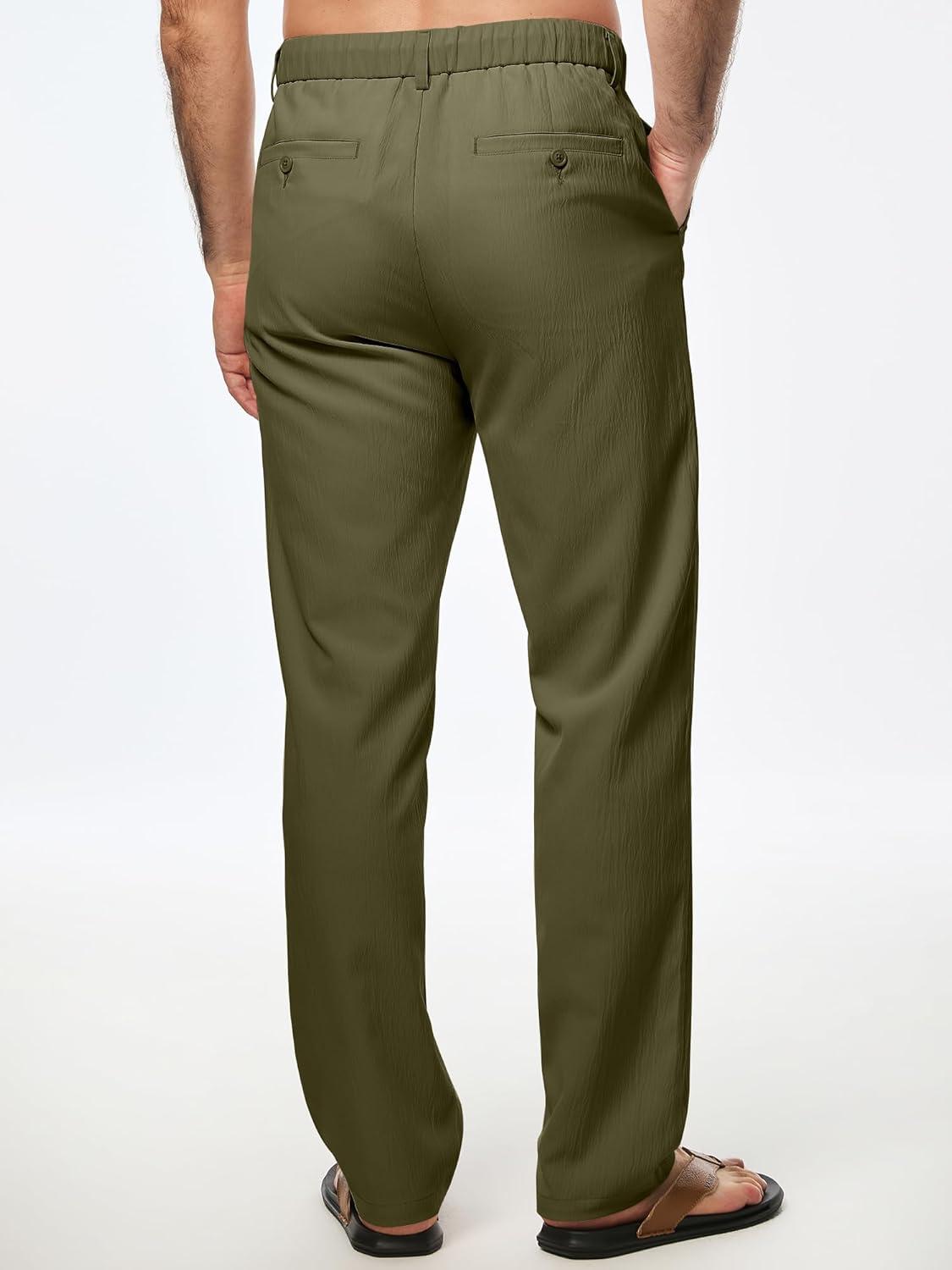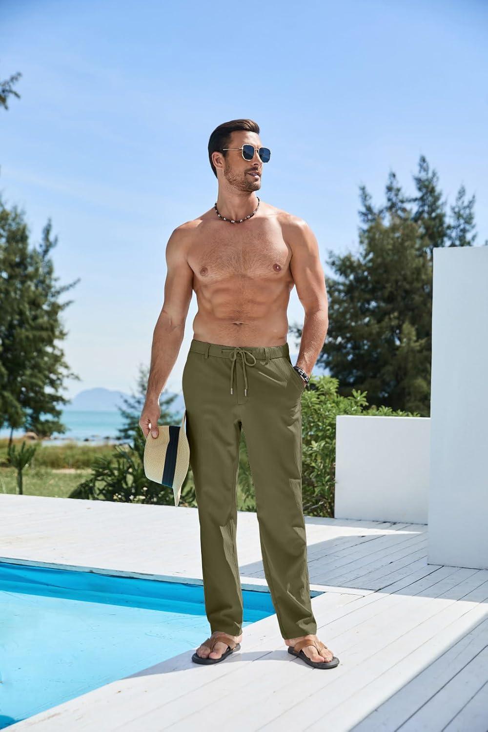 JMIERR Men’s Casual Drawstring Pants Elastic Waist Lightweight Pant Summer Beach Trouser with Pockets(Dark Green)