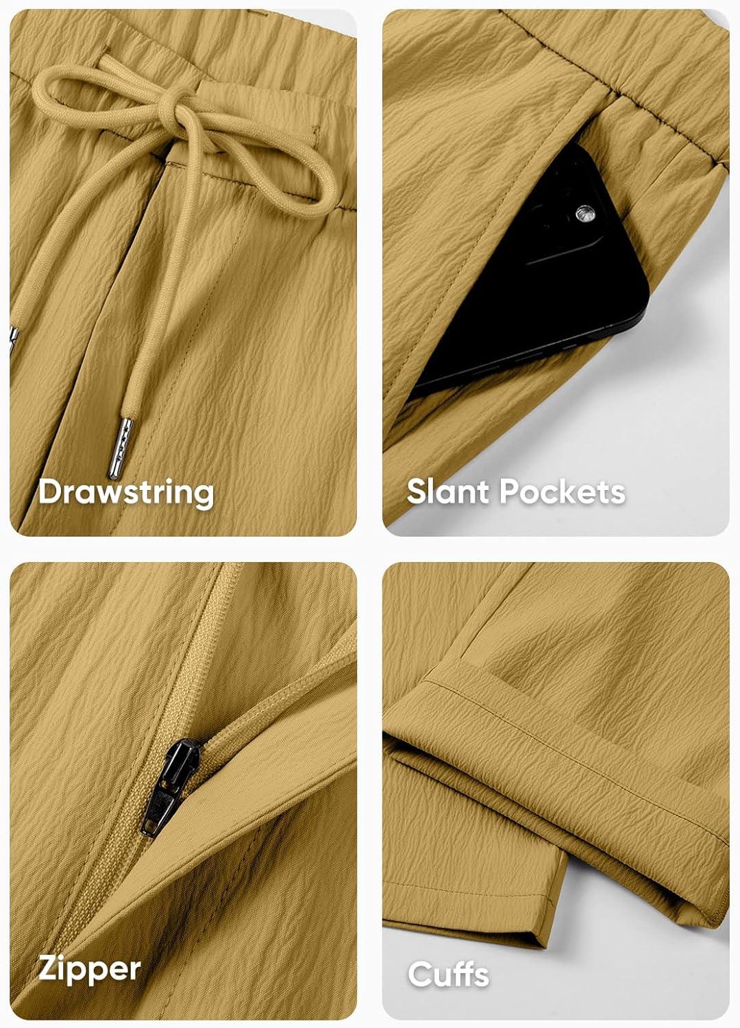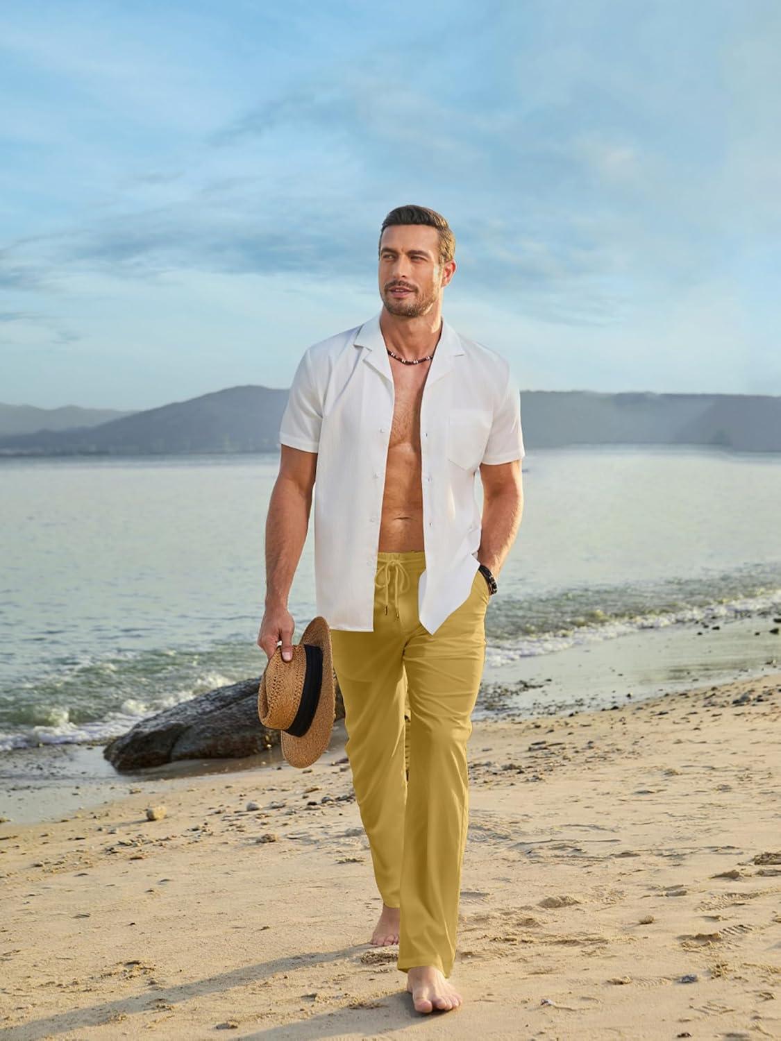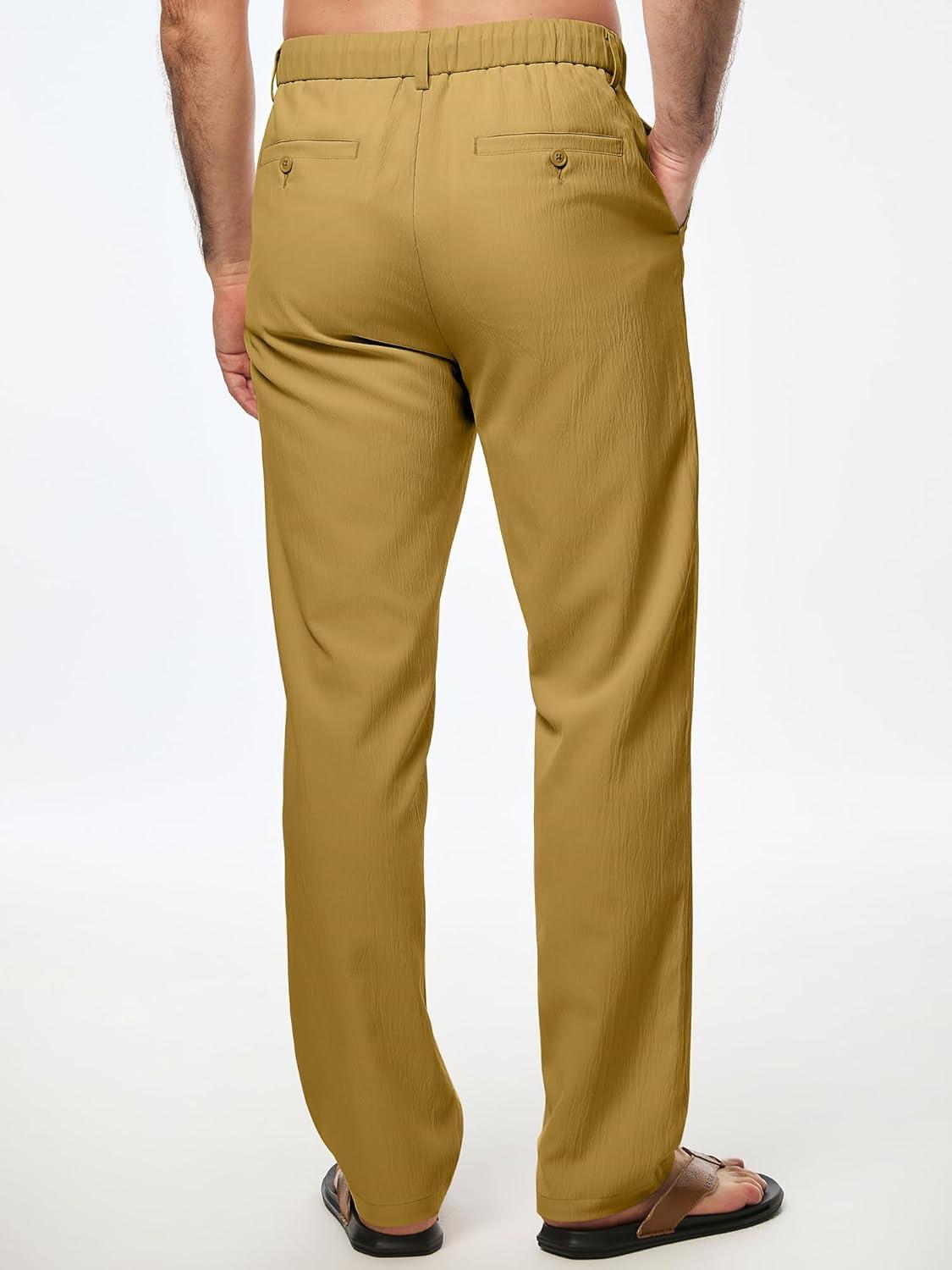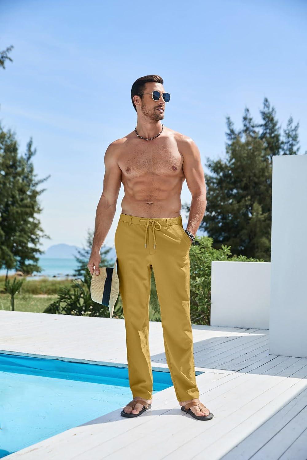 JMIERR Men’s Casual Drawstring Pants Elastic Waist Lightweight Pant Summer Beach Trouser with Pockets(Light Yellow)