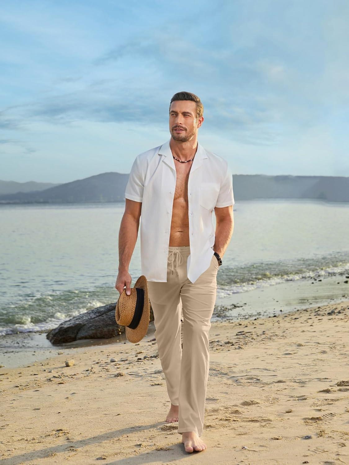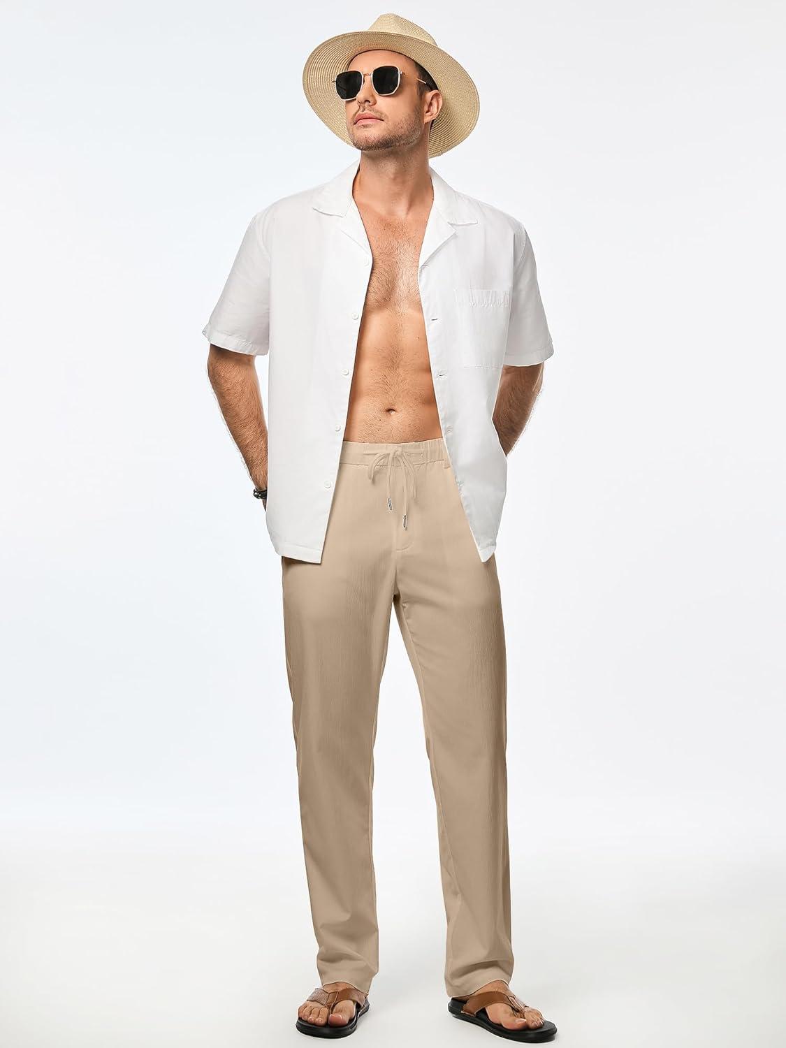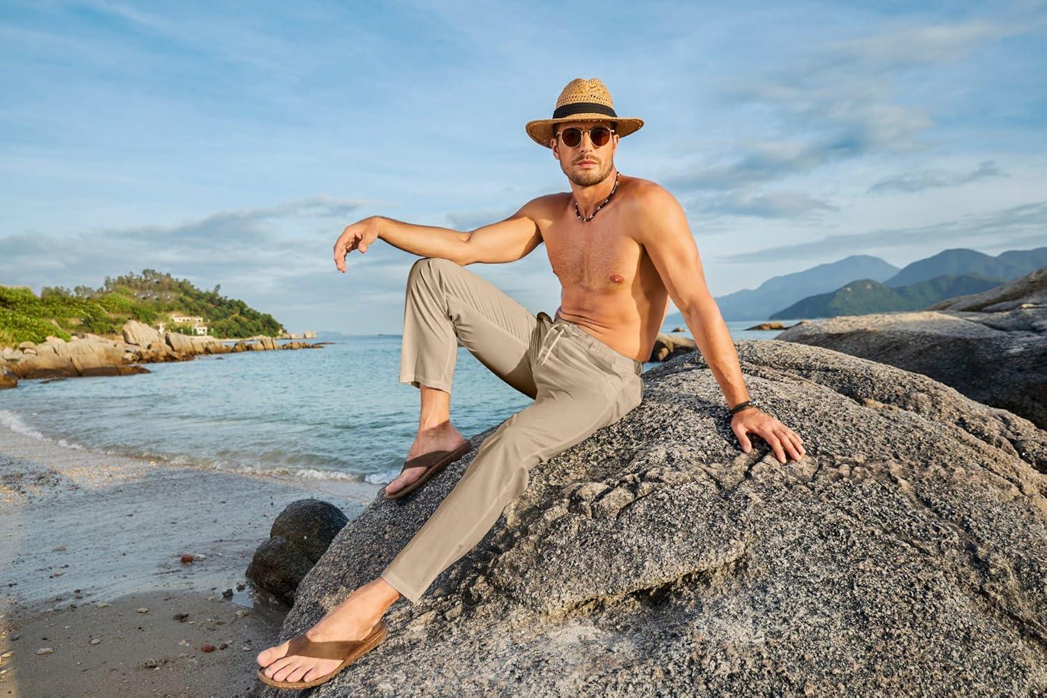 JMIERR Men’s Casual Drawstring Pants Elastic Waist Lightweight Pant Summer Beach Trouser with Pockets(Smoke Gray)