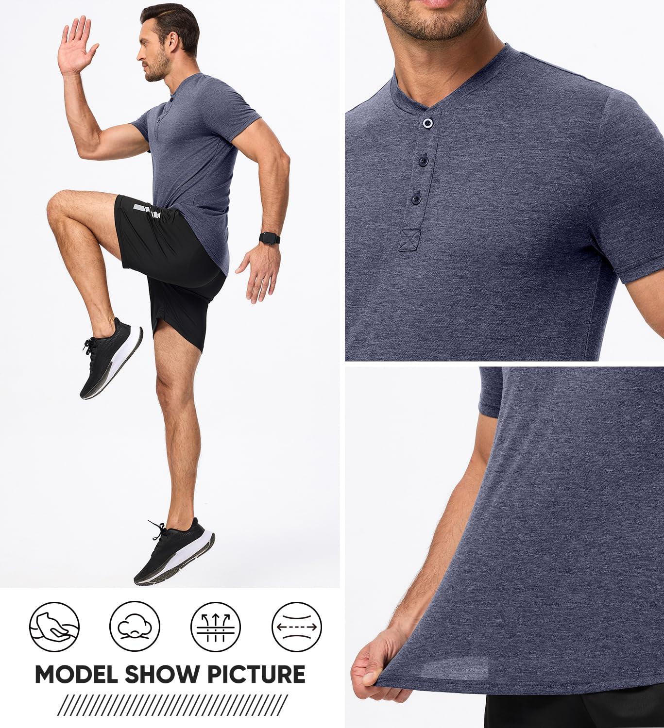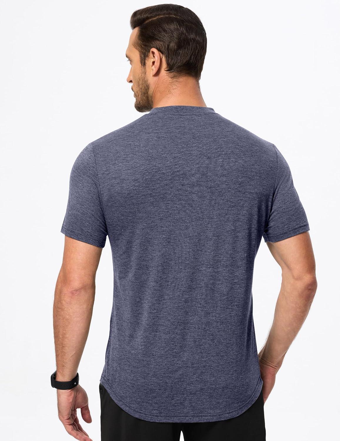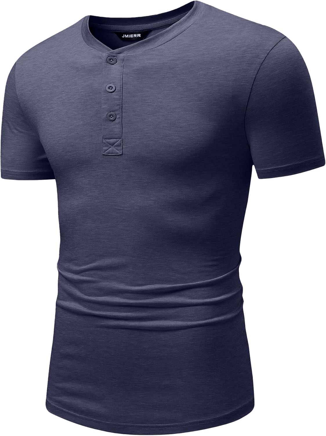 JMIERR Men’s Casual Henley Shirts Short Sleeve Basic Button Muscle Longline T-Shirt Gym Workout Athletic Tee(Navy Blue)