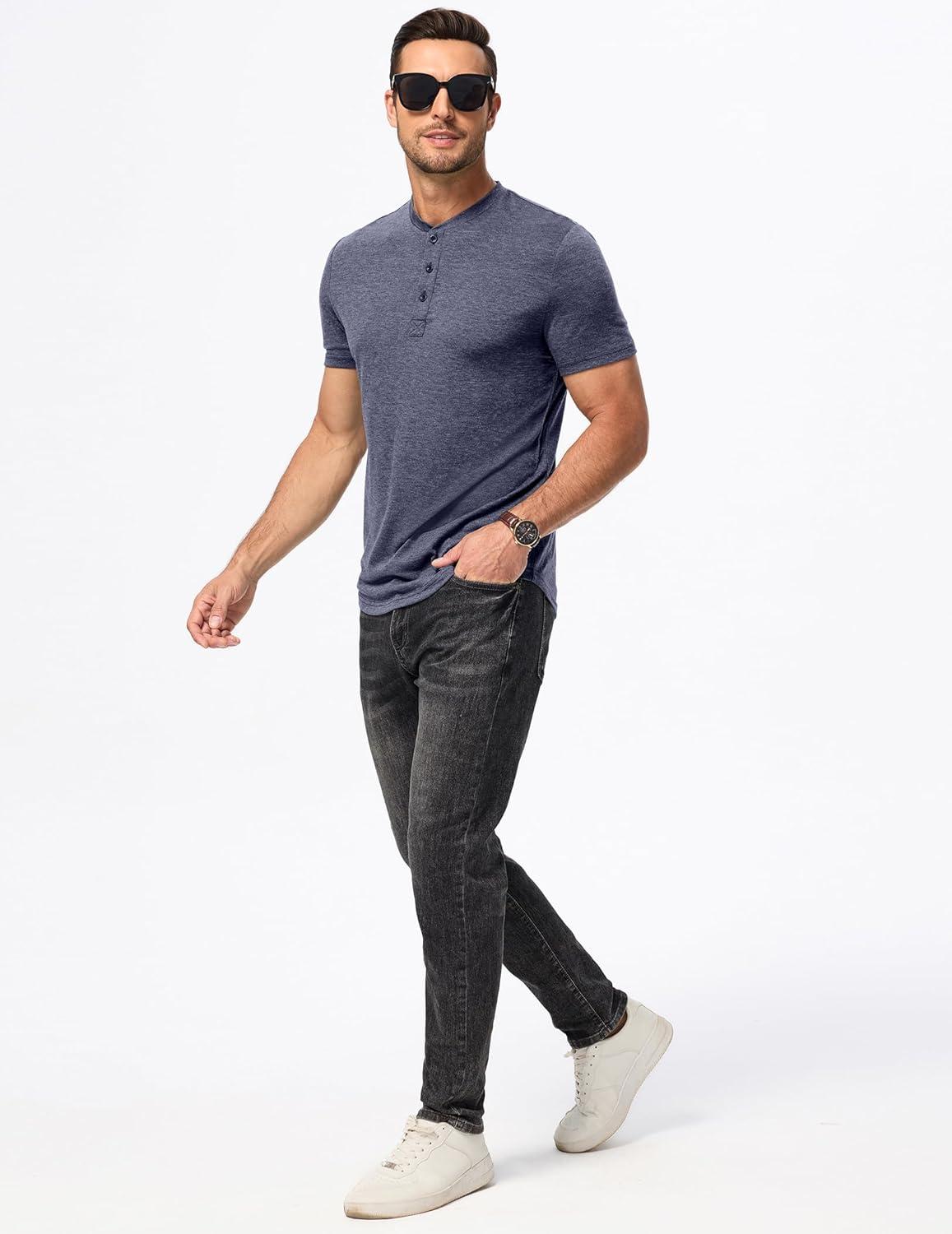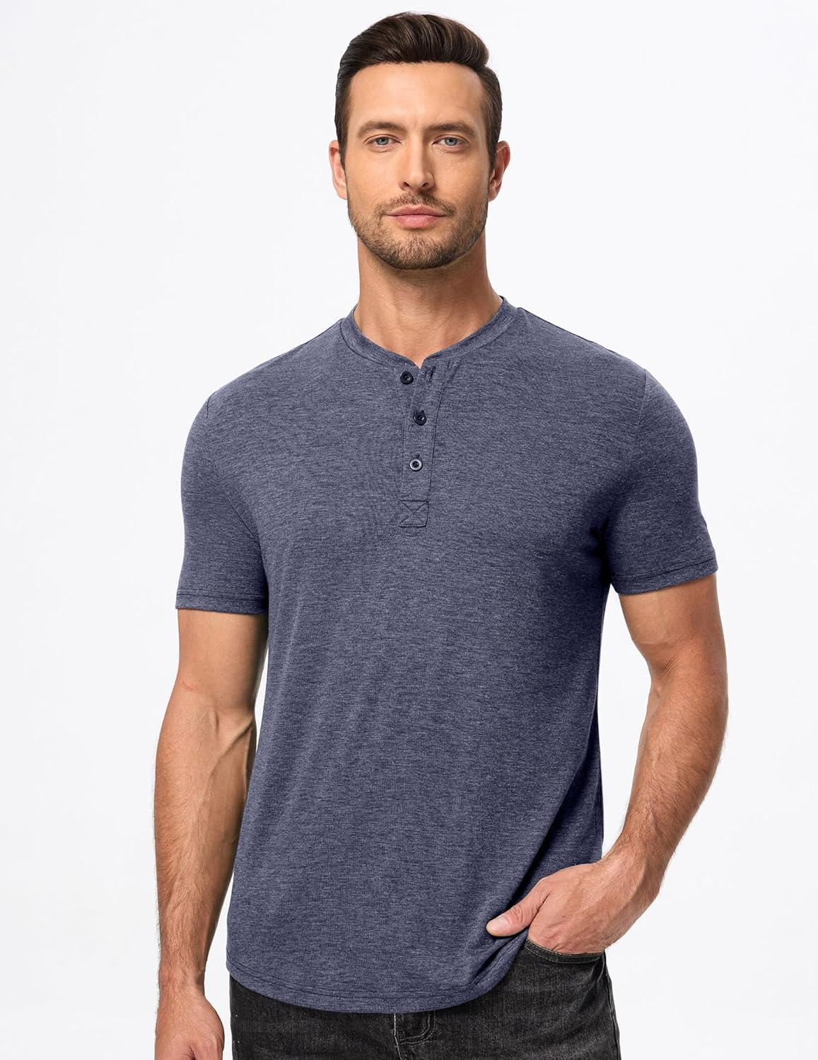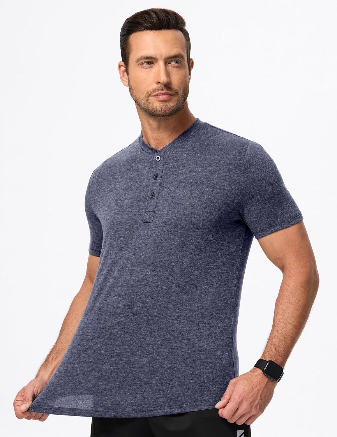 JMIERR Men’s Casual Henley Shirts Short Sleeve Basic Button Muscle Longline T-Shirt Gym Workout Athletic Tee(Navy Blue)