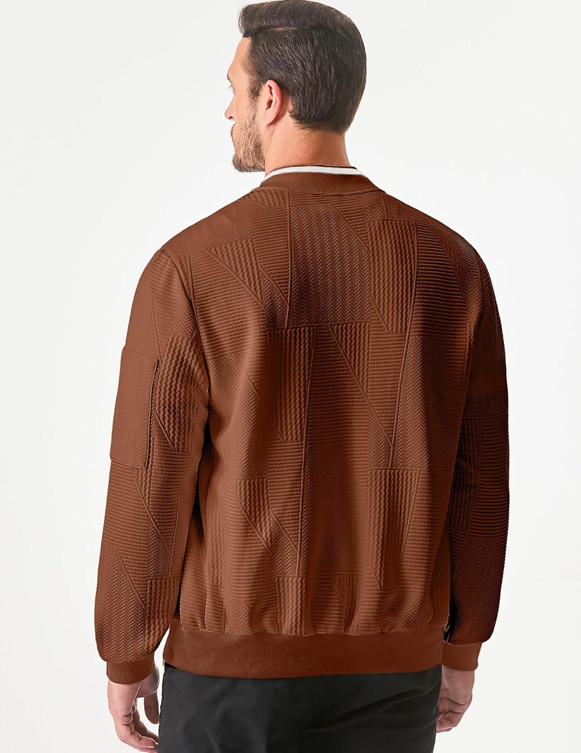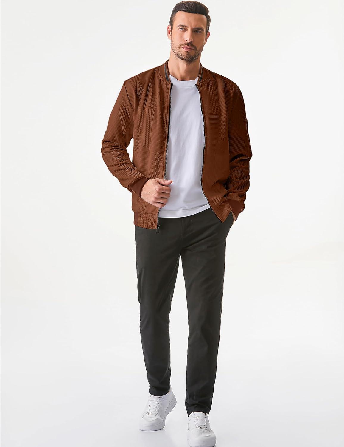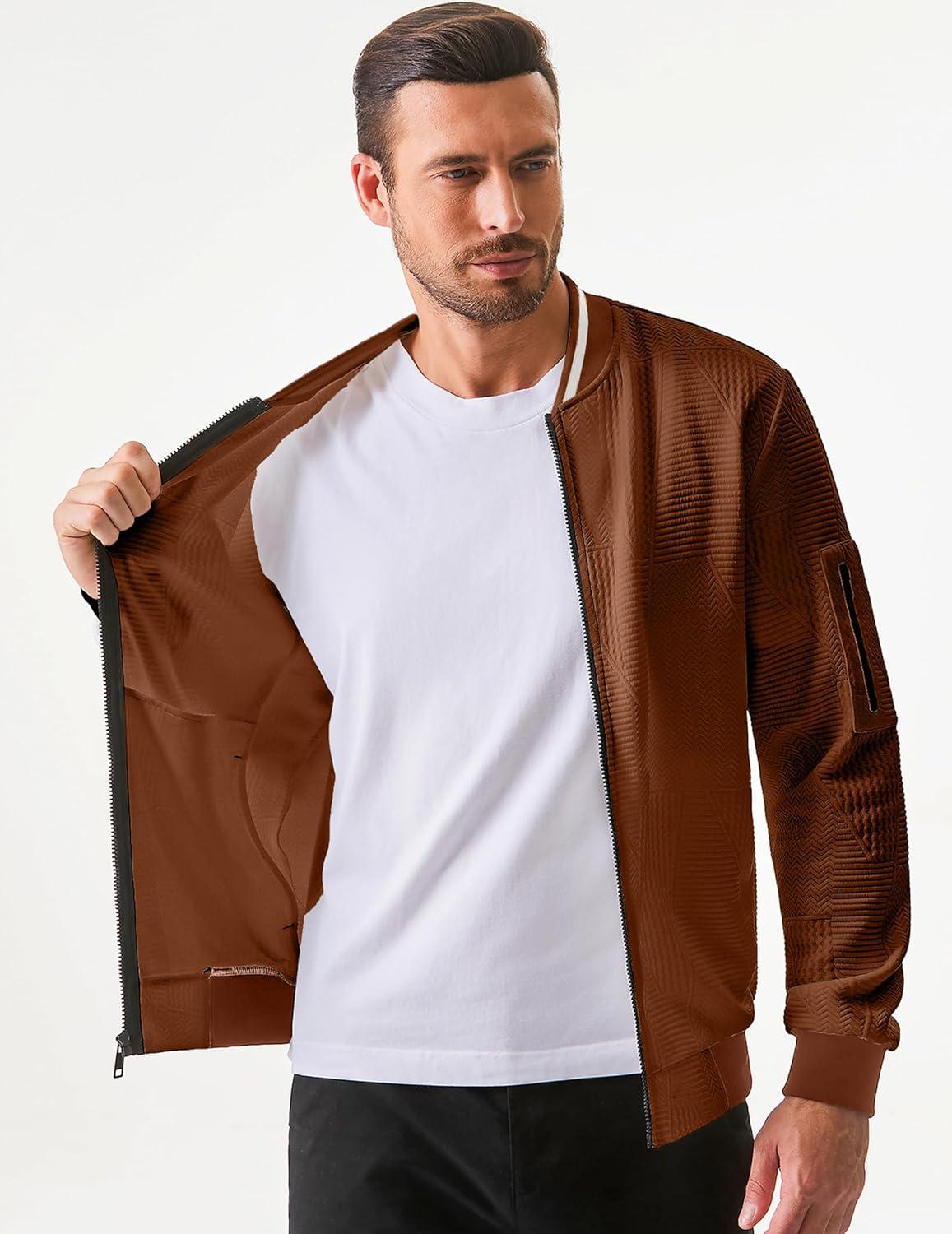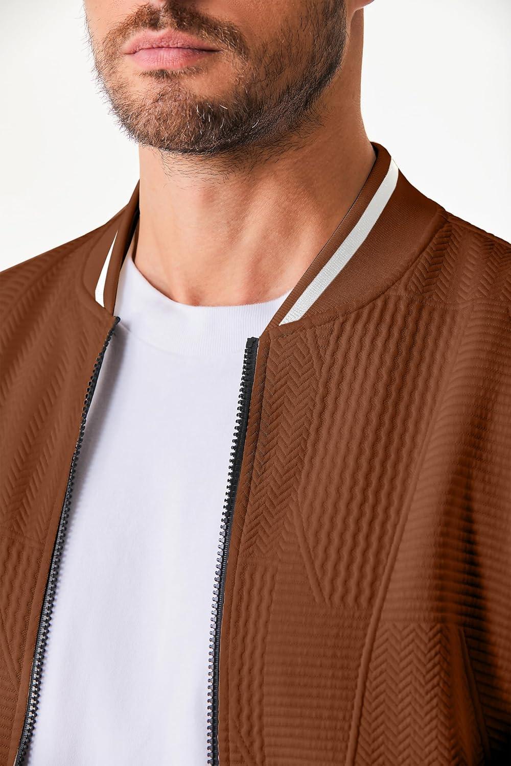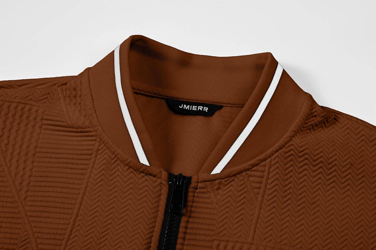JMIERR Mens Casual Jacquard Bomber Jackets Color-Block Lightweight Varsity Jacket Fashion Zipper Coat with Pockets(Chestnut)