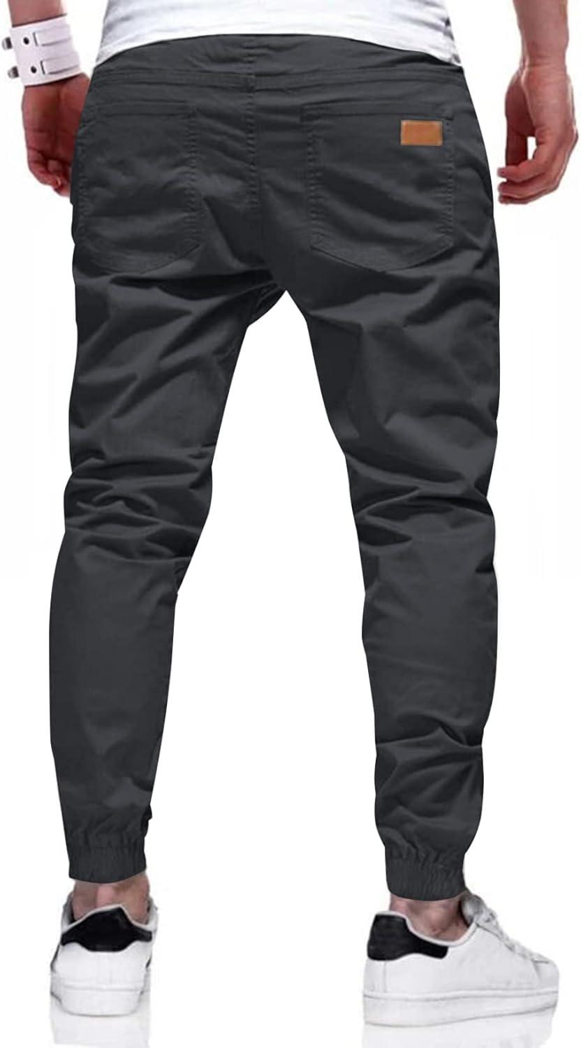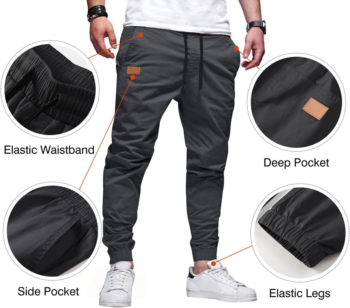 JMIERR Mens Casual Joggers Pants – Cotton Drawstring Chino Cargo Pants Hiking Outdoor Twill Track Jogging Sweatpants Pants(C Dark Grey)