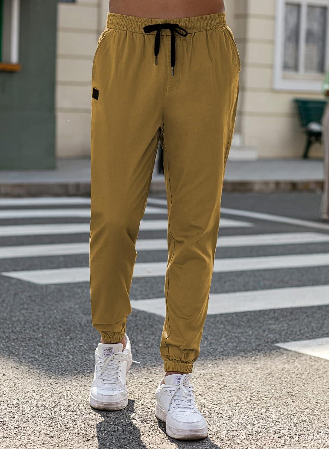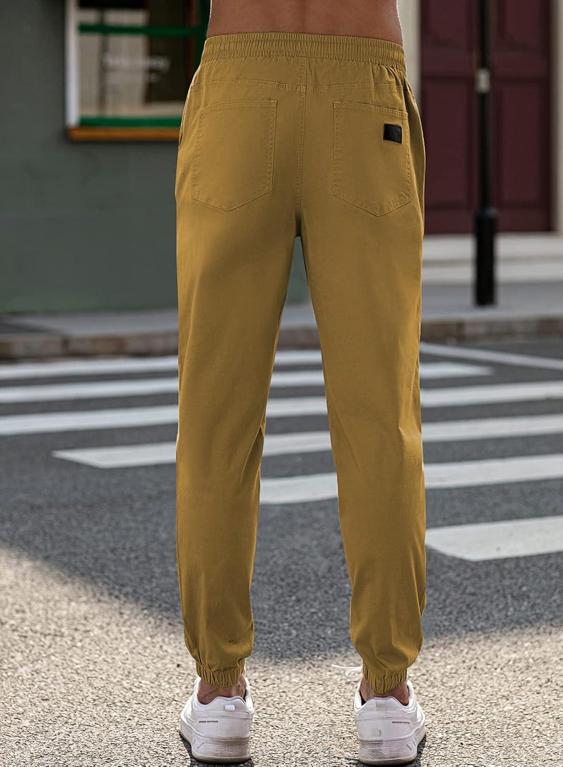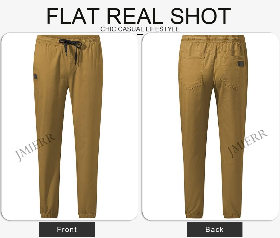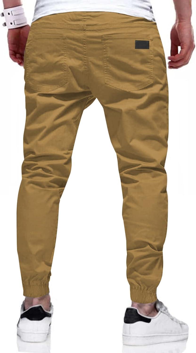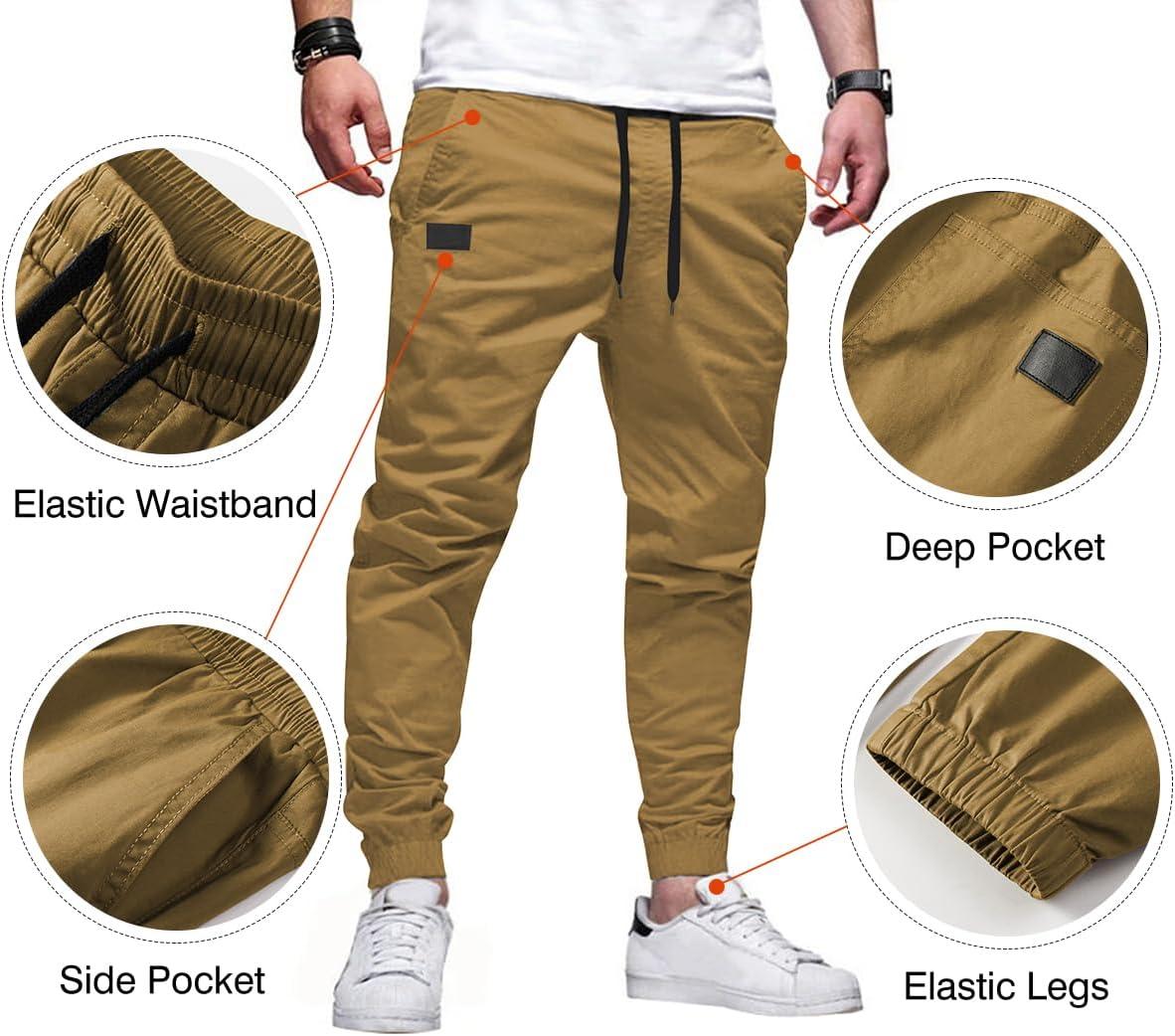 JMIERR Mens Casual Joggers Pants – Cotton Drawstring Chino Cargo Pants Hiking Outdoor Twill Track Jogging Sweatpants Pants(Dark Khaki)