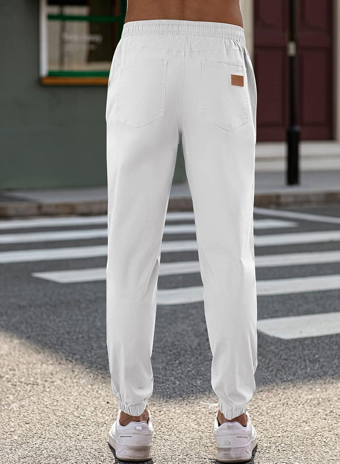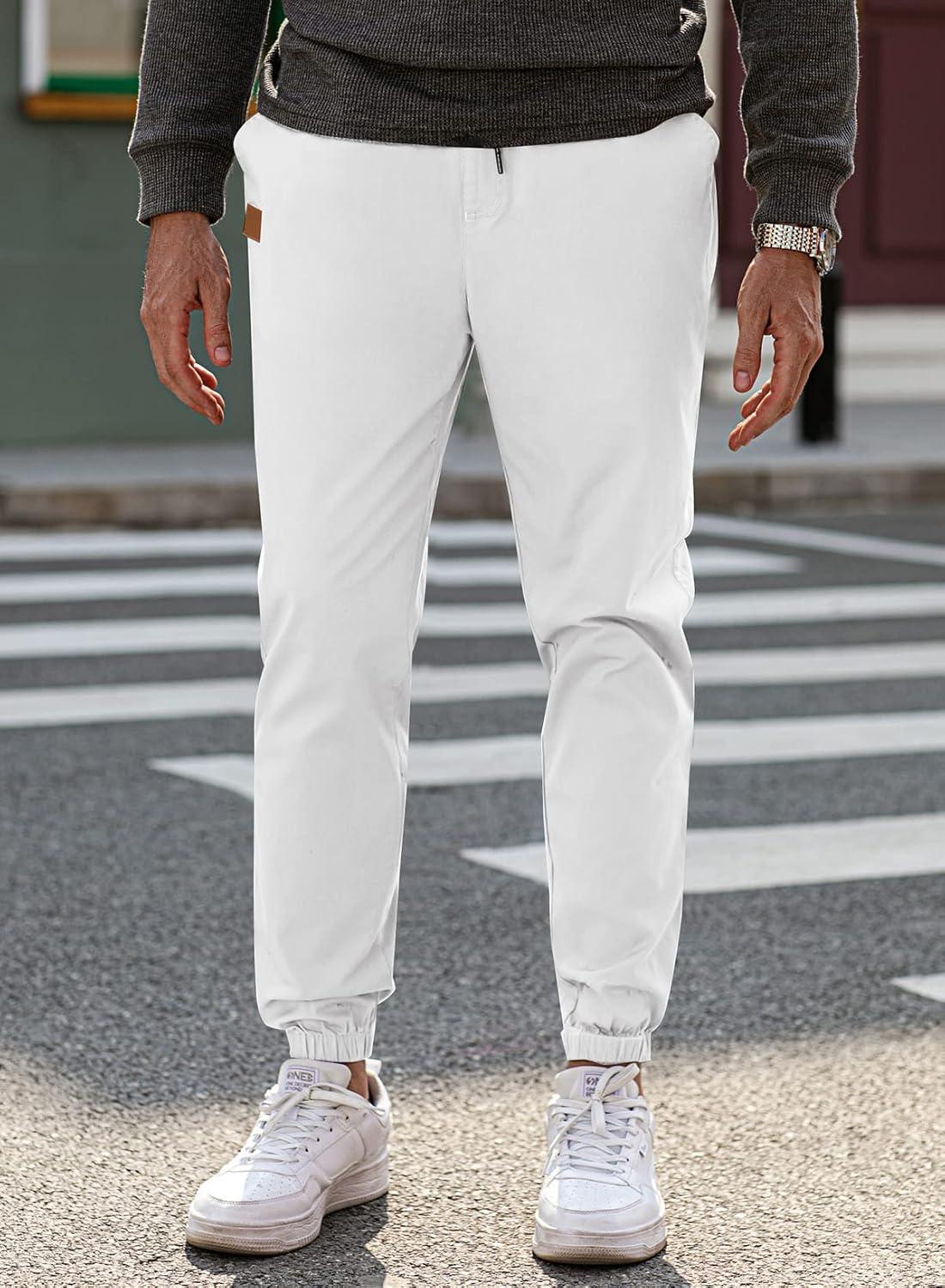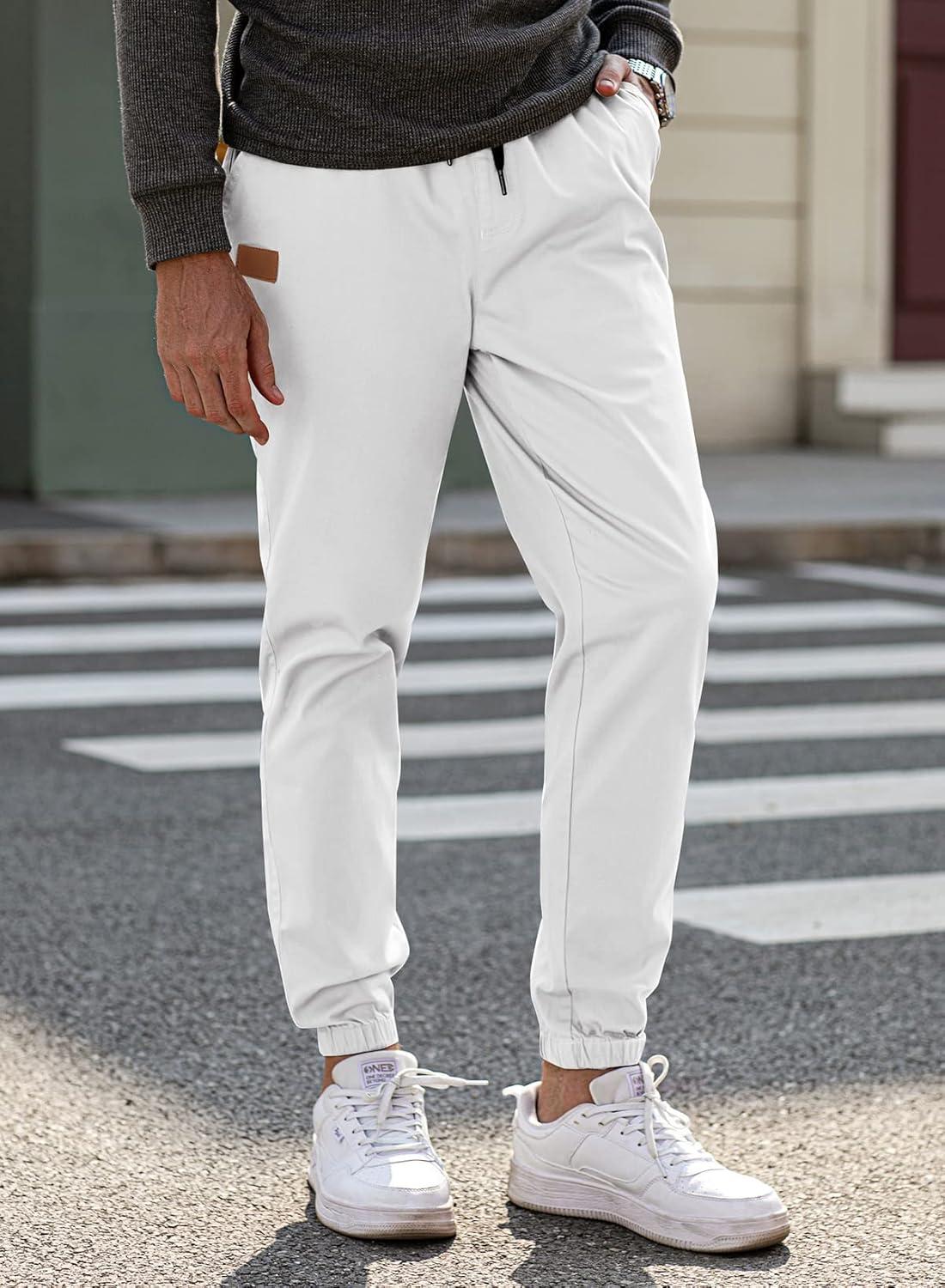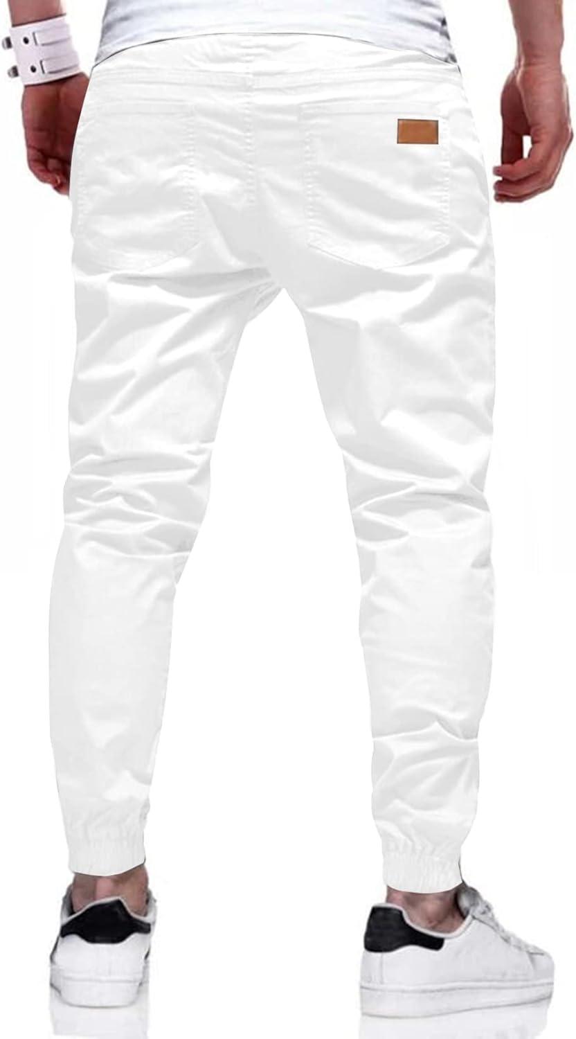 JMIERR Mens Casual Joggers Pants – Cotton Drawstring Chino Cargo Pants Hiking Outdoor Twill Track Jogging Sweatpants Pants(White)