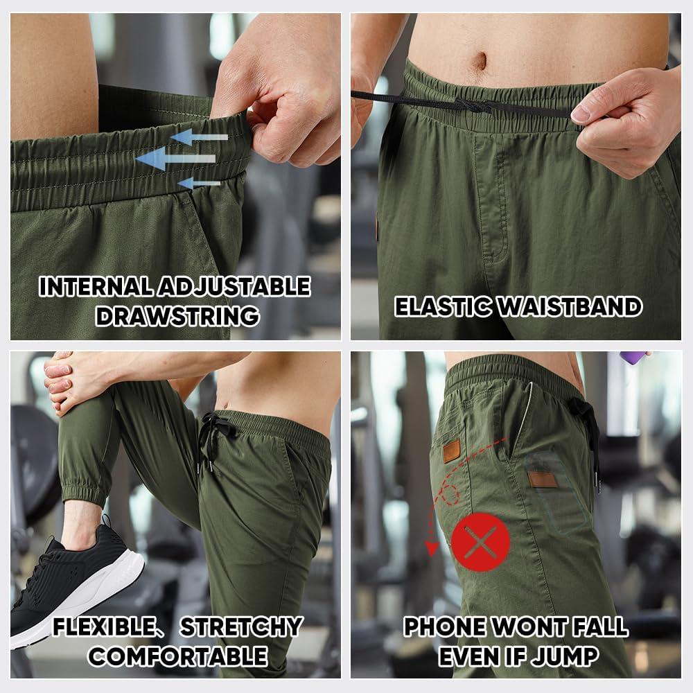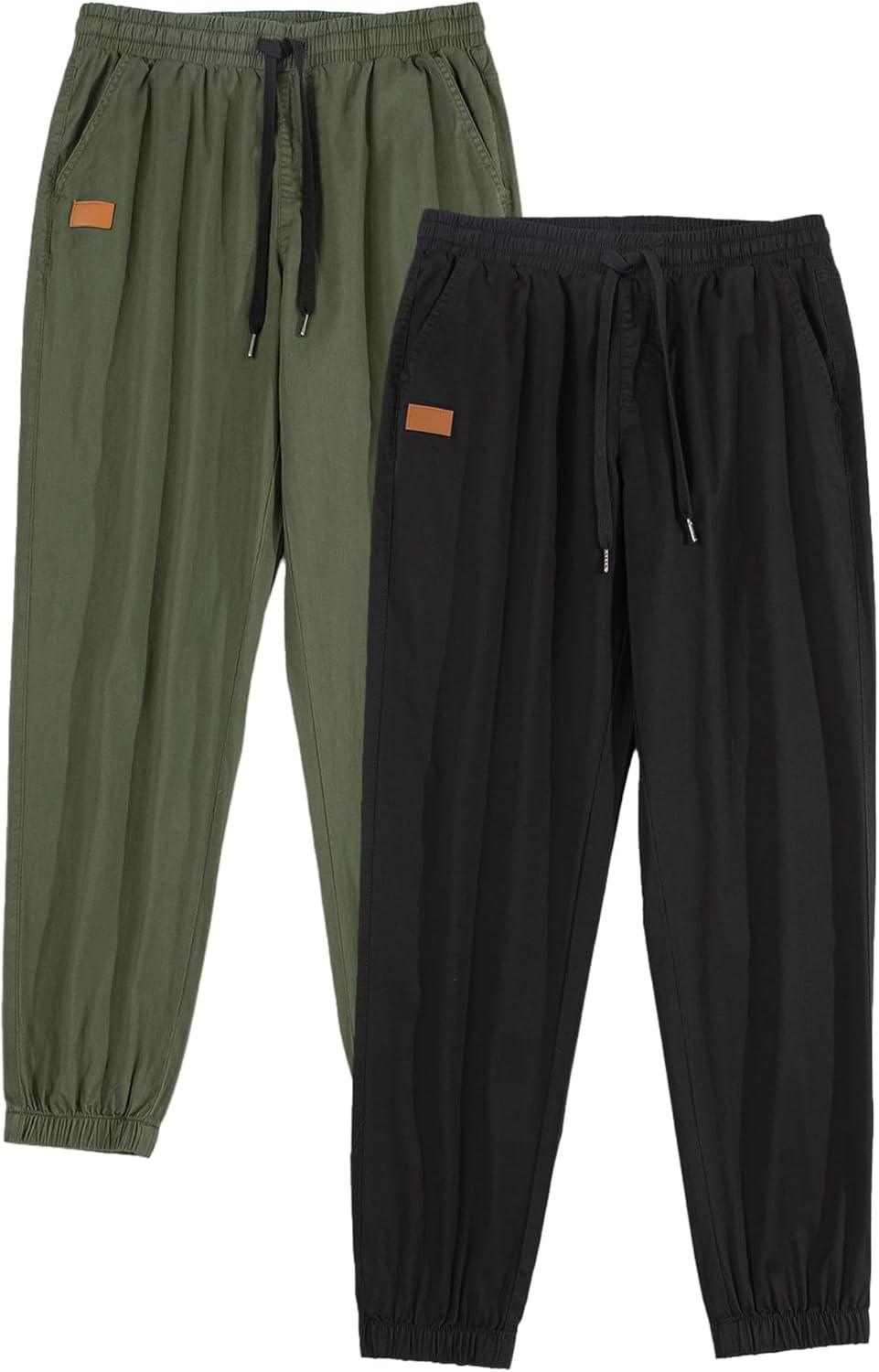 JMIERR Mens Casual Joggers Pants – Cotton Drawstring Chino Cargo Pants Hiking Outdoor Twill Track Jogging Sweatpants Pants(Z 2 Pack Black Dark Green)