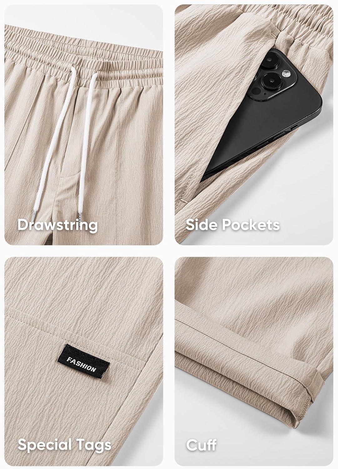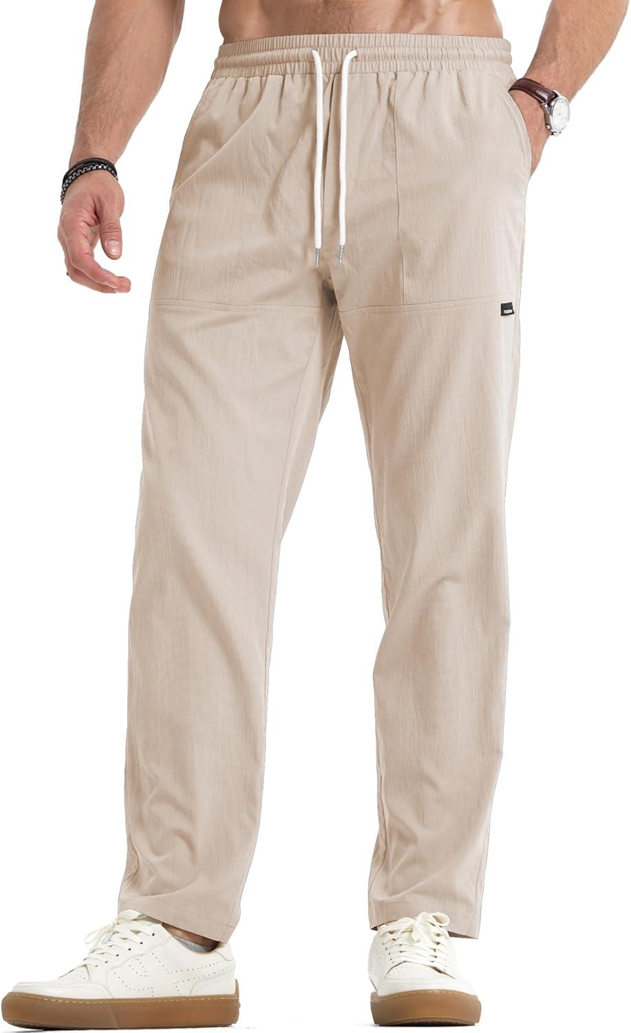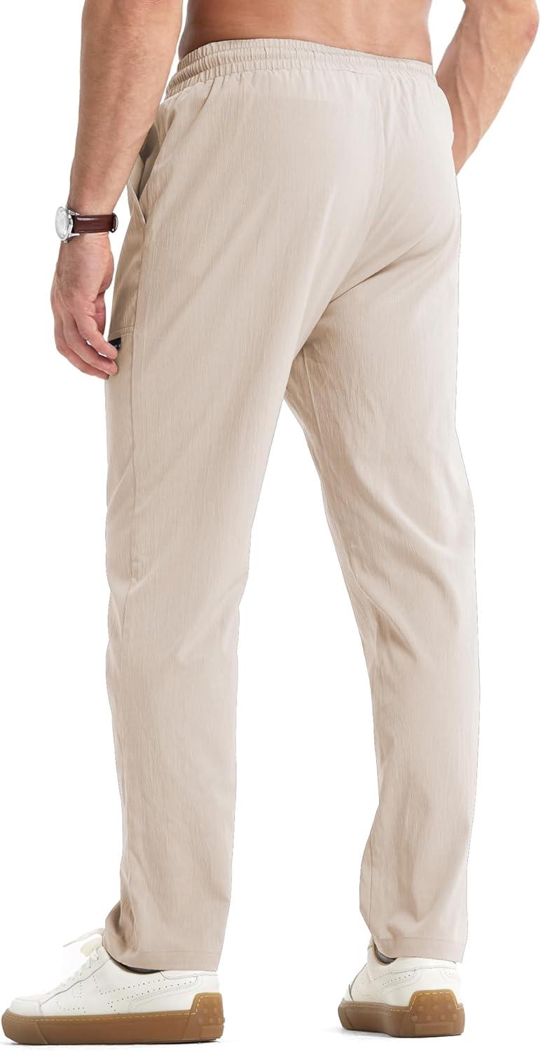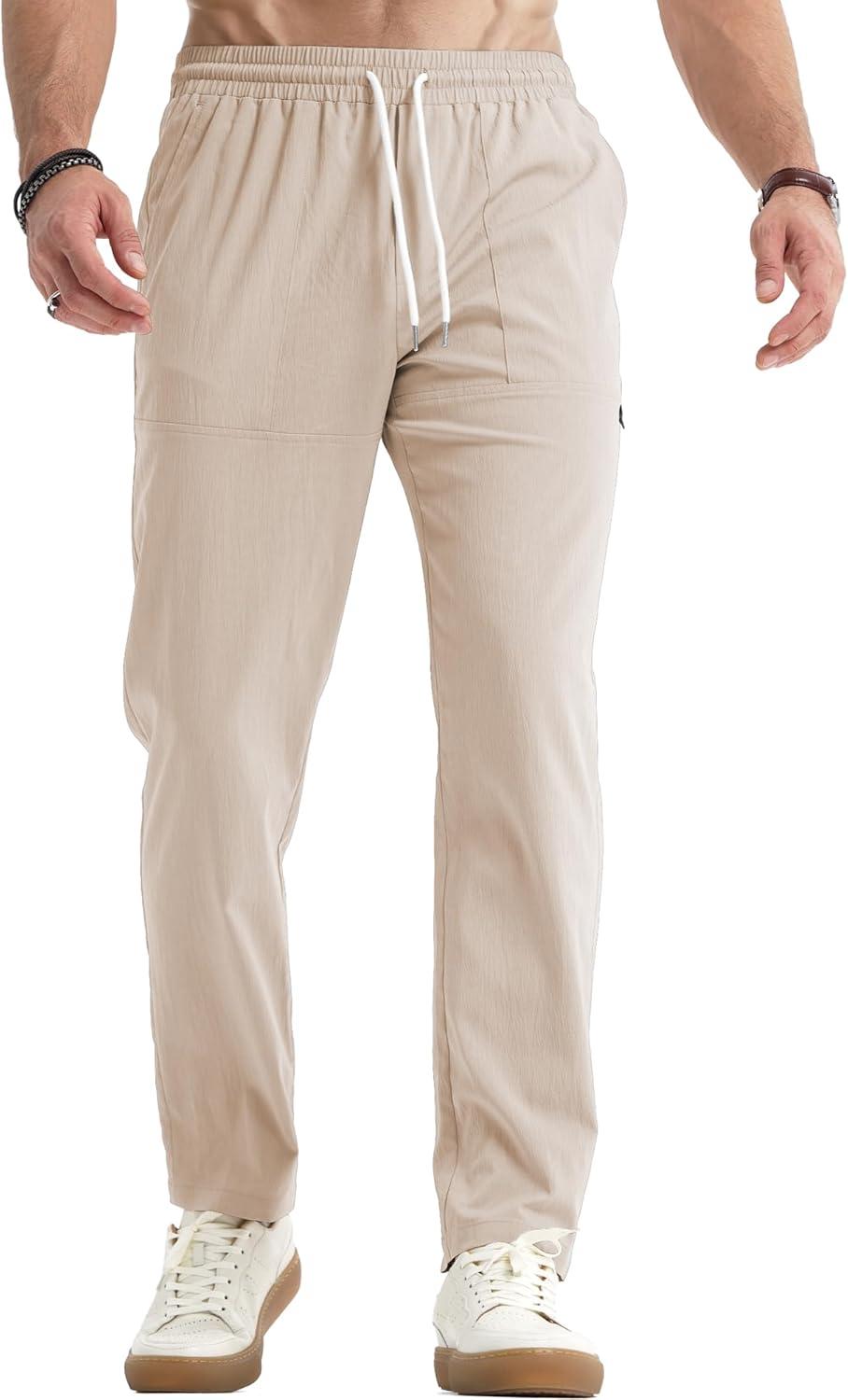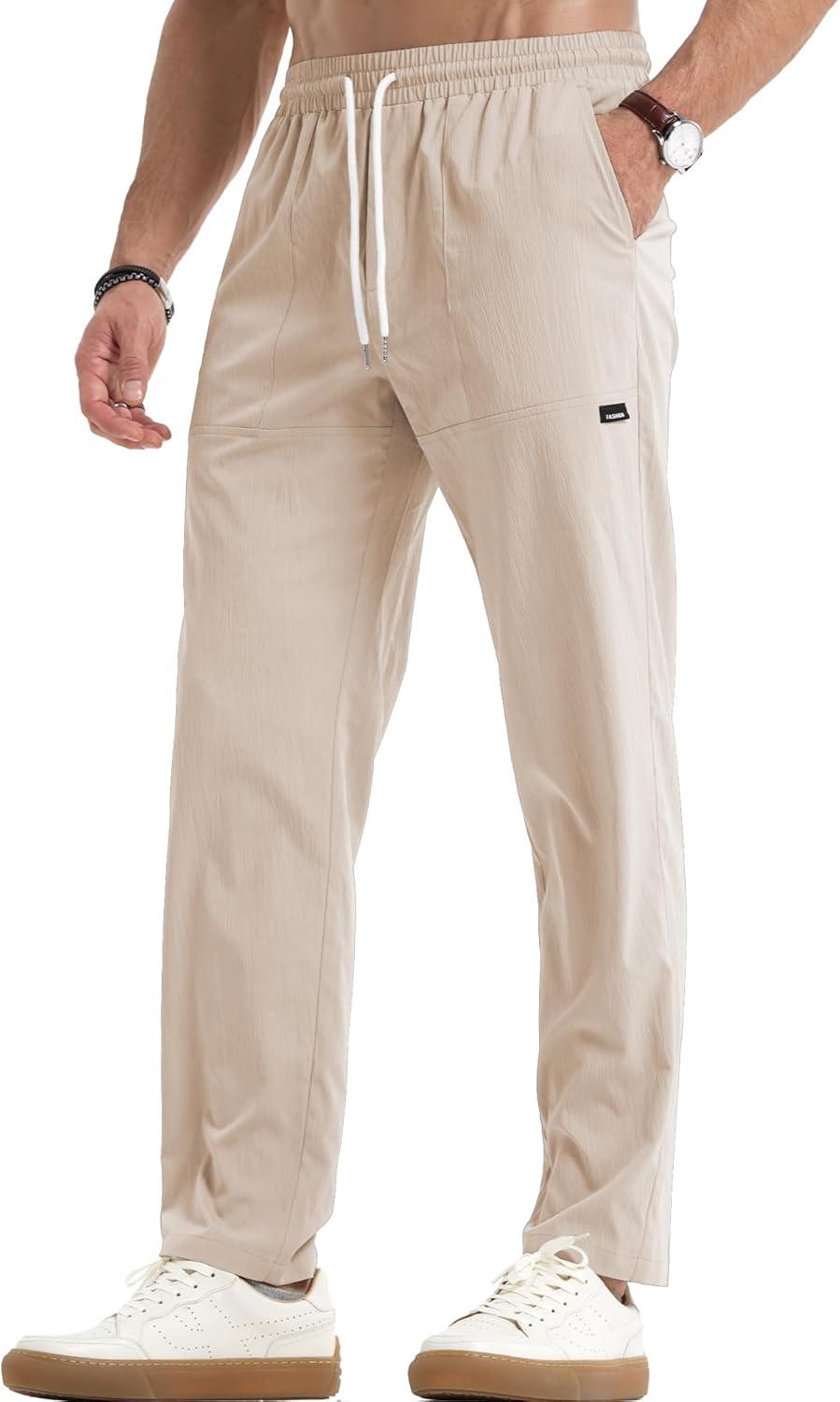 JMIERR Mens Casual Lightweight Pants Stretch Elastic Waist Drawstring Jogging Sweatpants Pants(Beige)