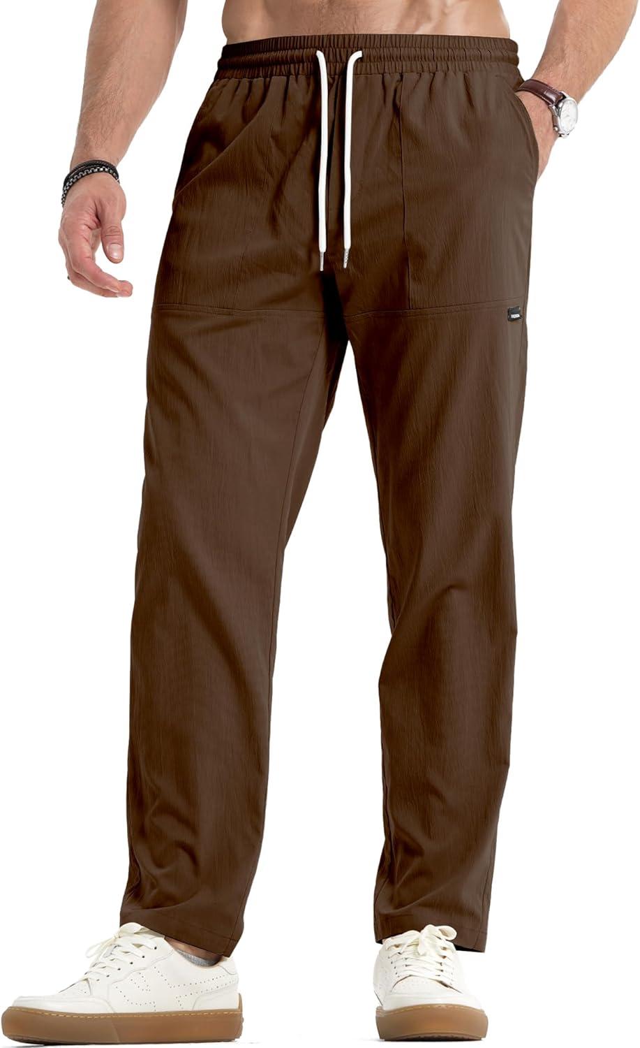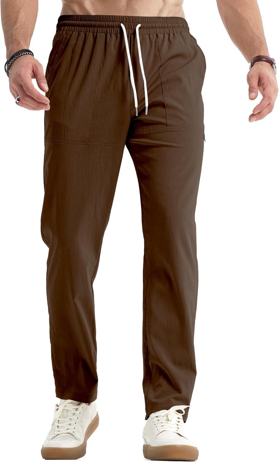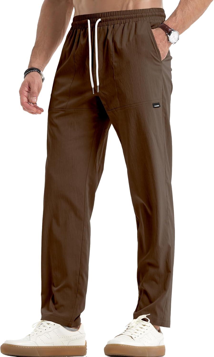 JMIERR Mens Casual Lightweight Pants Stretch Elastic Waist Drawstring Jogging Sweatpants Pants(Brown)