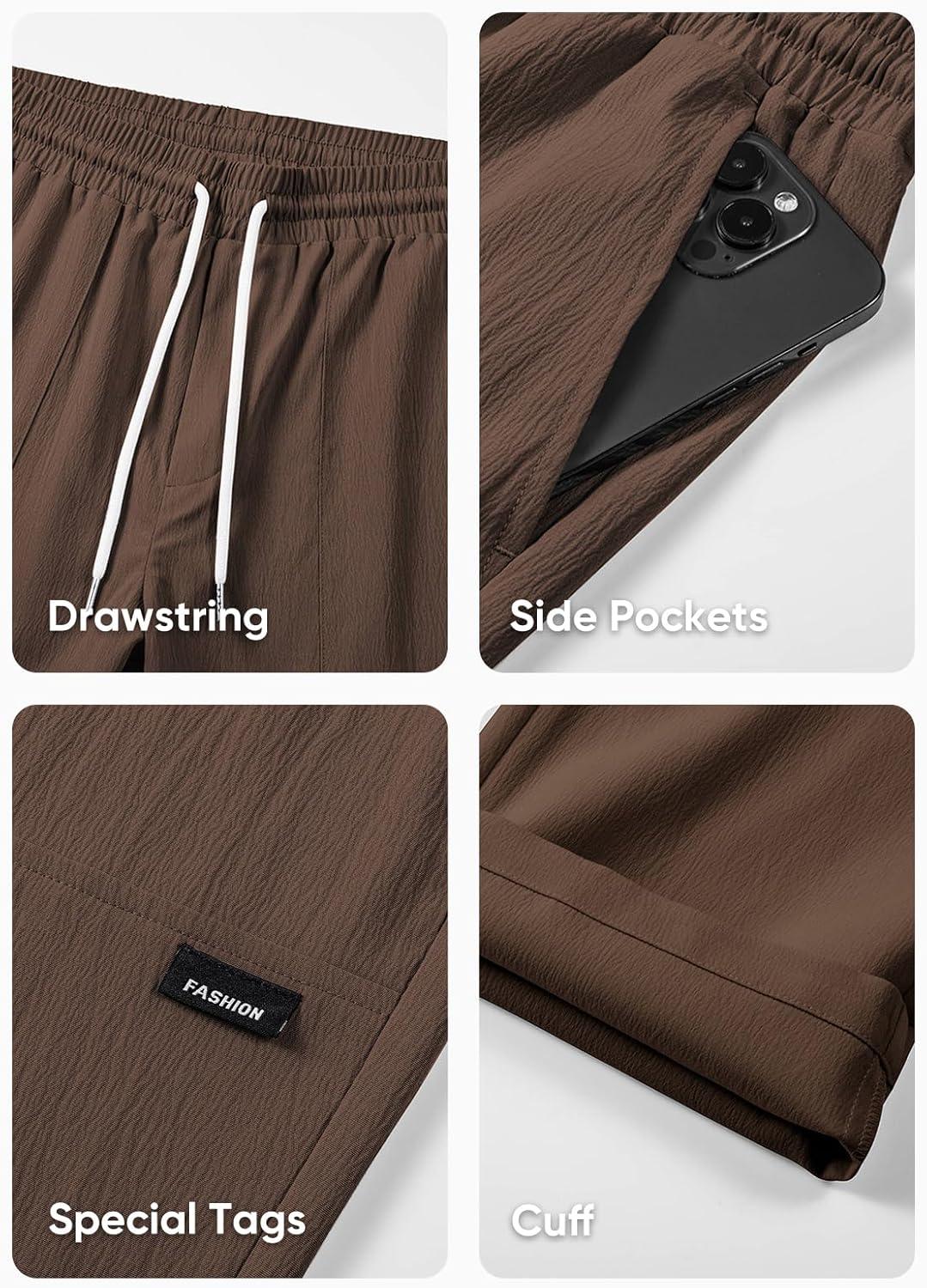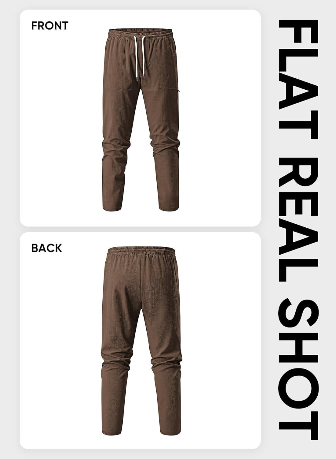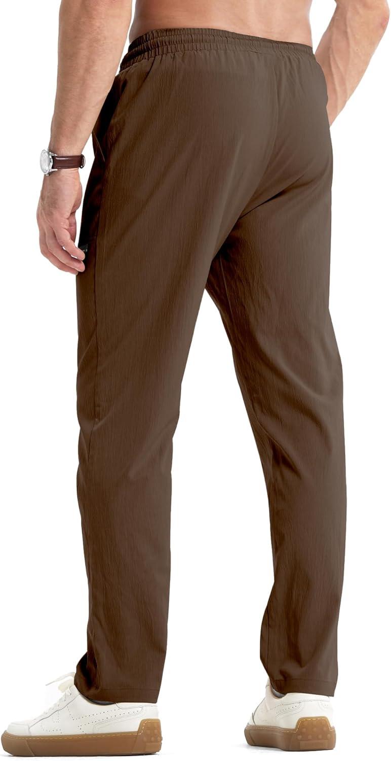 JMIERR Mens Casual Lightweight Pants Stretch Elastic Waist Drawstring Jogging Sweatpants Pants(Brown)