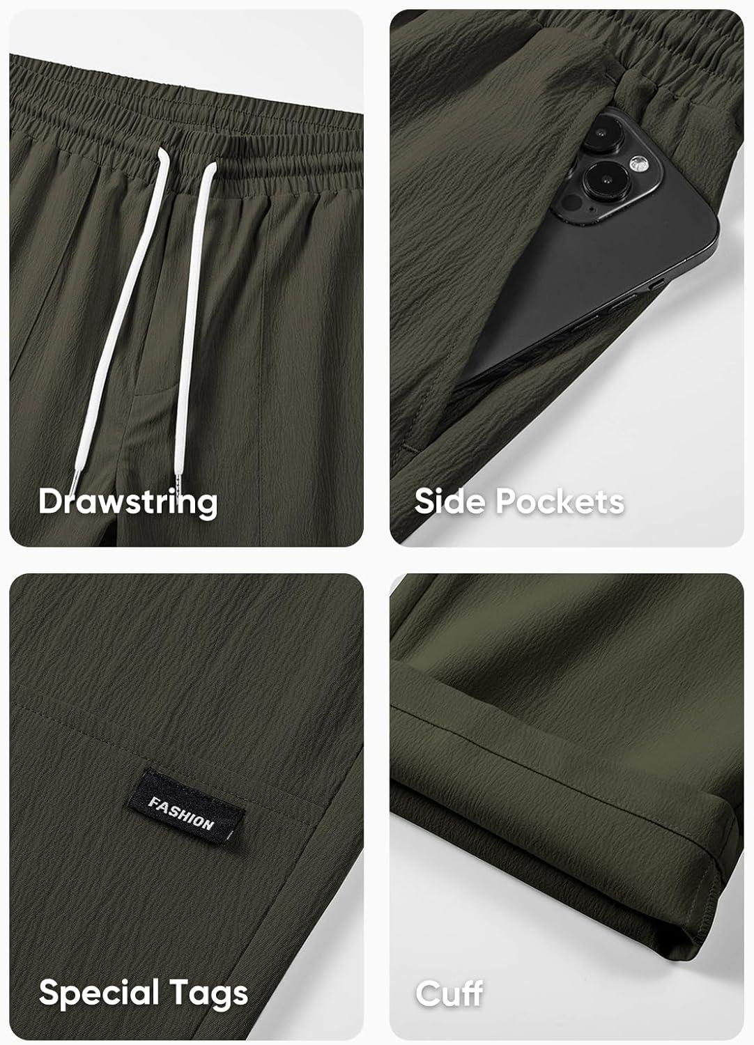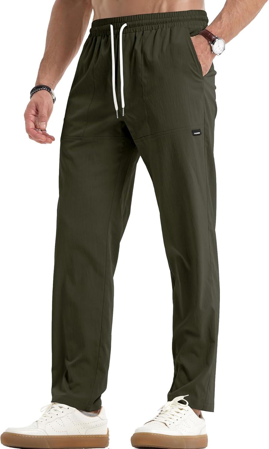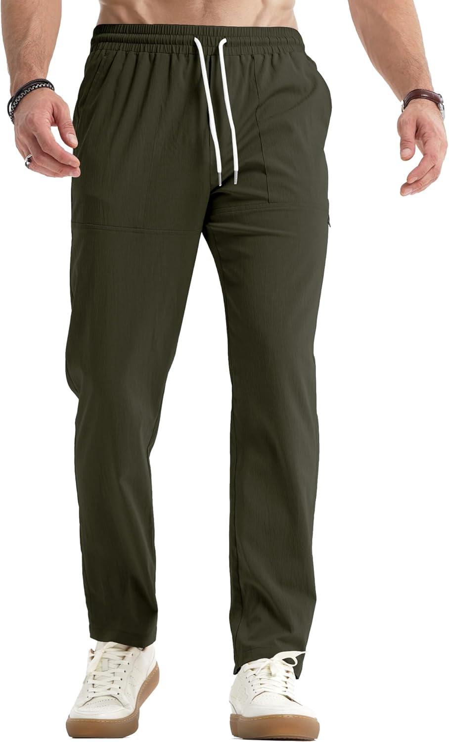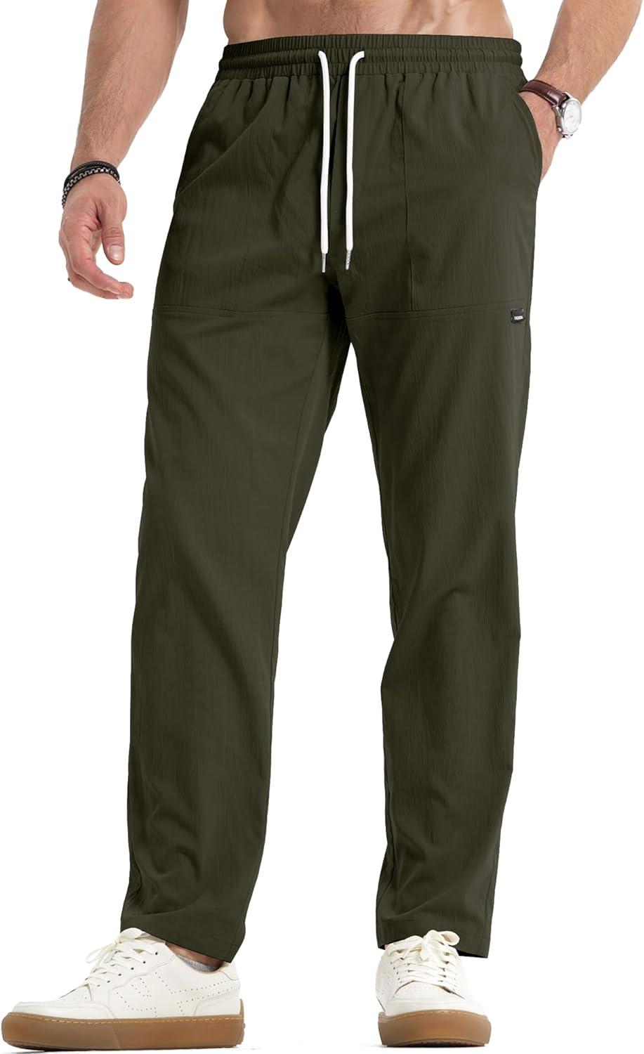 JMIERR Mens Casual Lightweight Pants Stretch Elastic Waist Drawstring Jogging Sweatpants Pants(Green)
