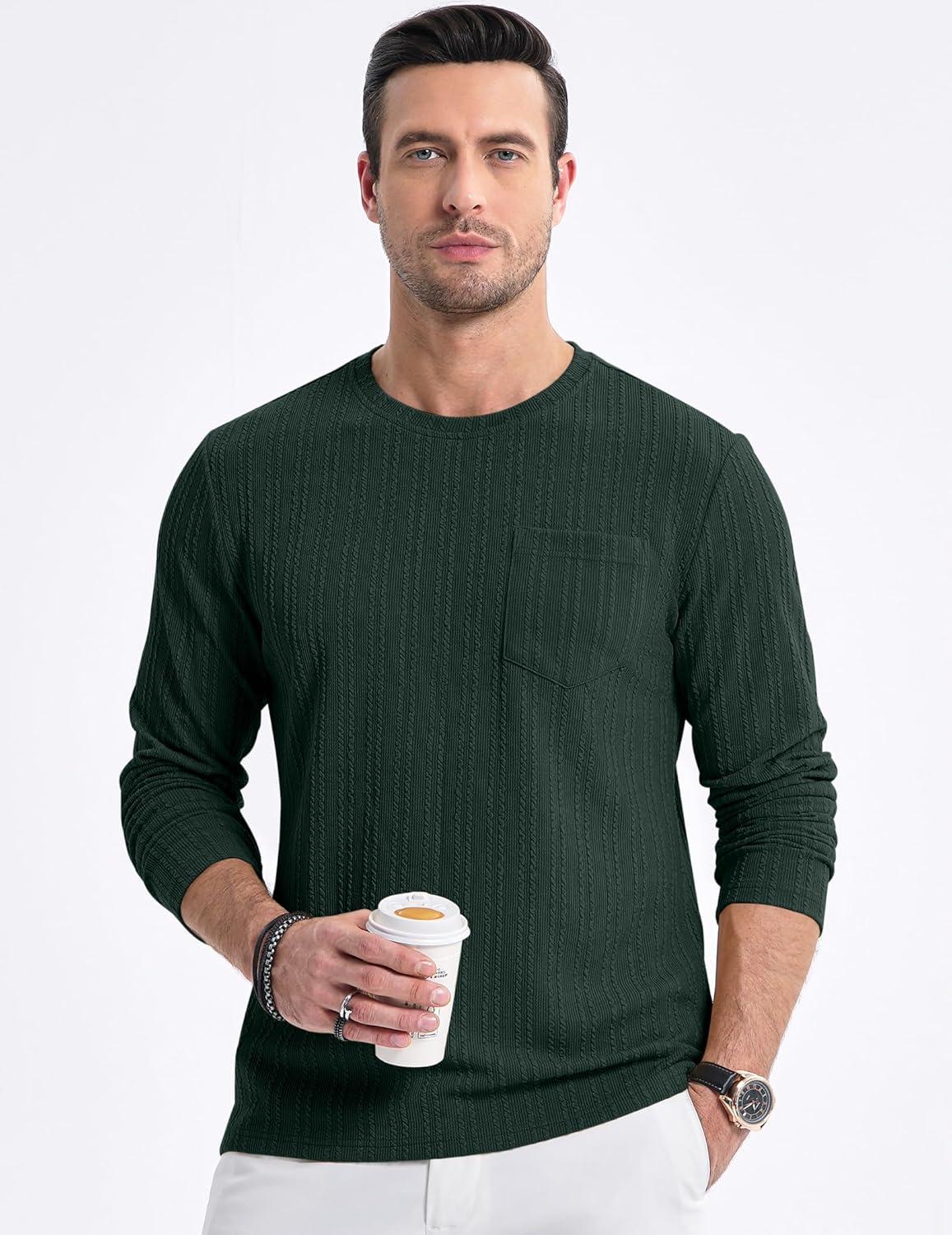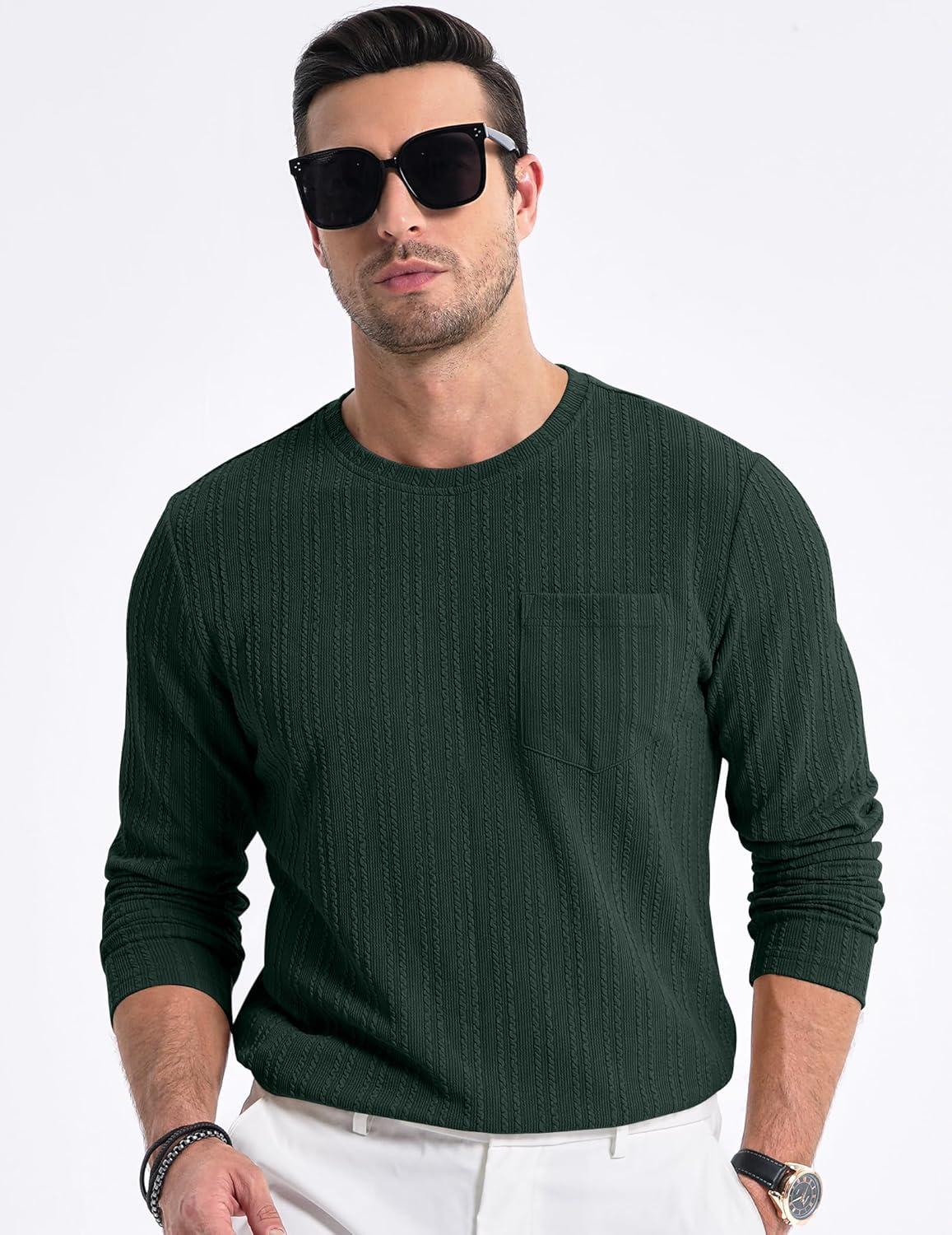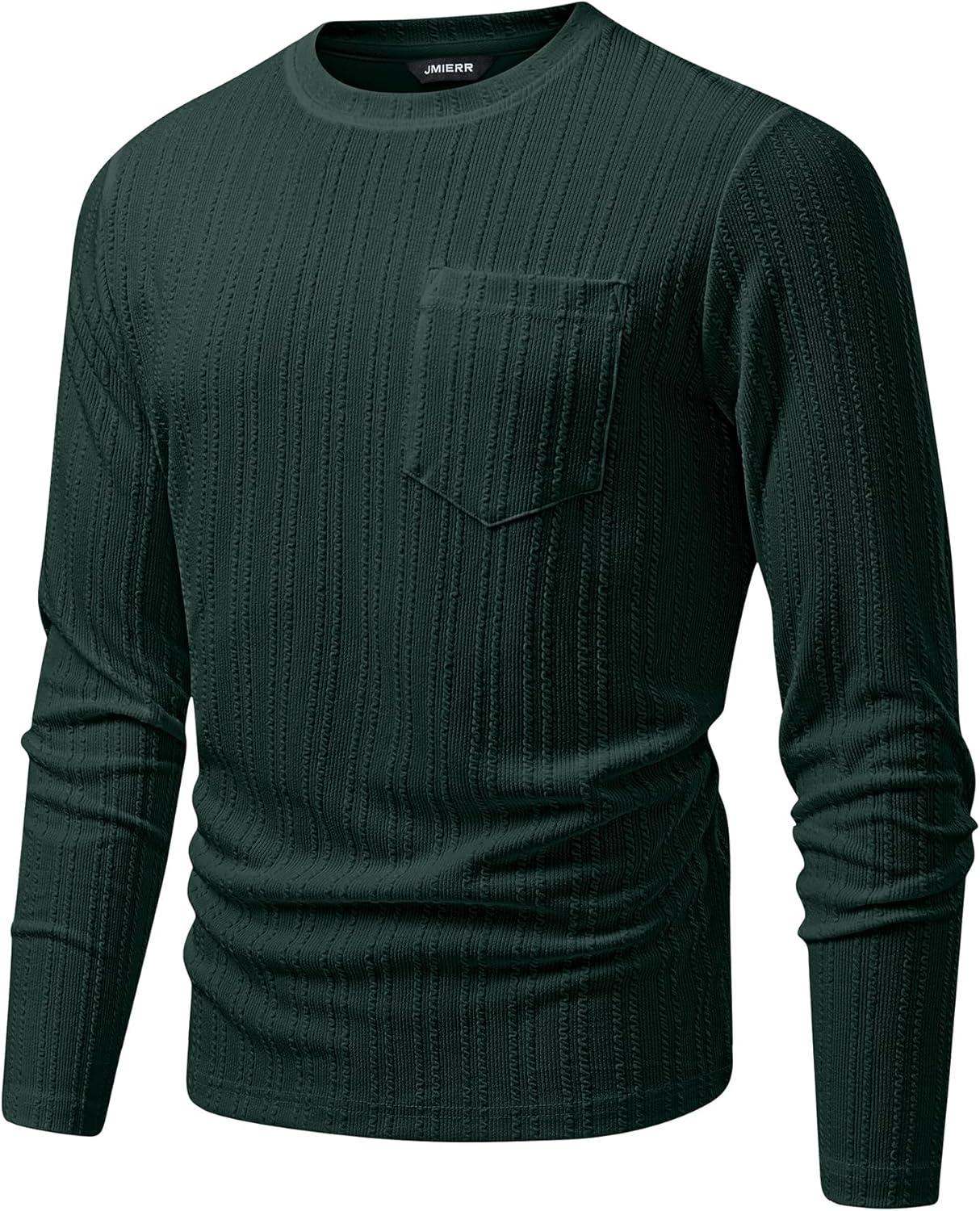 JMIERR Mens Casual Long Sleeve Lightweight T-Shirt Slim Fit Knit Crew Neck Stretch Ribbed Undershirts for Men(12 Green)