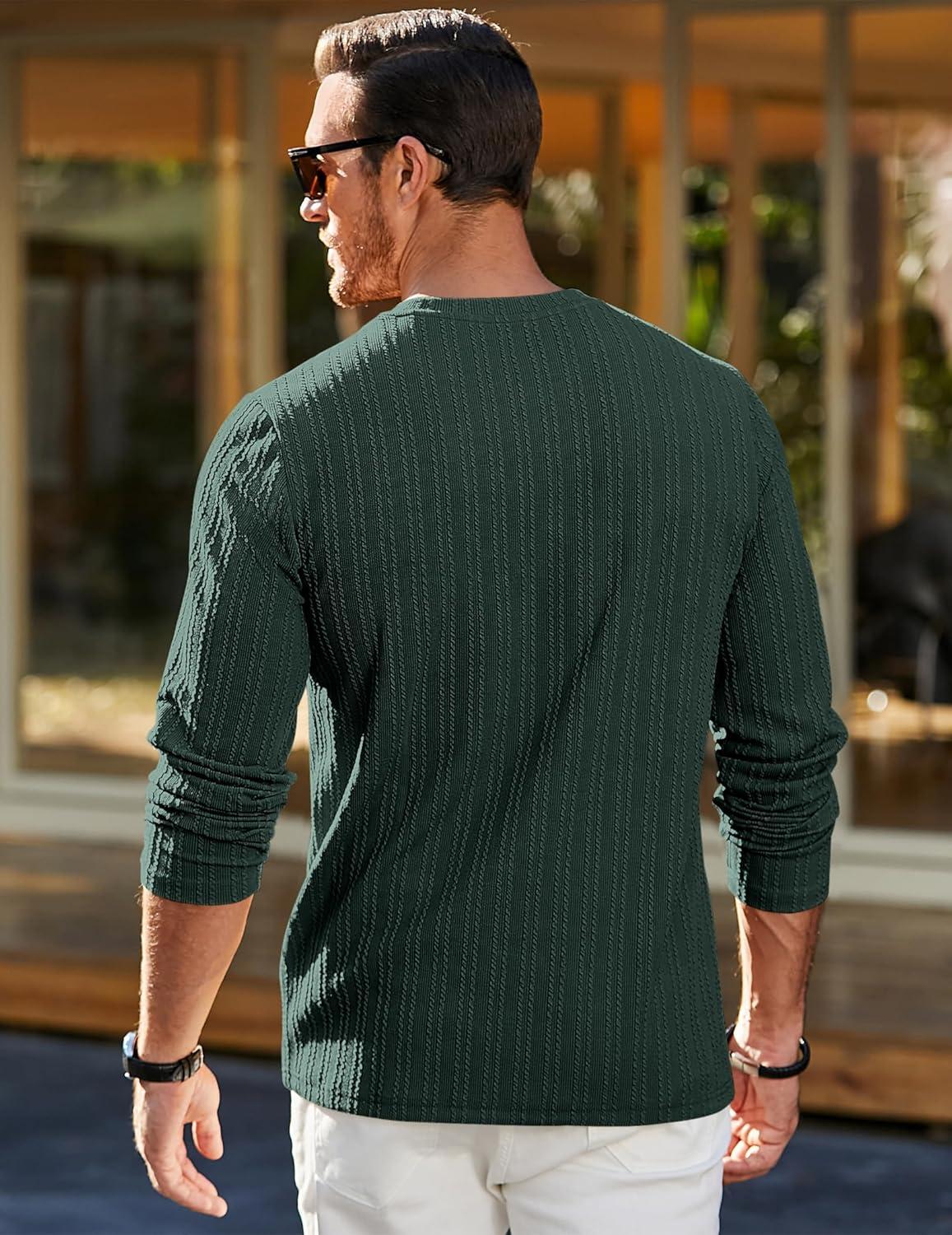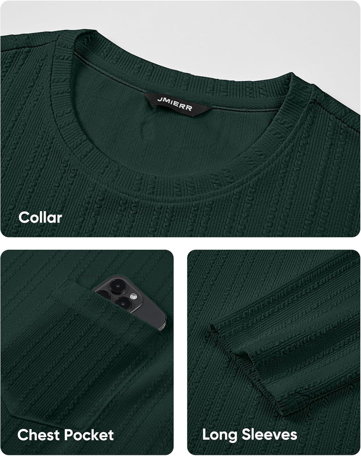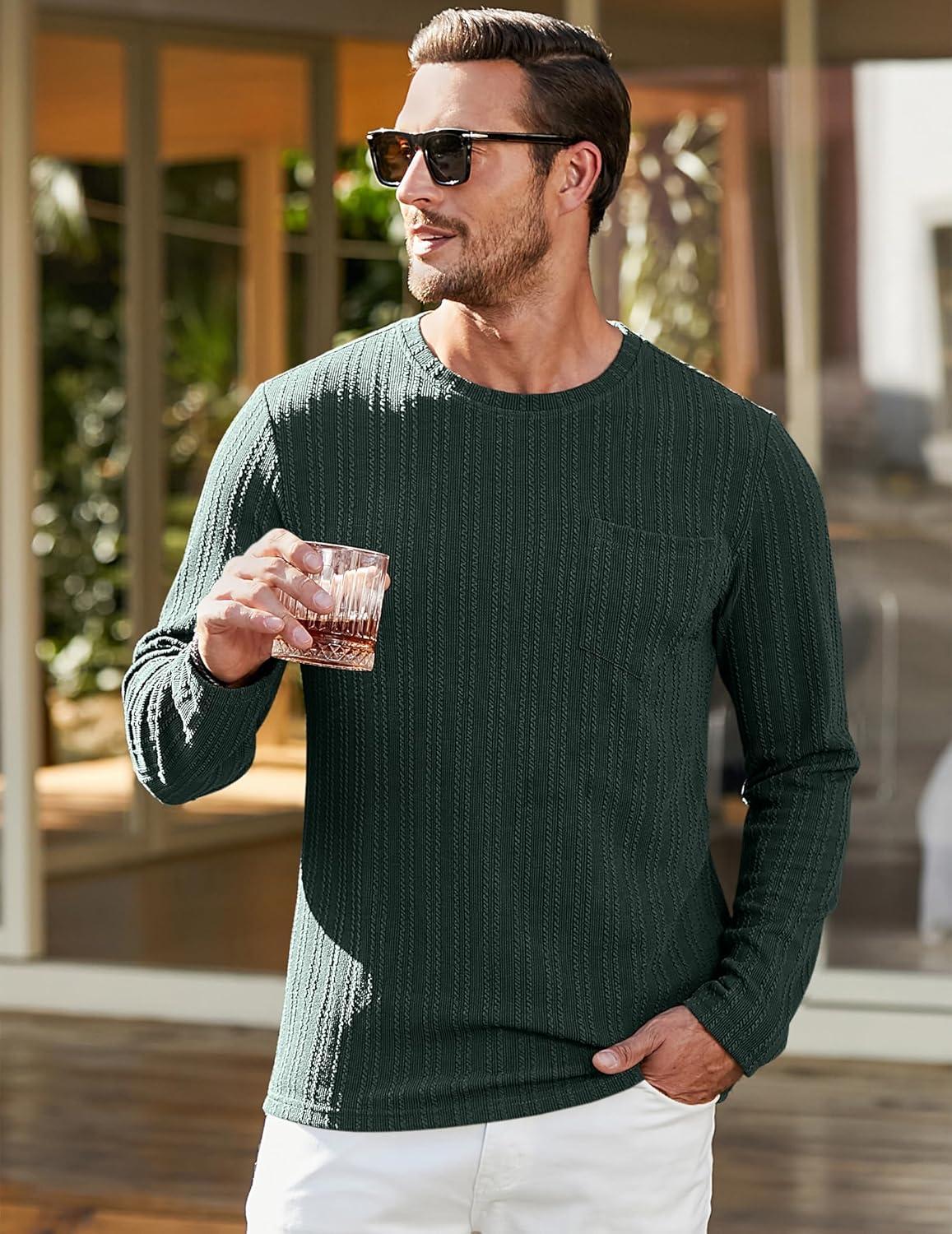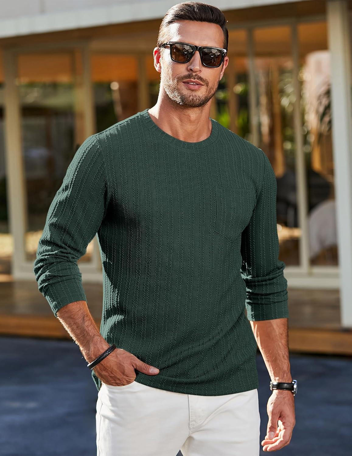 JMIERR Mens Casual Long Sleeve Lightweight T-Shirt Slim Fit Knit Crew Neck Stretch Ribbed Undershirts for Men(12 Green)