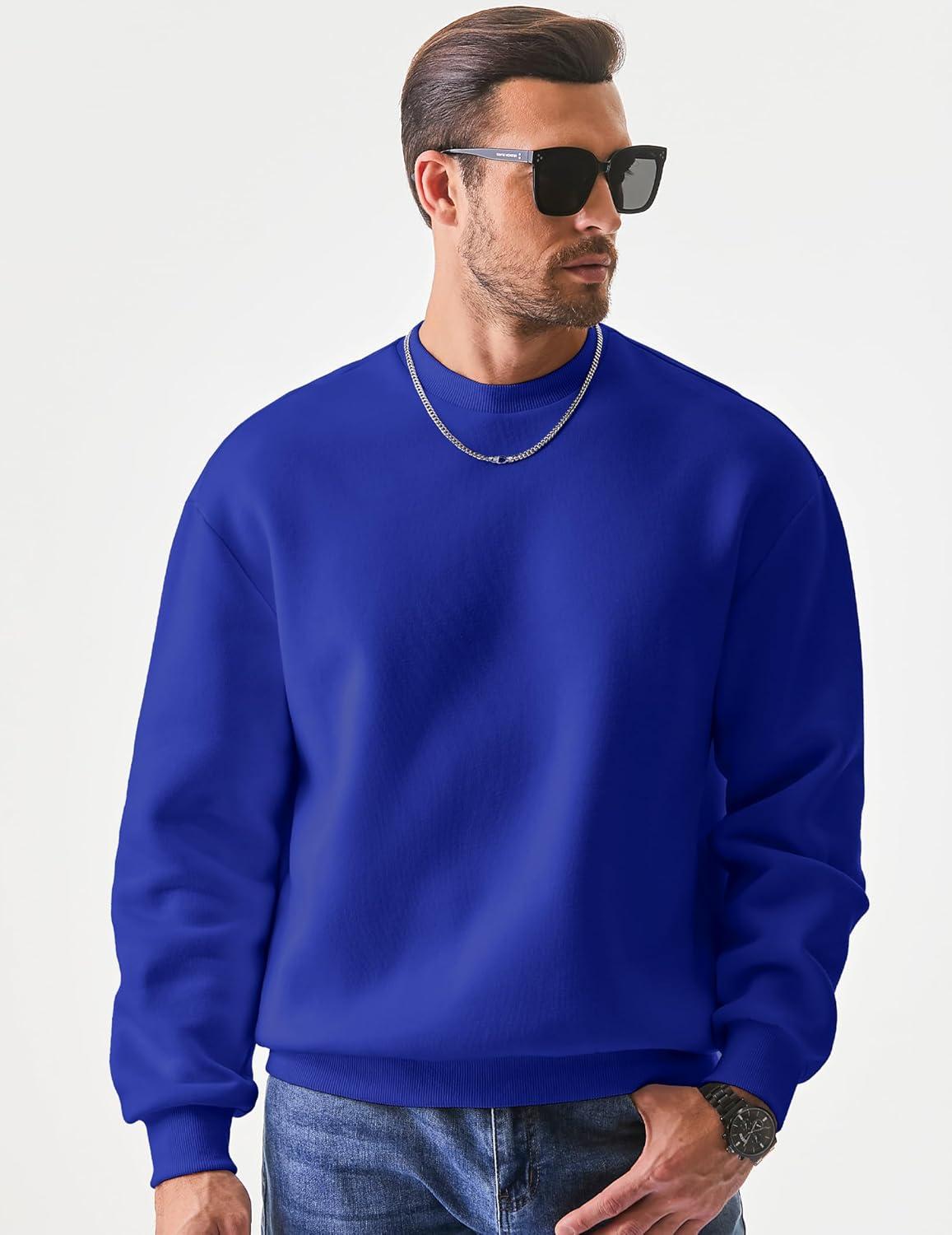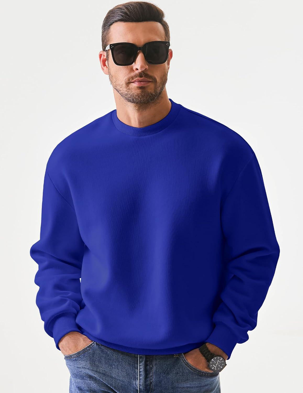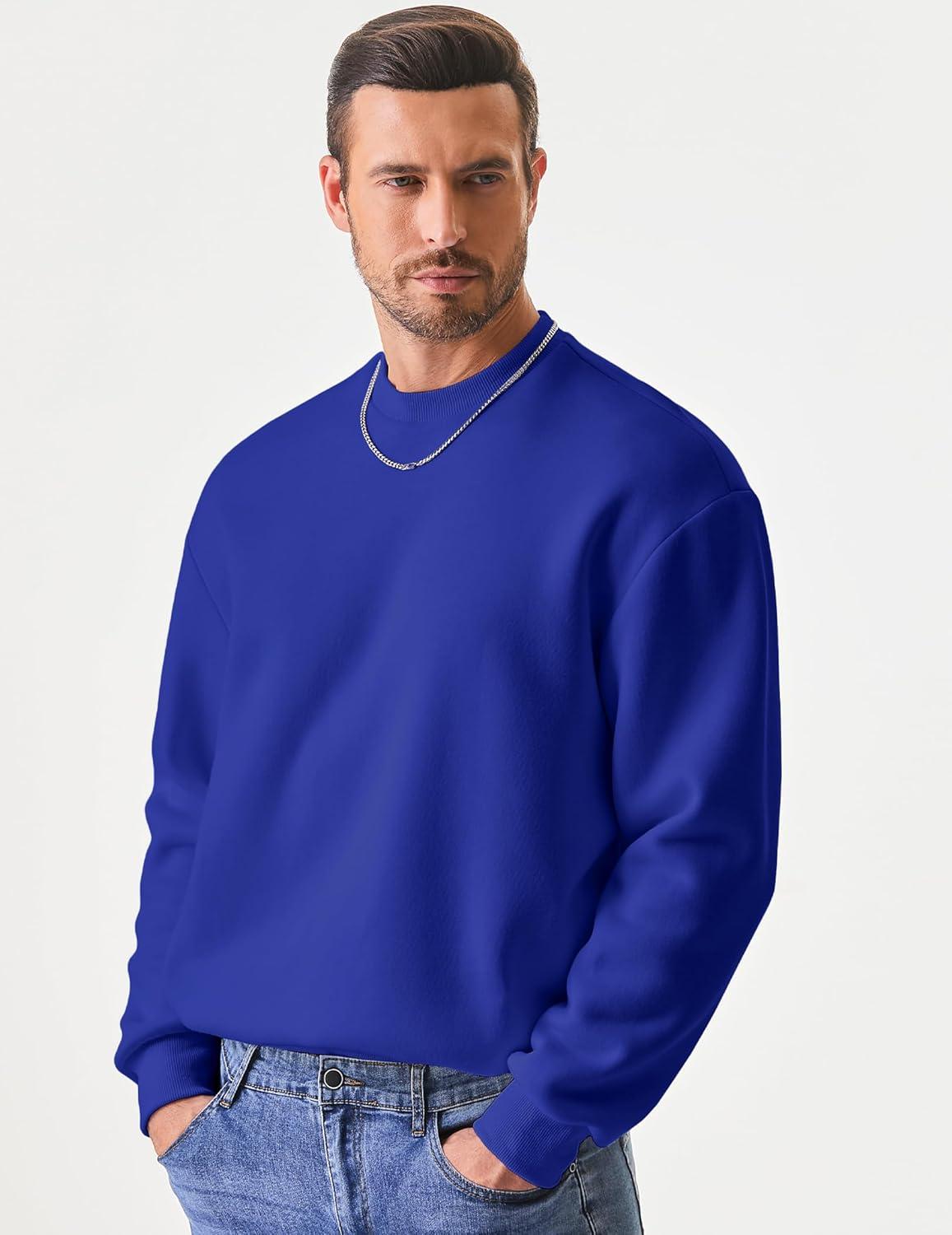 JMIERR Men’s Casual Long Sleeves Crewneck Sweatshirts Cotton Pullover Sweatshirt for Men(Dark Blue)