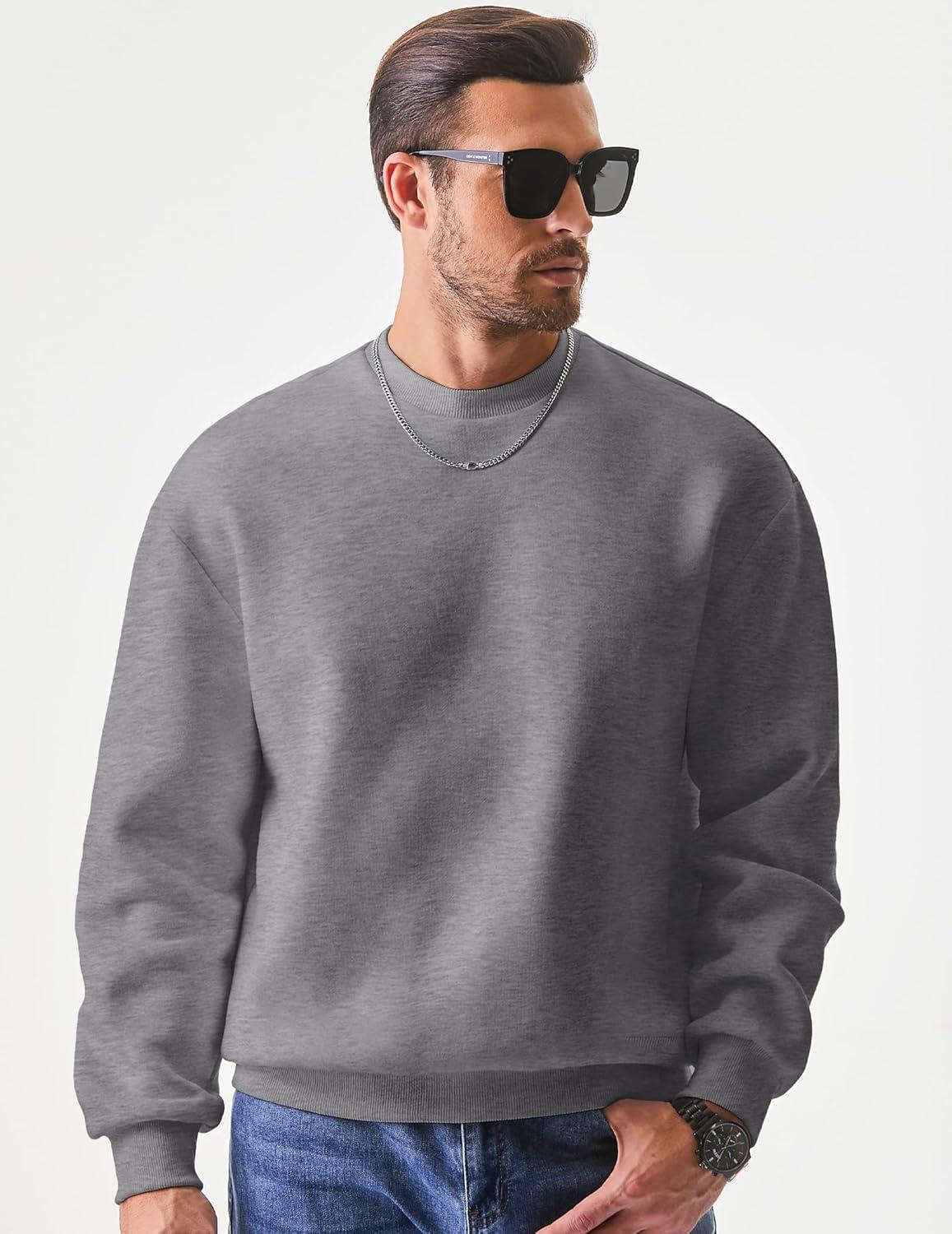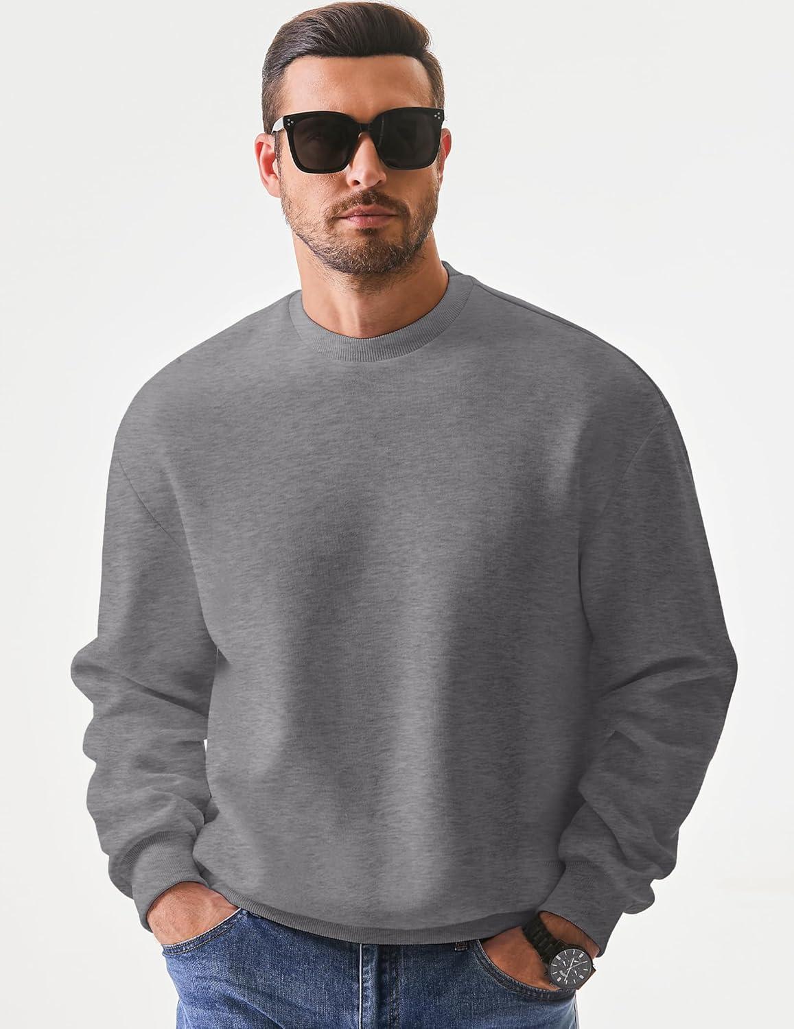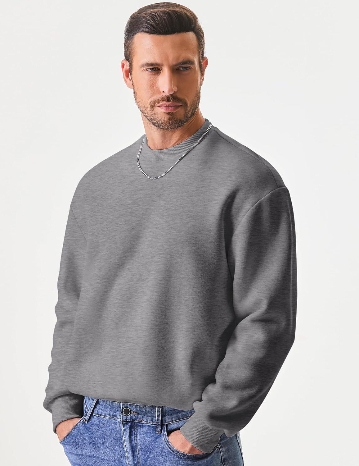 JMIERR Men’s Casual Long Sleeves Crewneck Sweatshirts Cotton Pullover Sweatshirt for Men(Medium Grey)