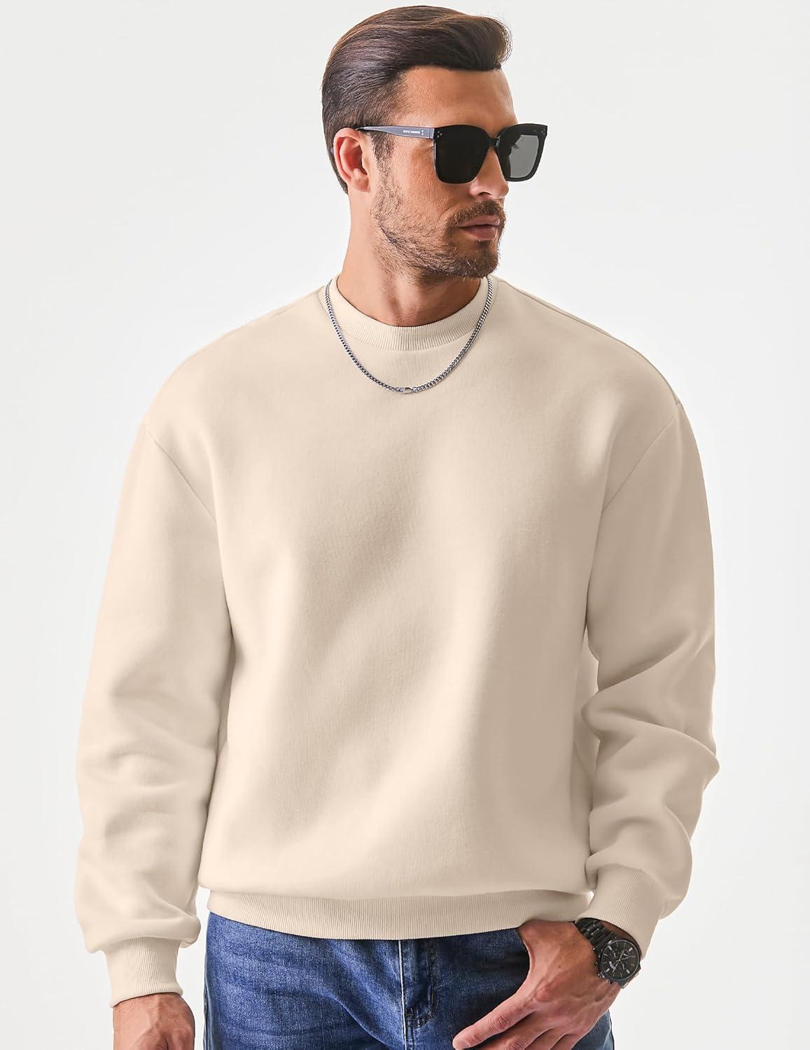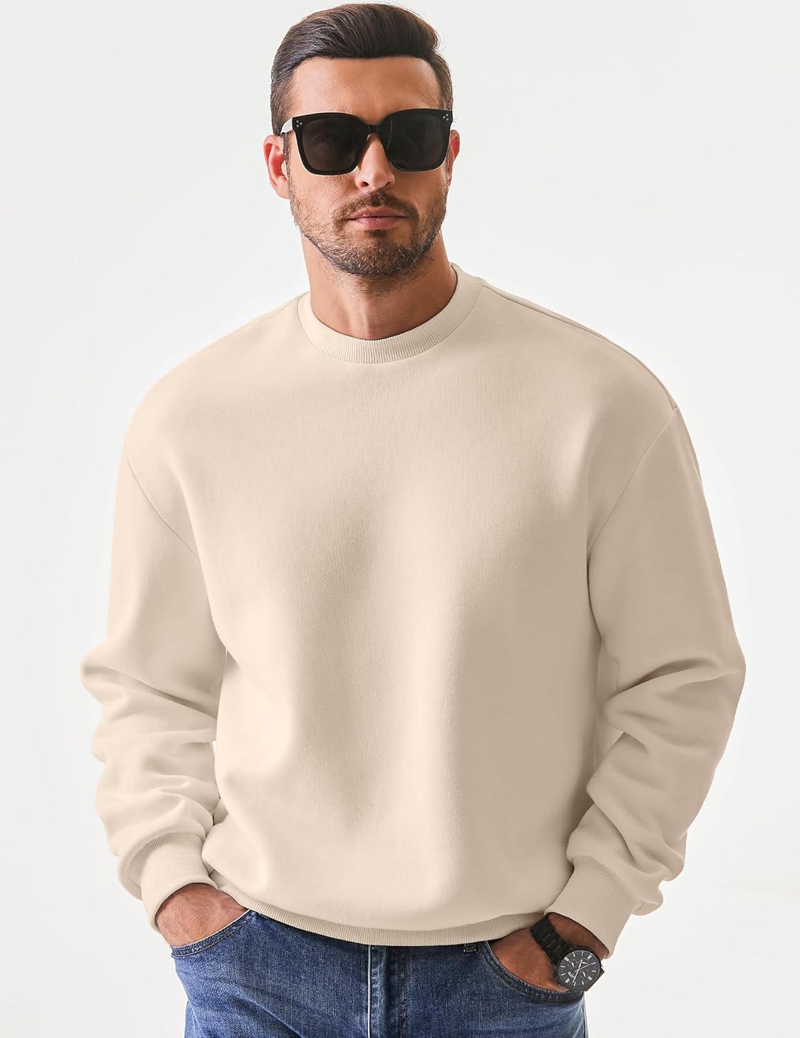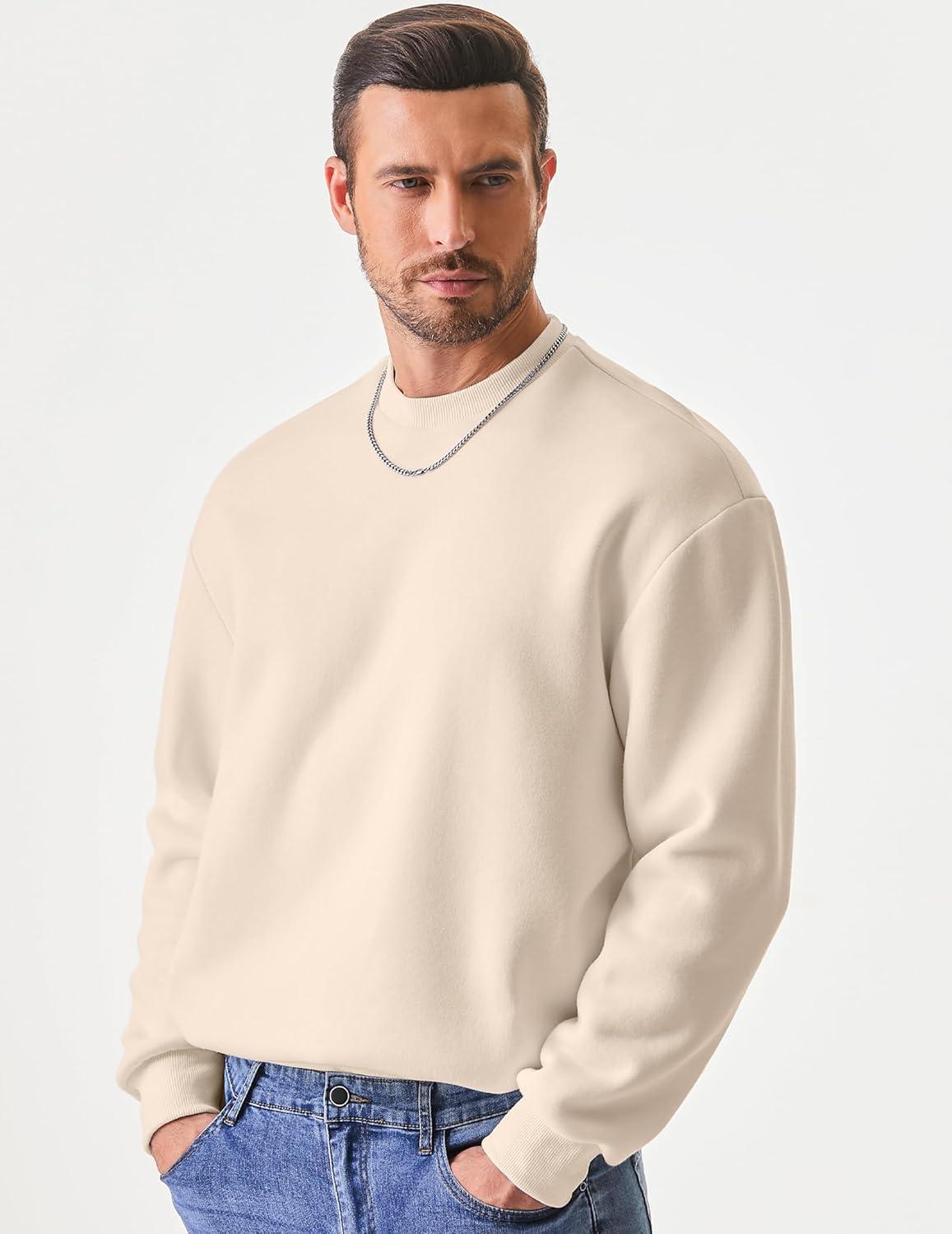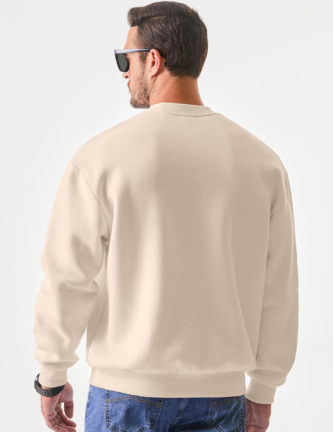 JMIERR Men’s Casual Long Sleeves Crewneck Sweatshirts Cotton Pullover Sweatshirt for Men(Oatmeal)