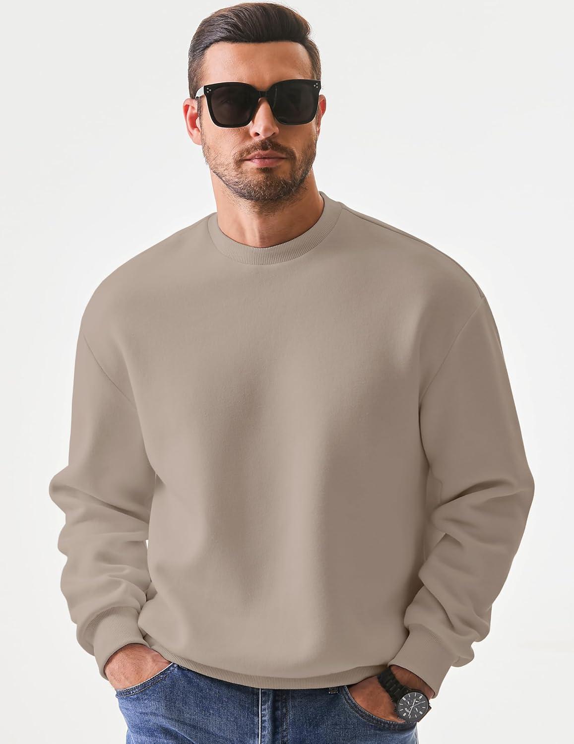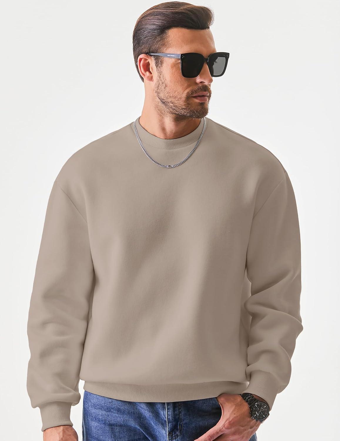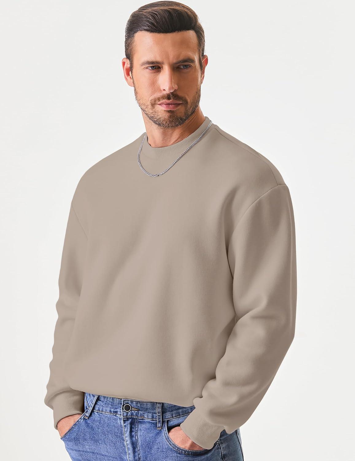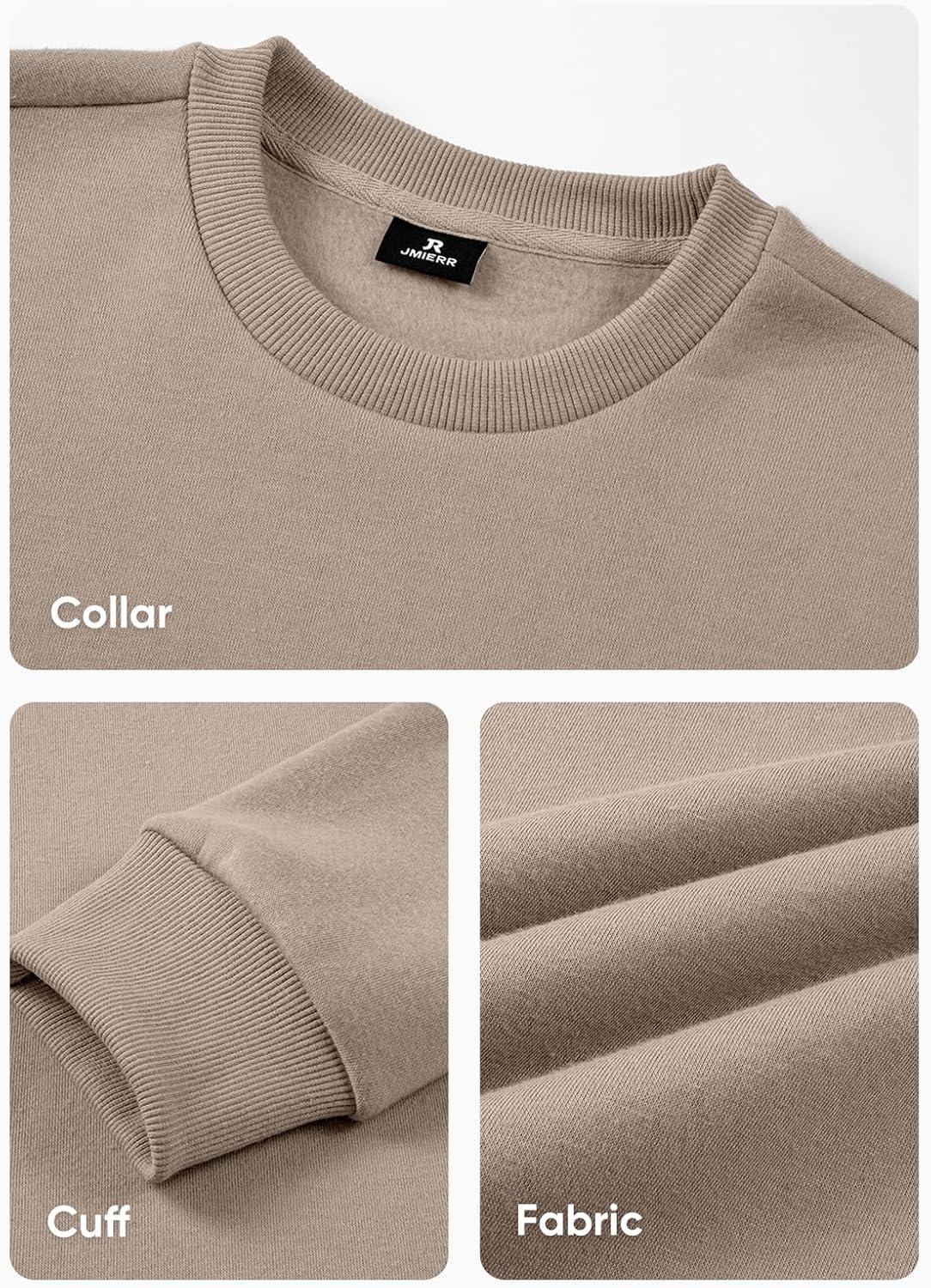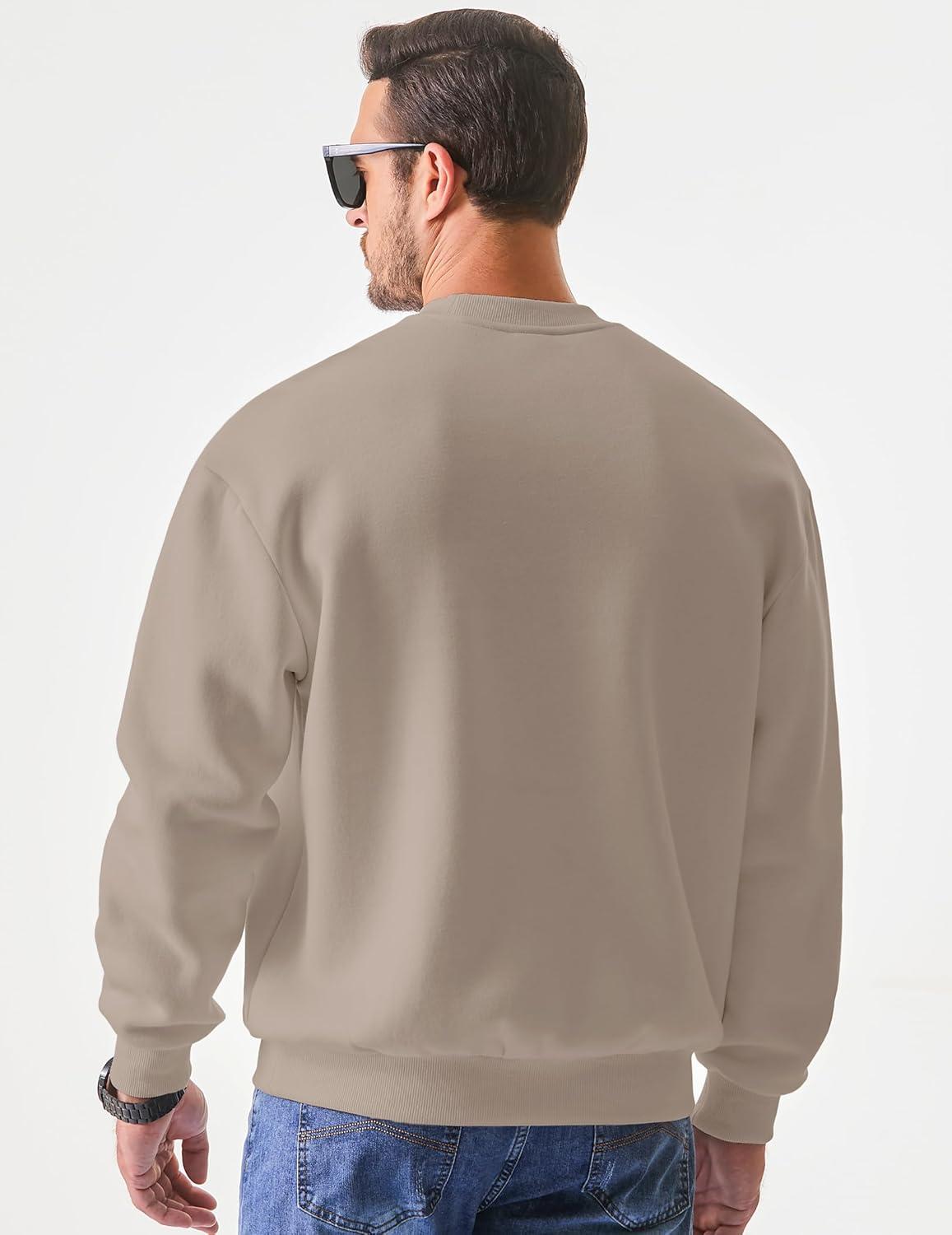 JMIERR Men’s Casual Long Sleeves Crewneck Sweatshirts Cotton Pullover Sweatshirt for Men(Pale Khaki)