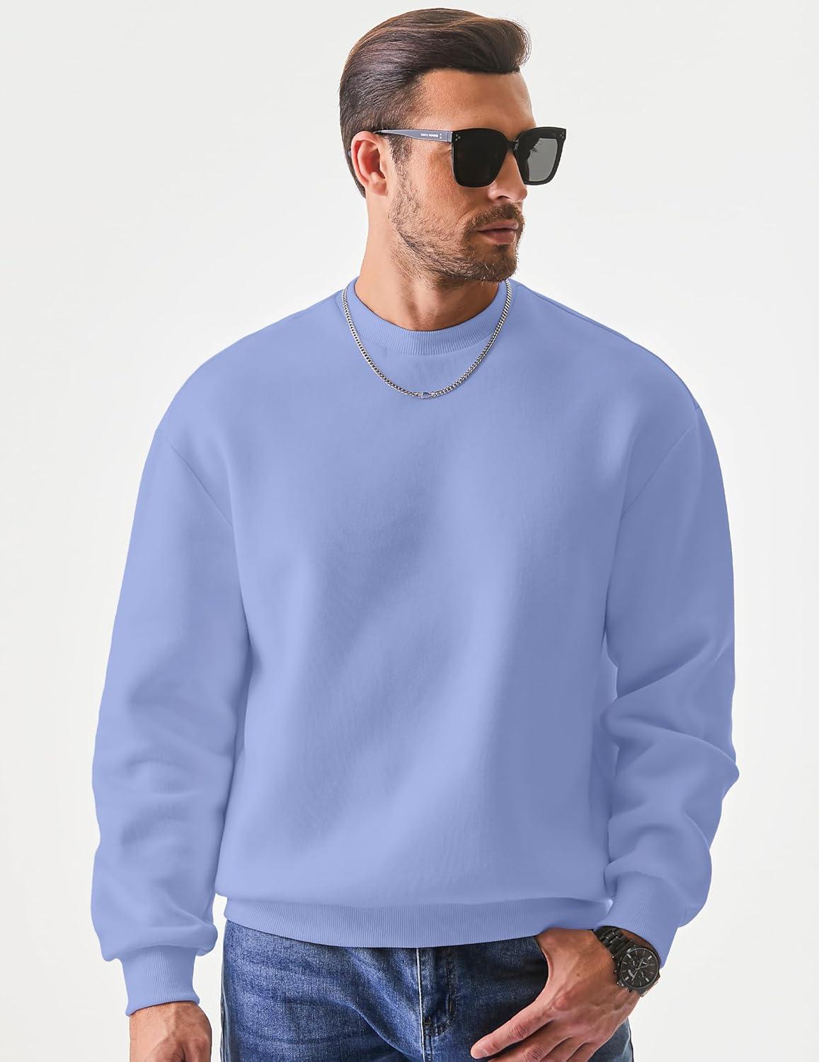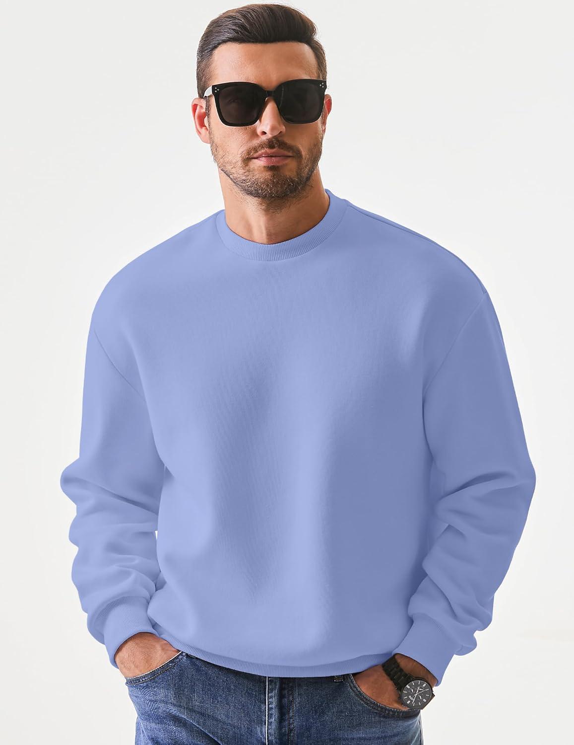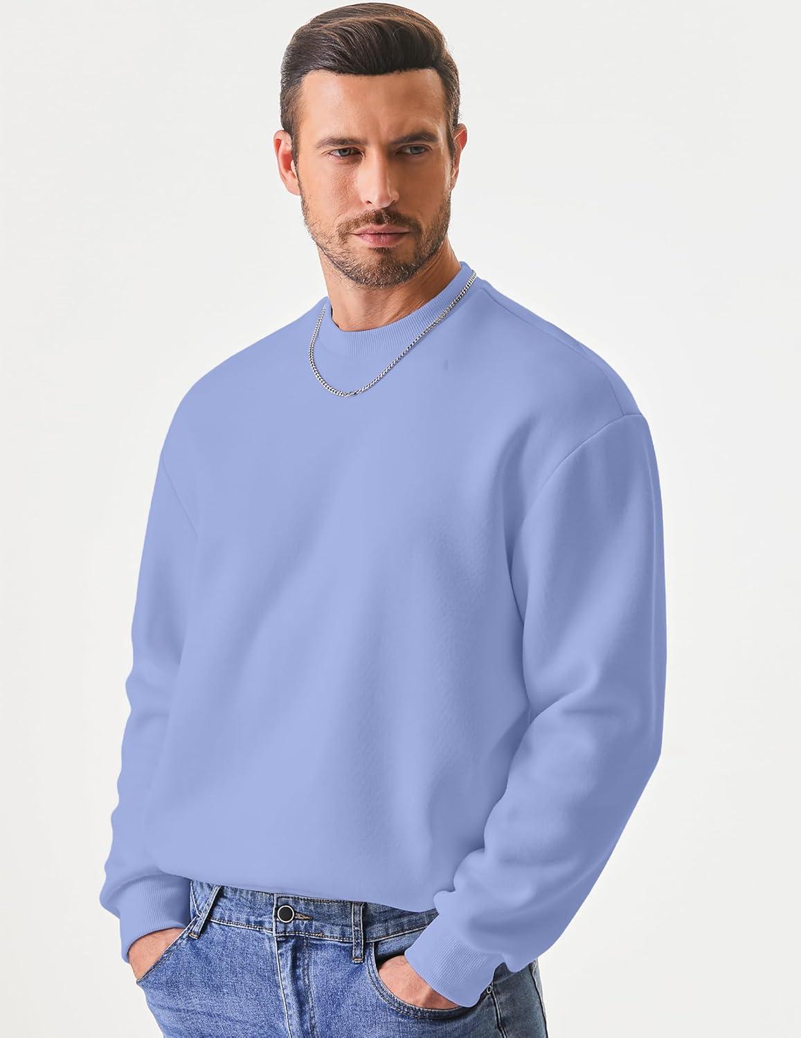 JMIERR Men’s Casual Long Sleeves Crewneck Sweatshirts Cotton Pullover Sweatshirt for Men(Sky Blue)