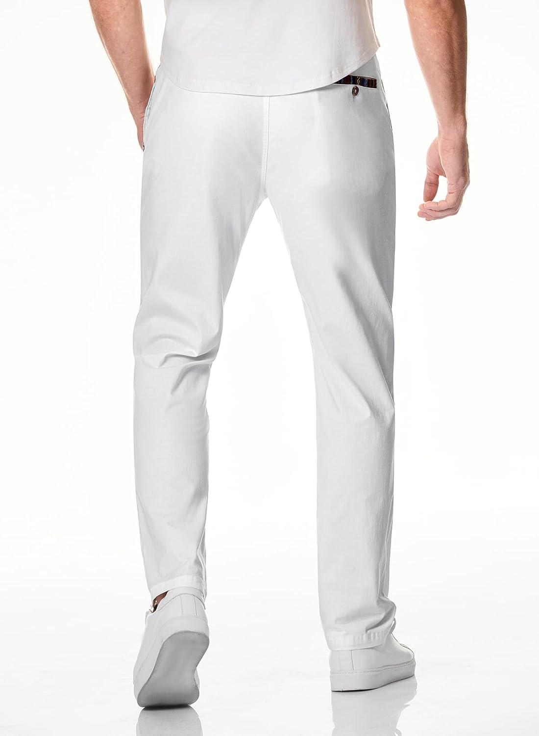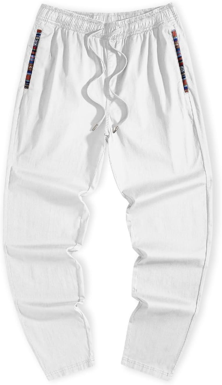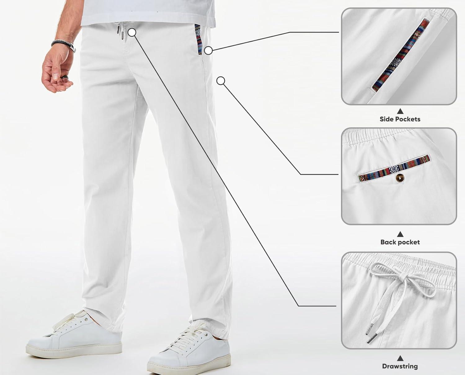 JMIERR Men’s Casual Pants Cotton Twill Drawstring Elastic Waist Chino Pants with Pockets(A White)