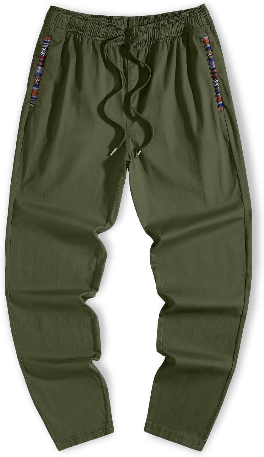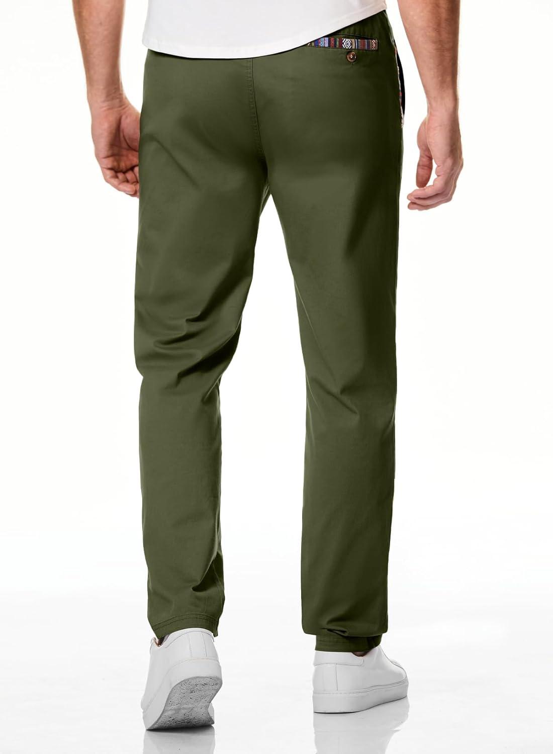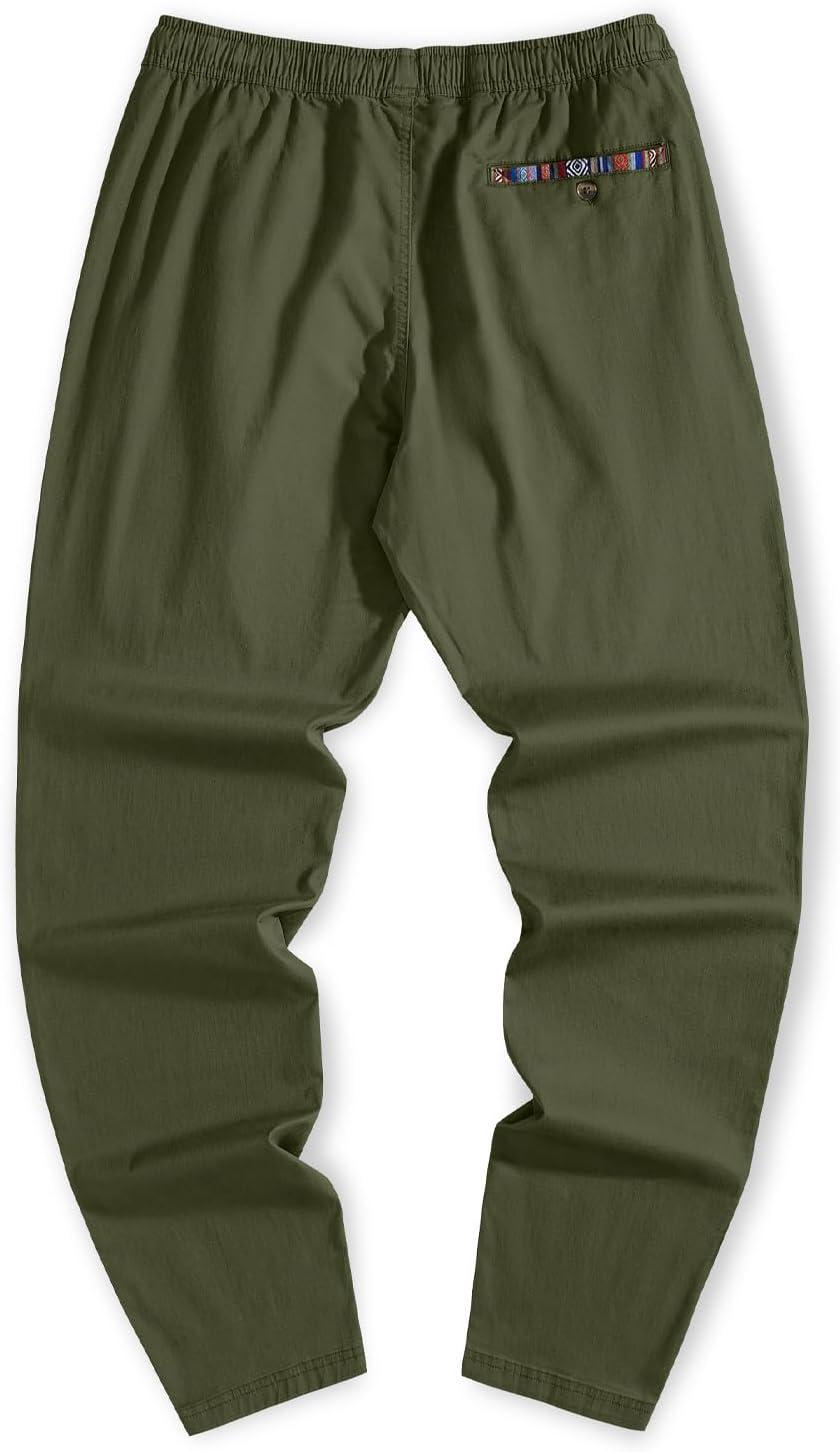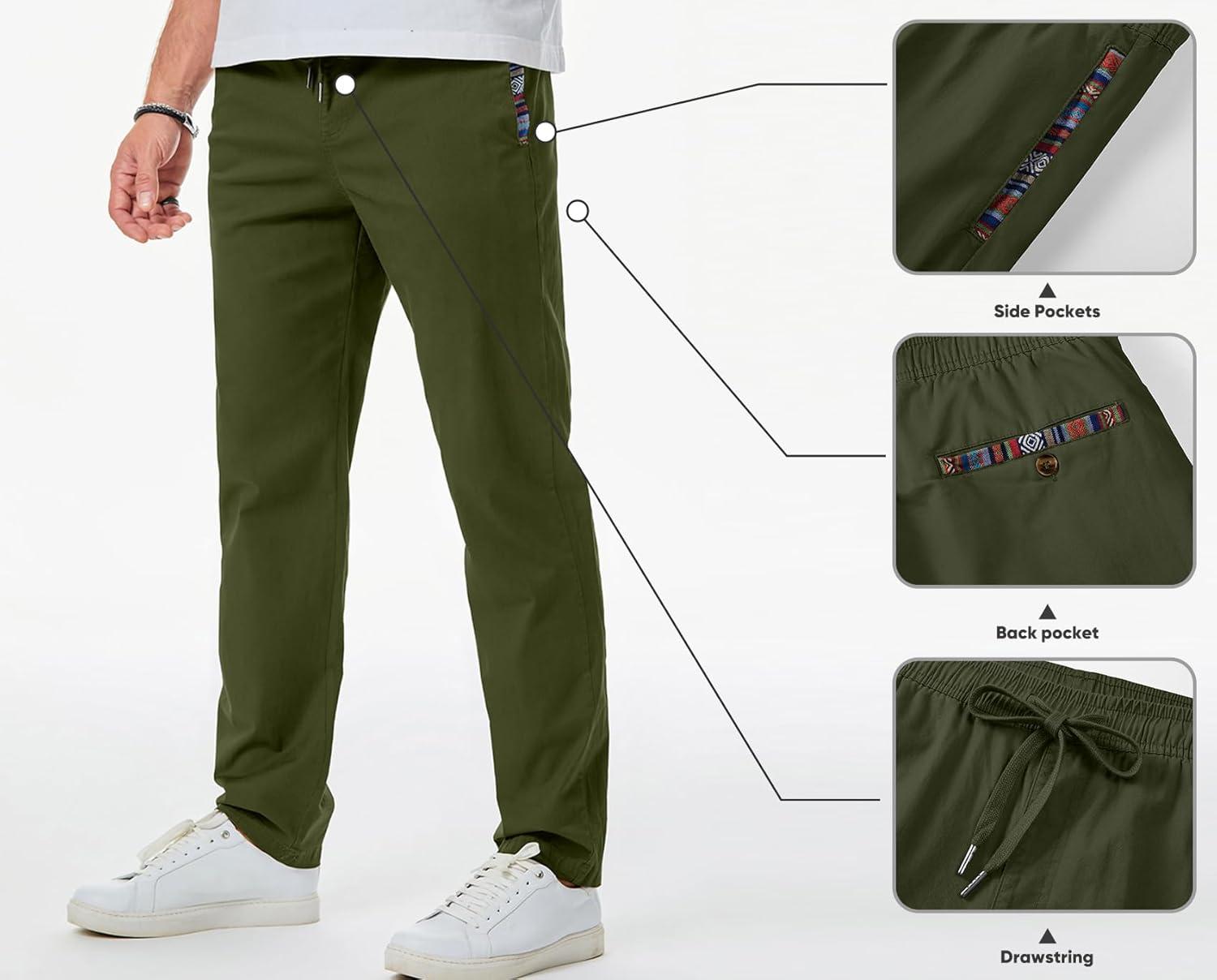 JMIERR Men’s Casual Pants Cotton Twill Drawstring Elastic Waist Chino Pants with Pockets(Jungle Green)