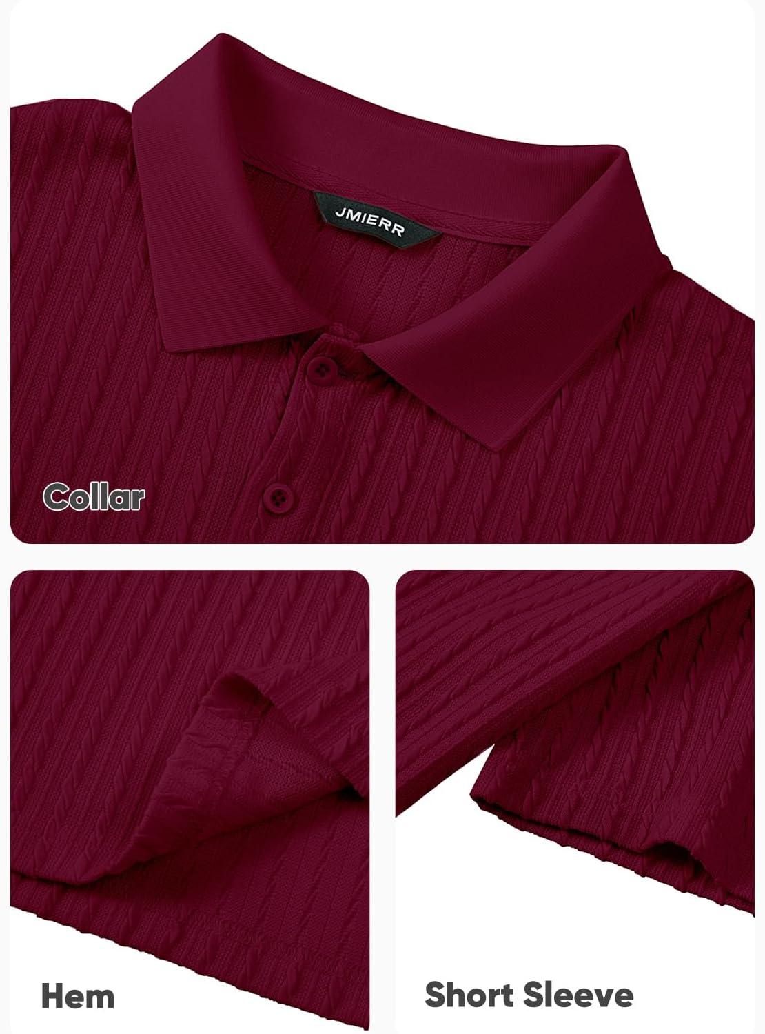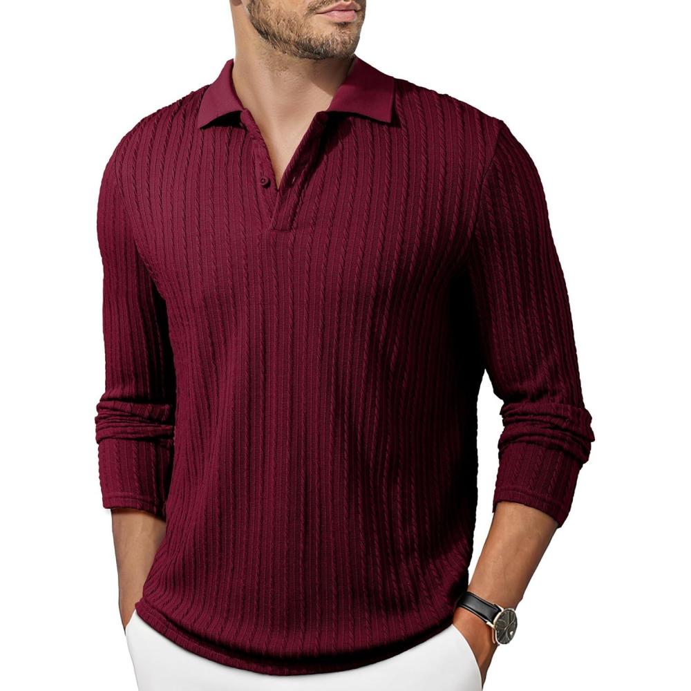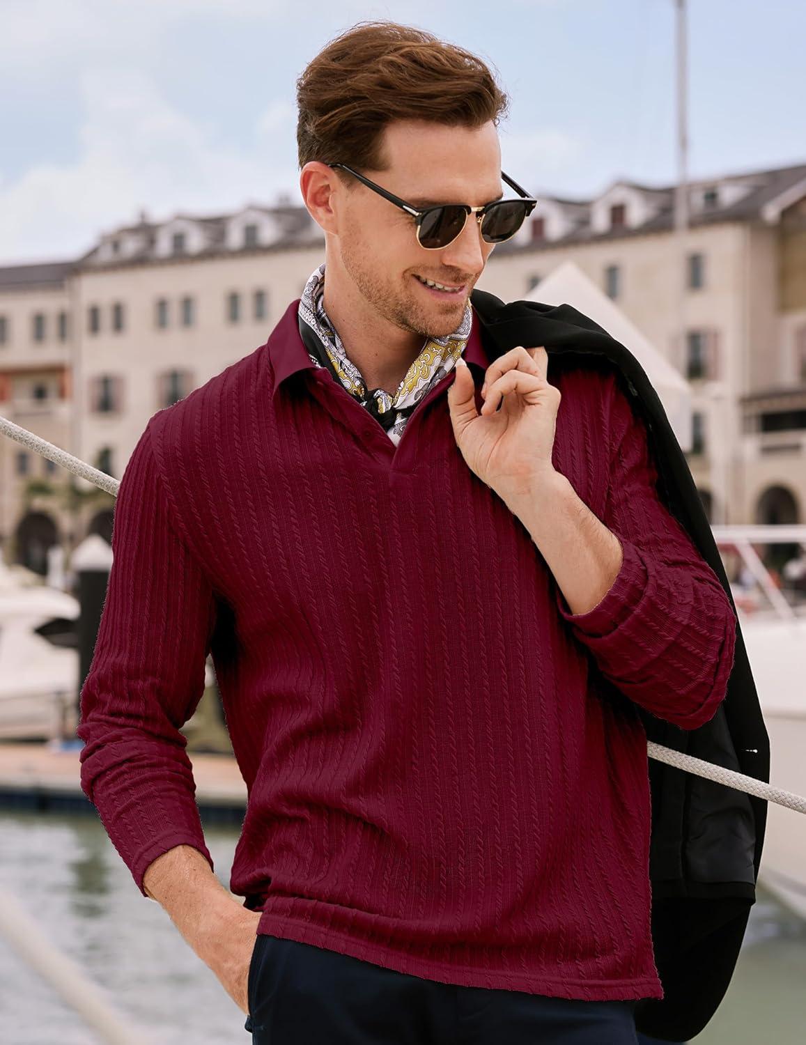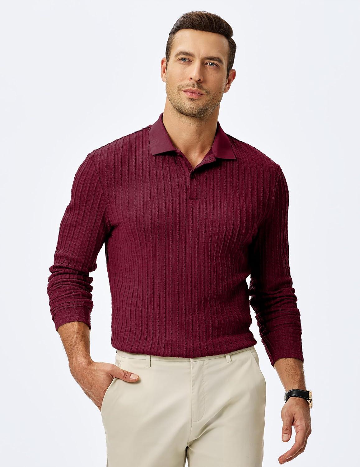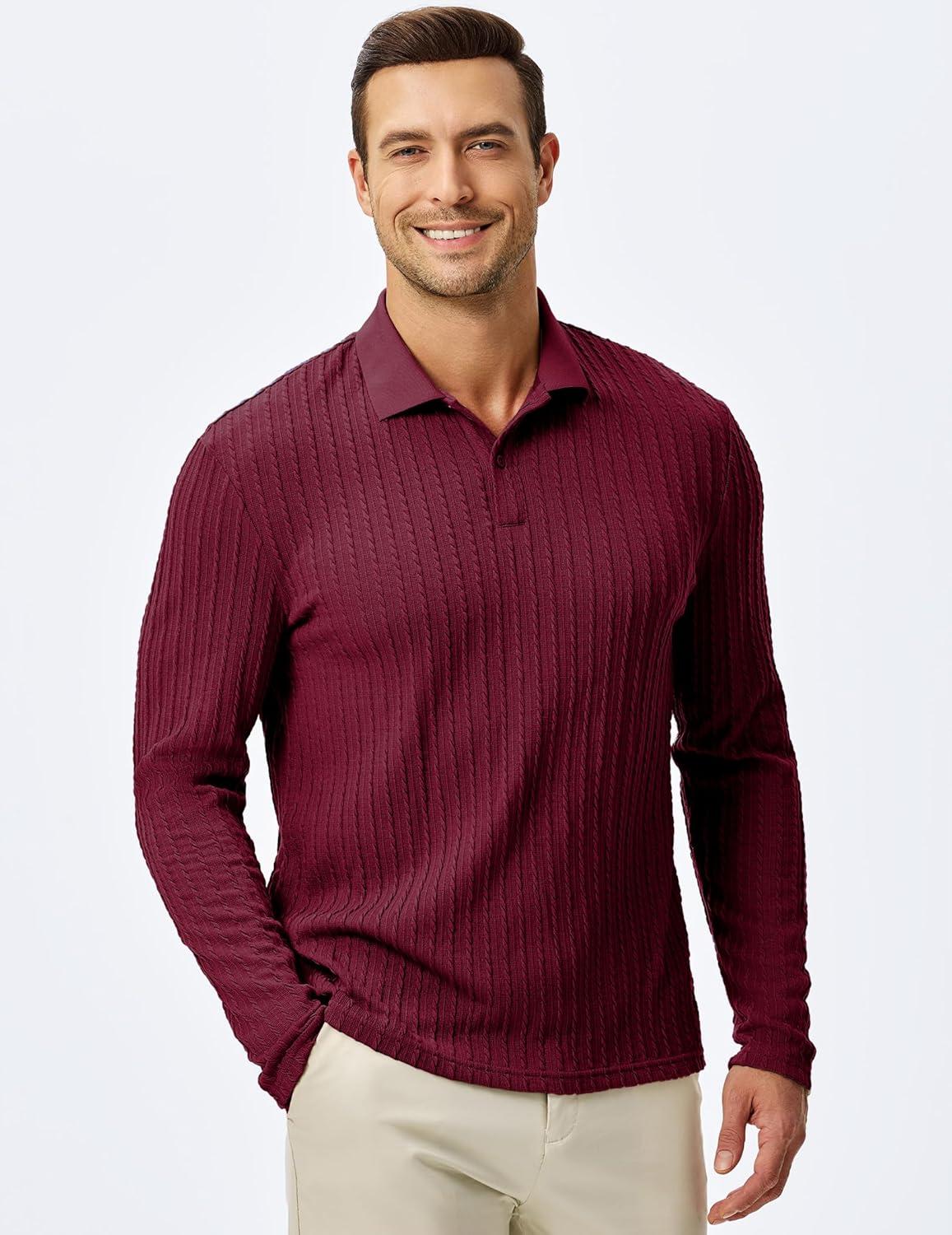 JMIERR Mens Casual Polo Shirt Summer Short Sleeve Vacation Button Beach Knit Stretchy Golf Shirts(Long Sleeve – Red)