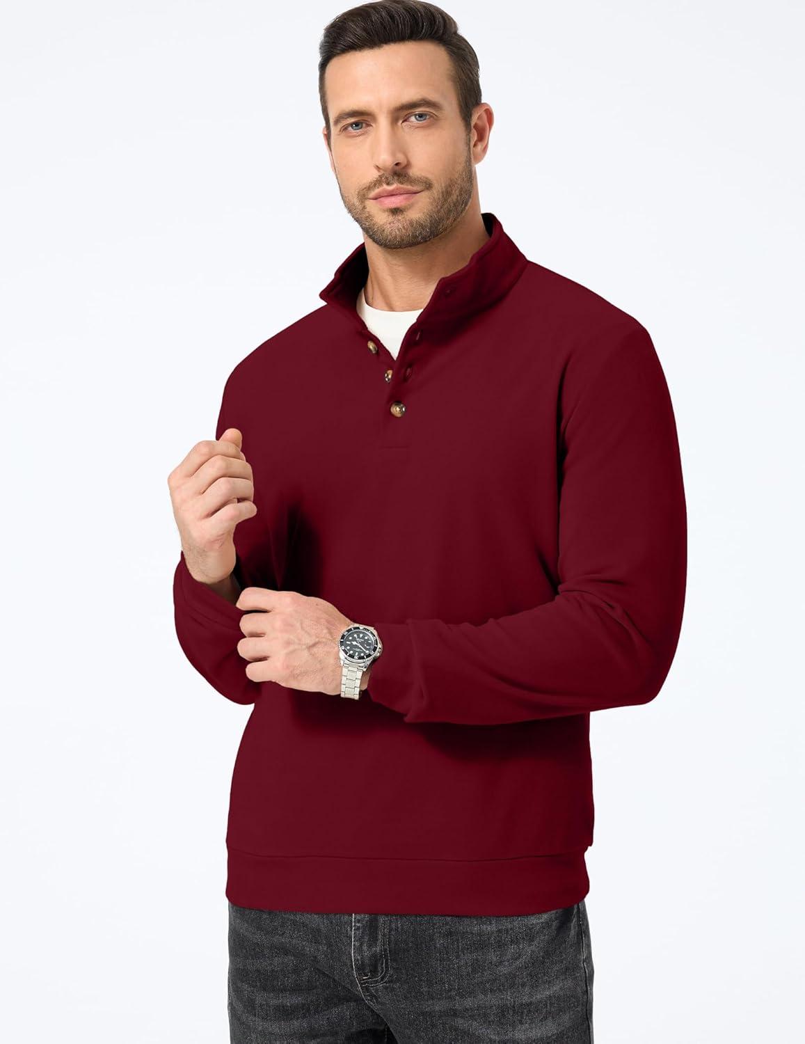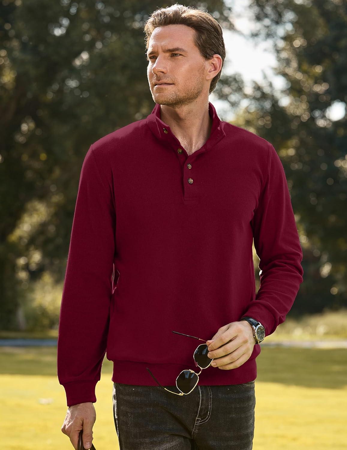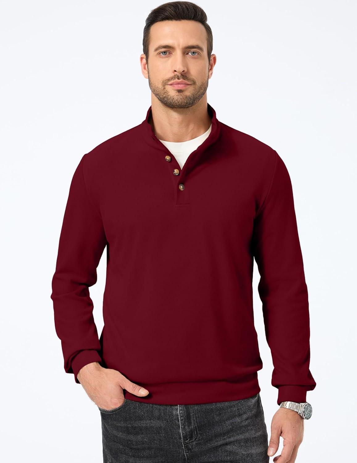 JMIERR Men’s Casual Pullover Sweatshirts Long Sleeve Lightweight Knitted Fleece Thermal Mock Neck Sweater(Red Dahlia)