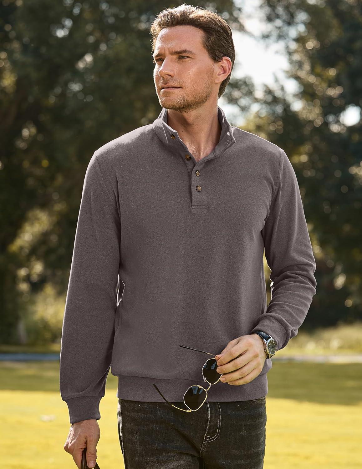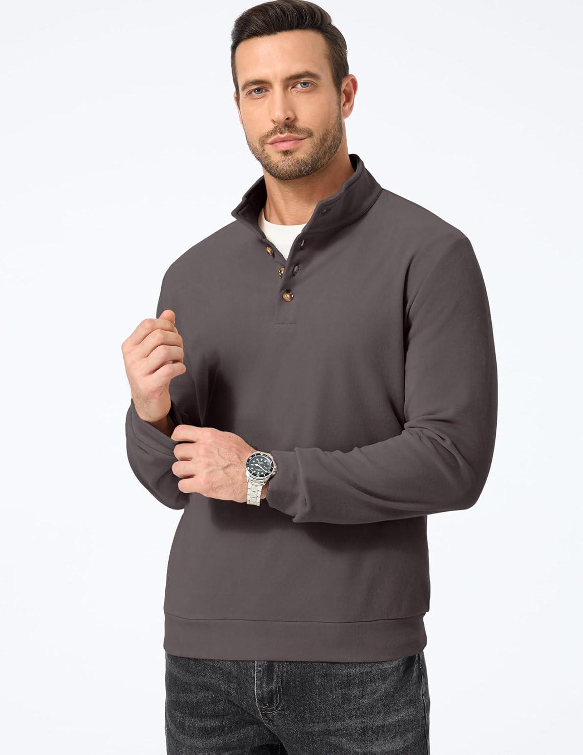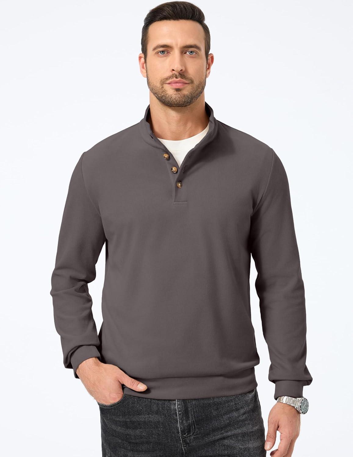 JMIERR Men’s Casual Pullover Sweatshirts Long Sleeve Lightweight Knitted Fleece Thermal Mock Neck Sweater(Simply Taupe)