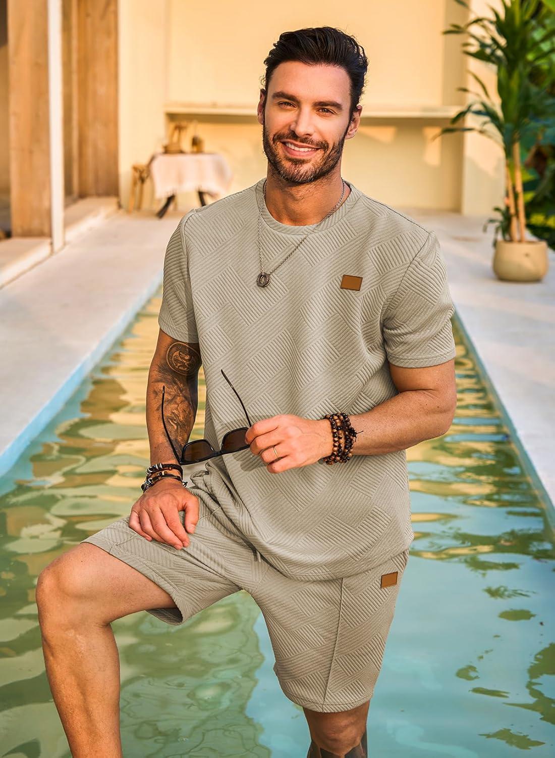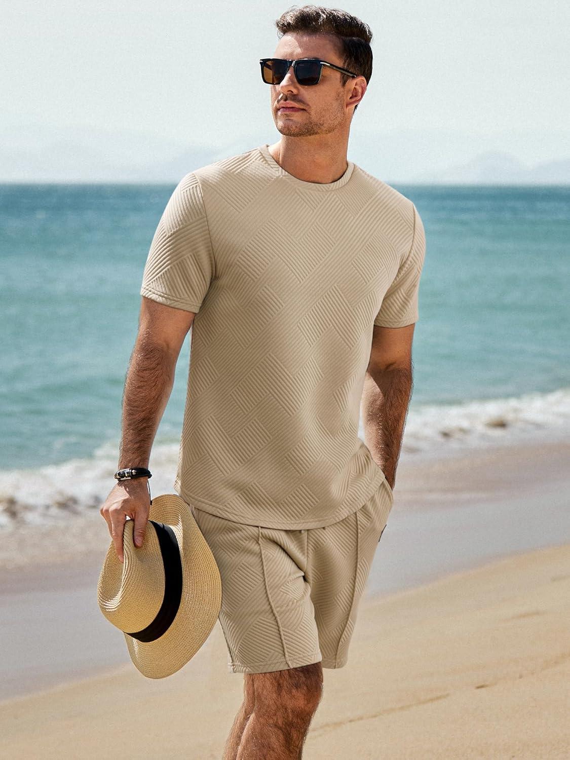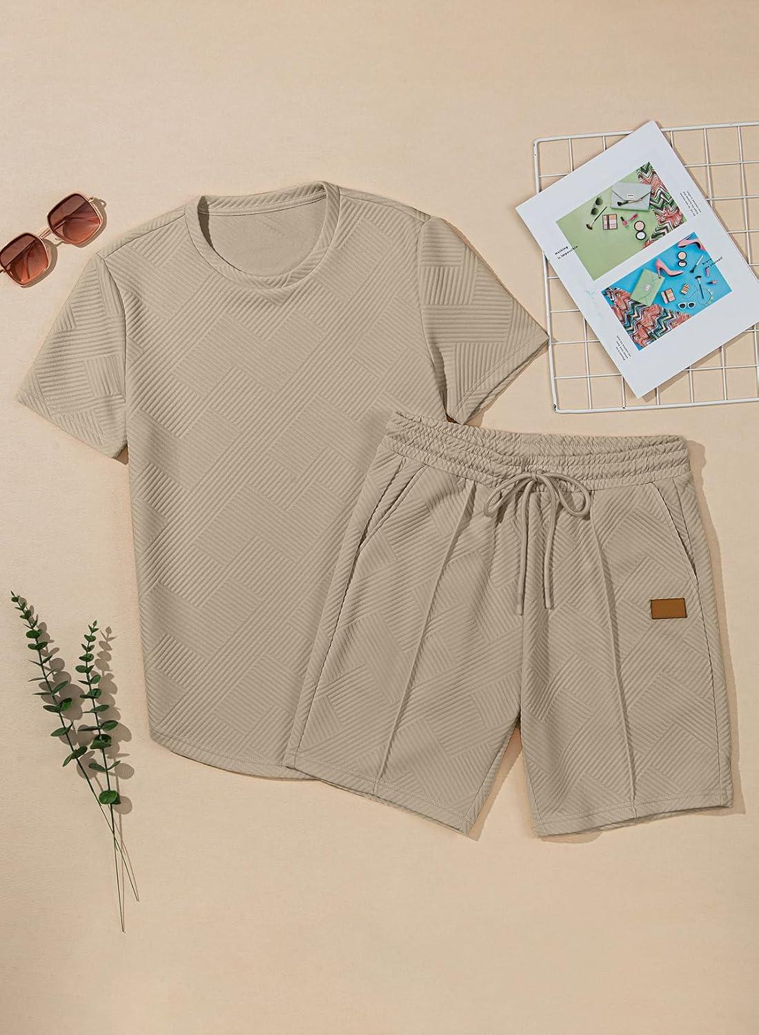 JMIERR Men’s Casual Short Sleeve T Shirts and Shorts Summer Beach Vacation 2 Piece Outfit Lounge Workout Sets(A5 Khaki)