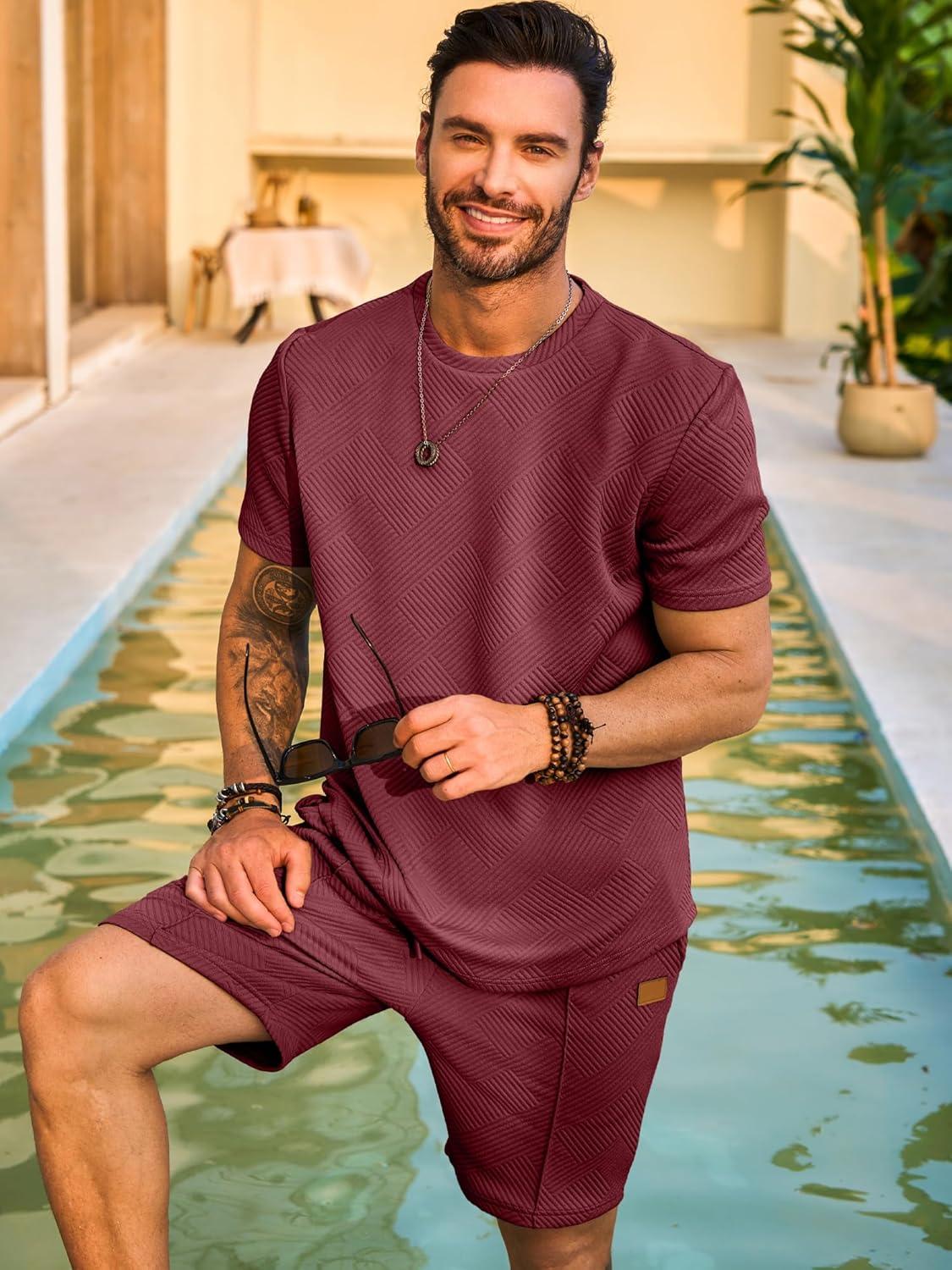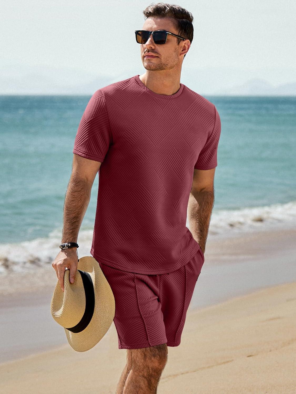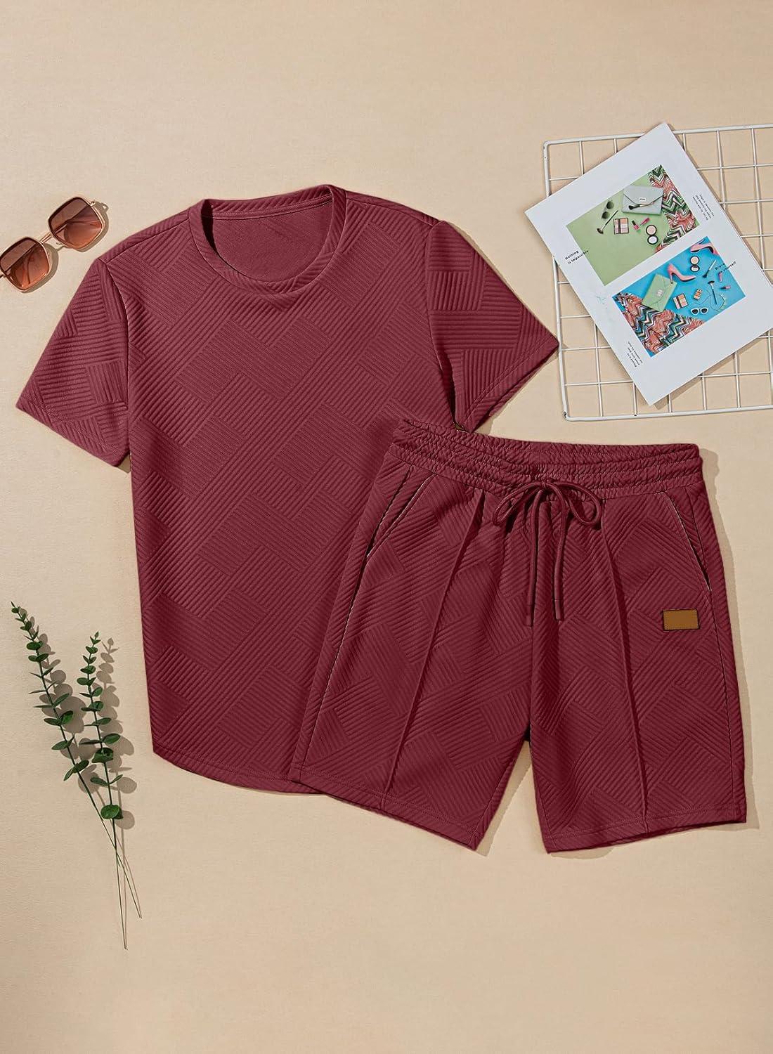 JMIERR Men’s Casual Short Sleeve T Shirts and Shorts Summer Beach Vacation 2 Piece Outfit Lounge Workout Sets(B Dark Red)