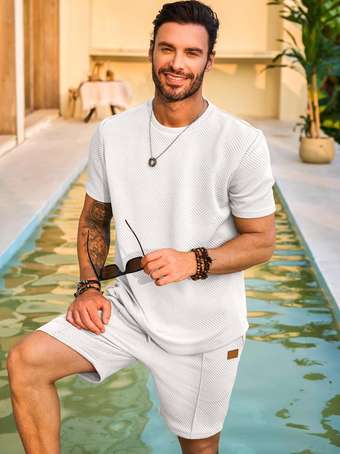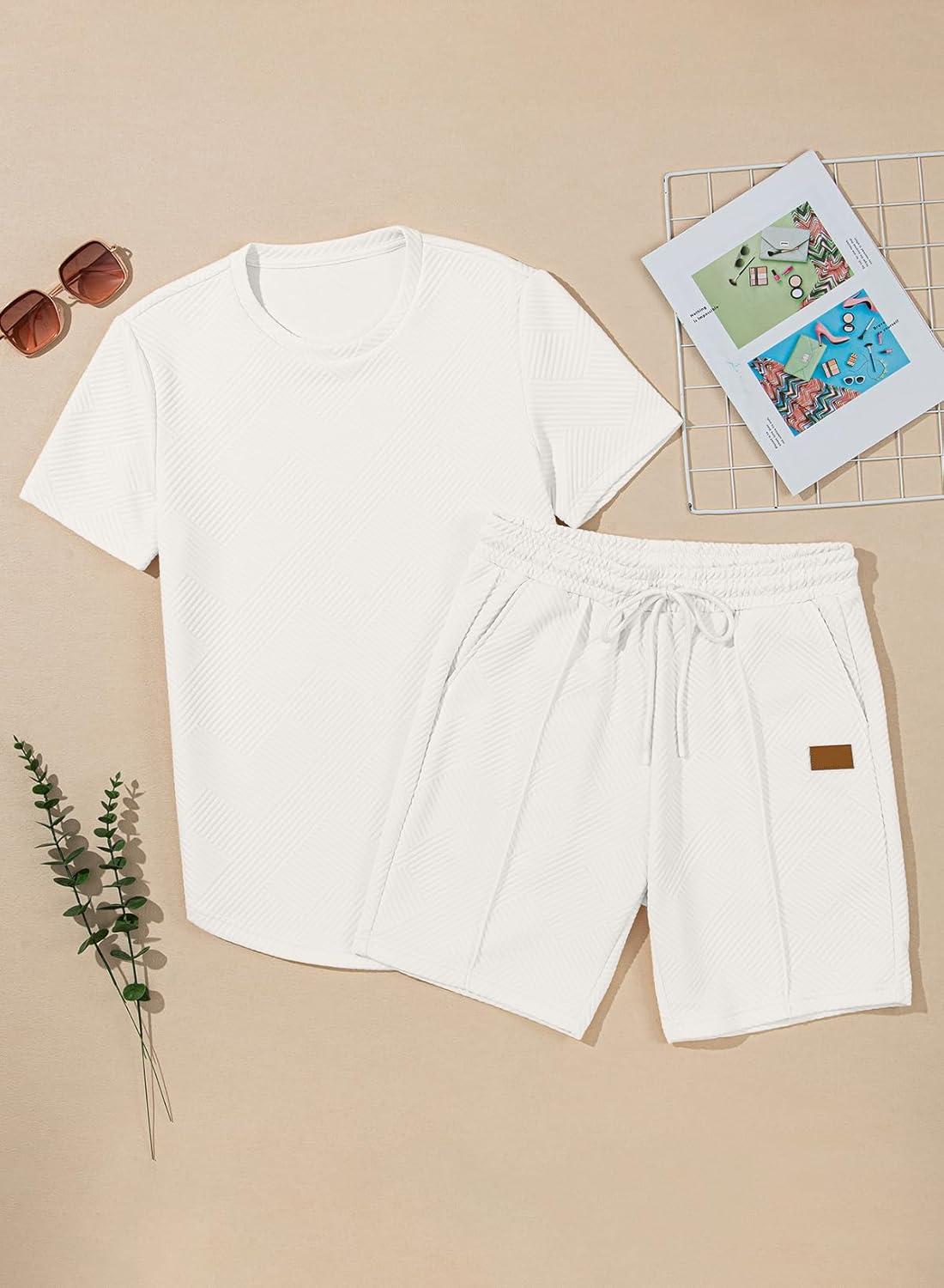 JMIERR Men’s Casual Short Sleeve T Shirts and Shorts Summer Beach Vacation 2 Piece Outfit Lounge Workout Sets(B1 White)