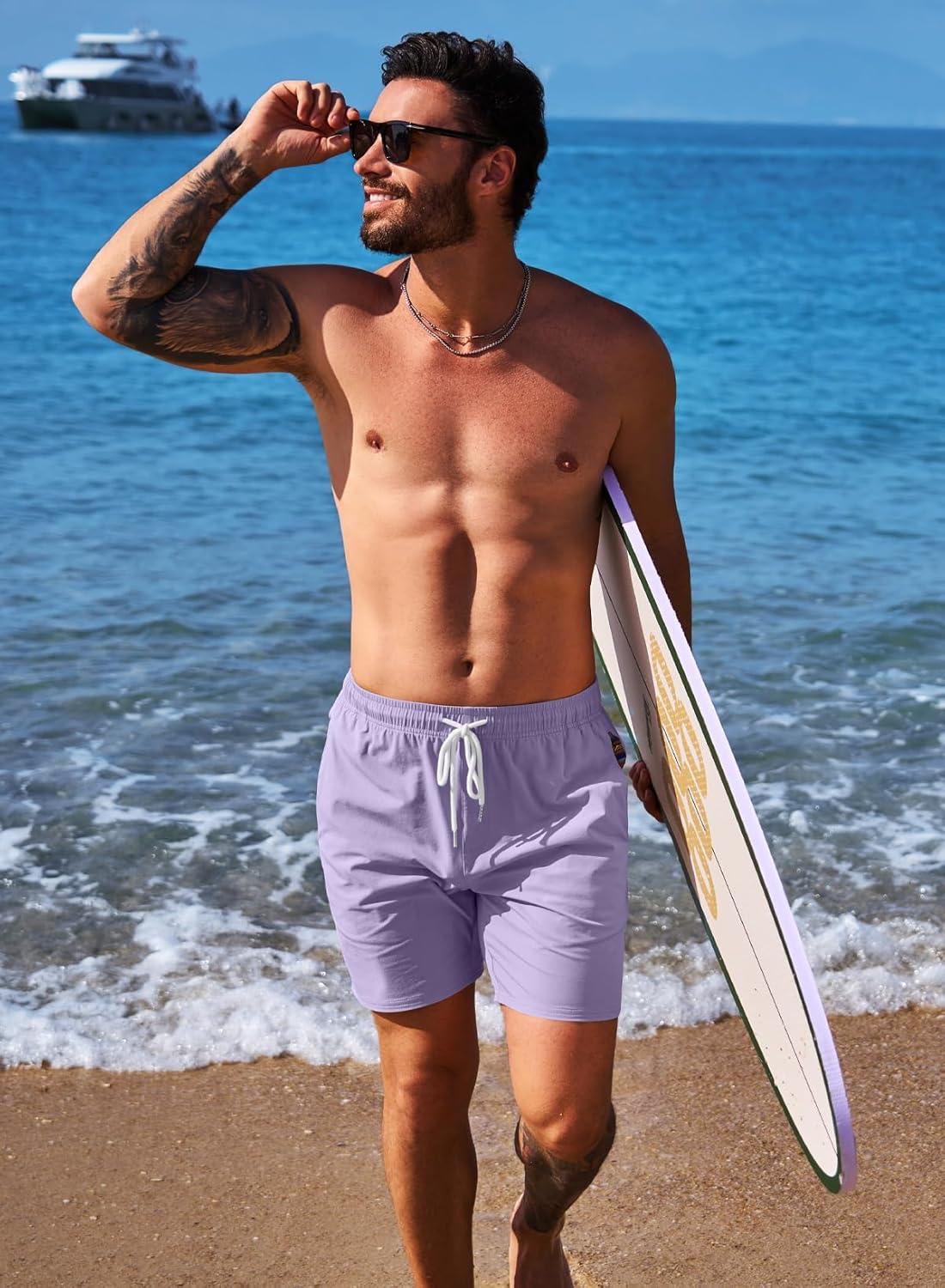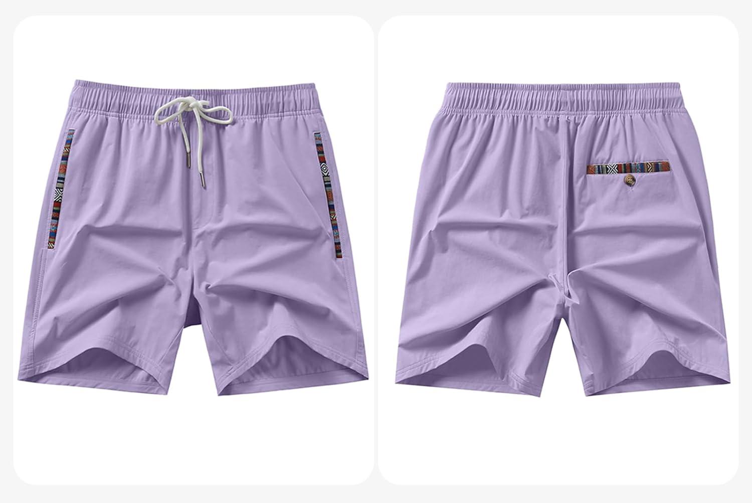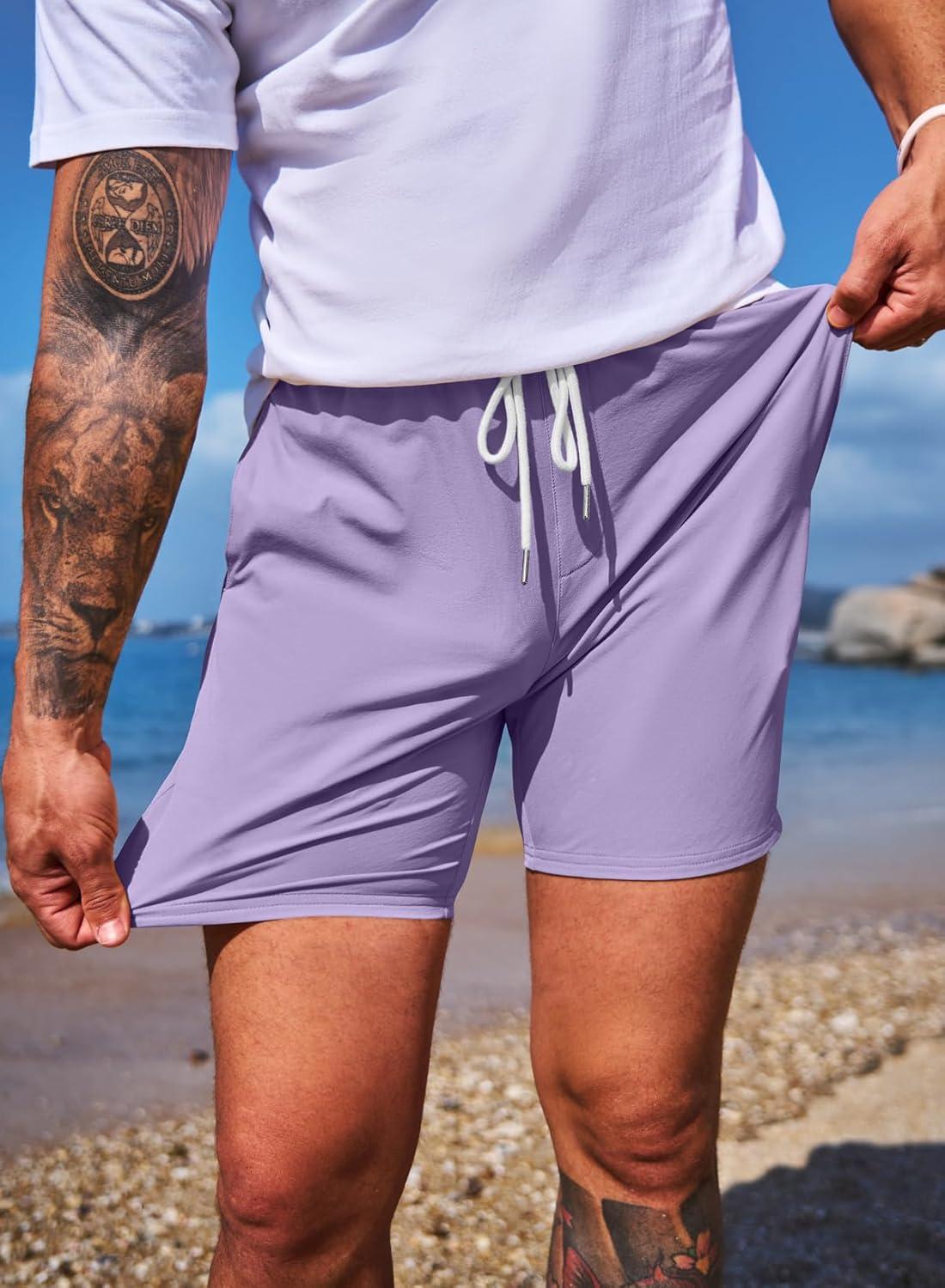 JMIERR Men’s Casual Shorts 5″/ 7″ Drawstring Summer Quick Dry Beach Stretch Waist Athletic Gym Short(5″ Orchid Petal)