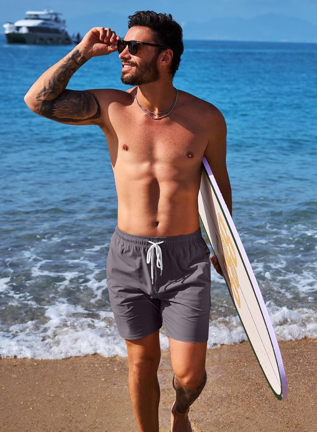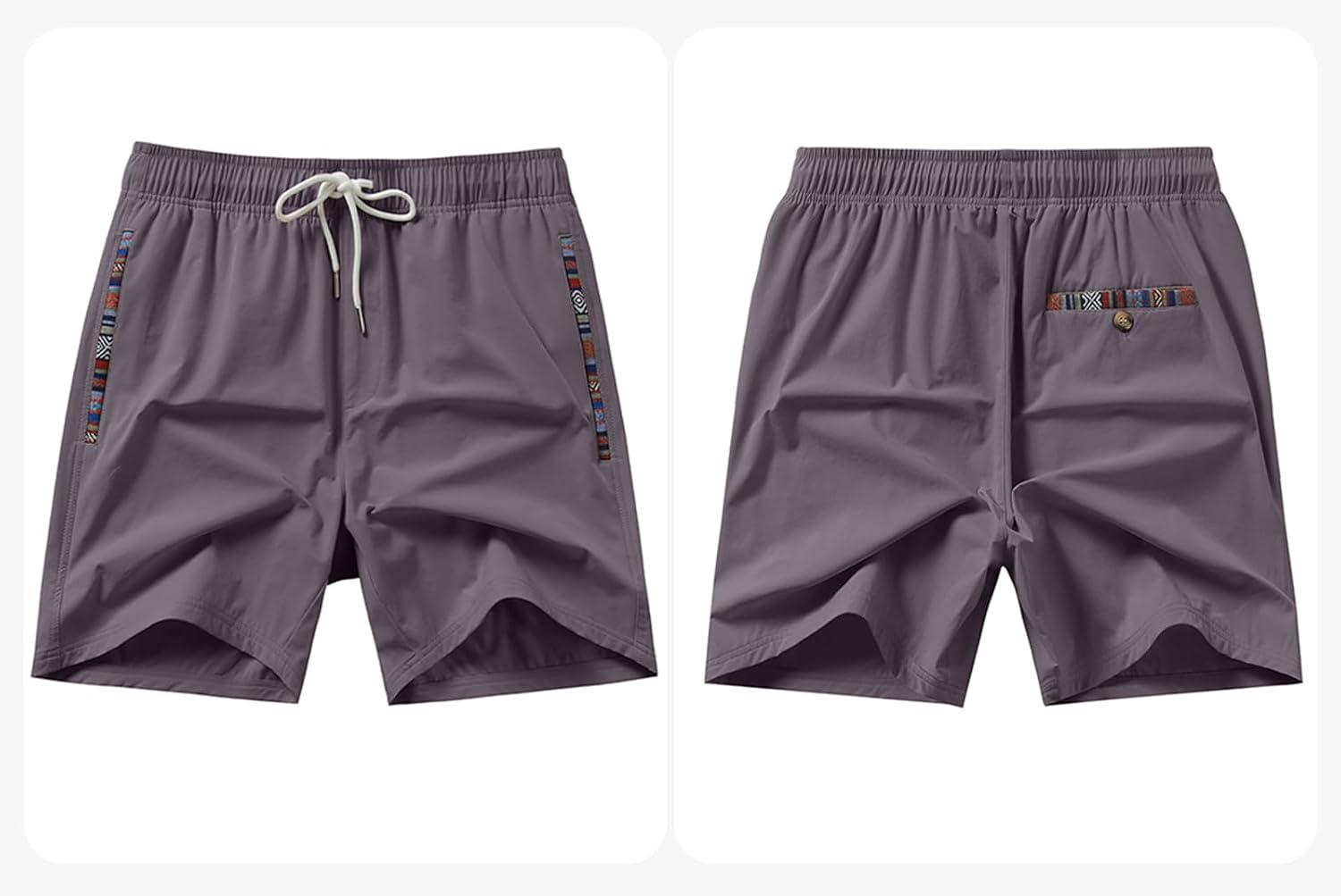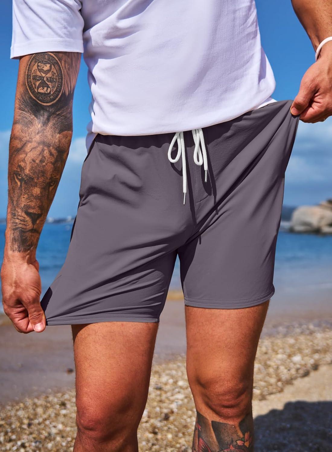 JMIERR Men’s Casual Shorts 5″/ 7″ Drawstring Summer Quick Dry Beach Stretch Waist Athletic Gym Short(5″ Toadstool)