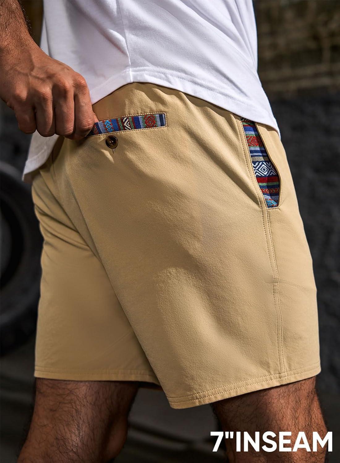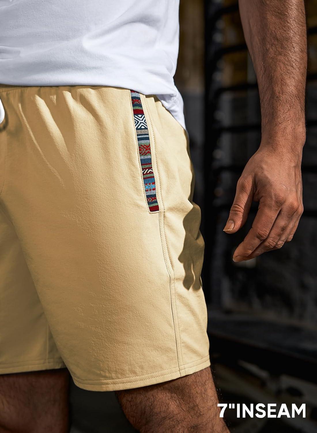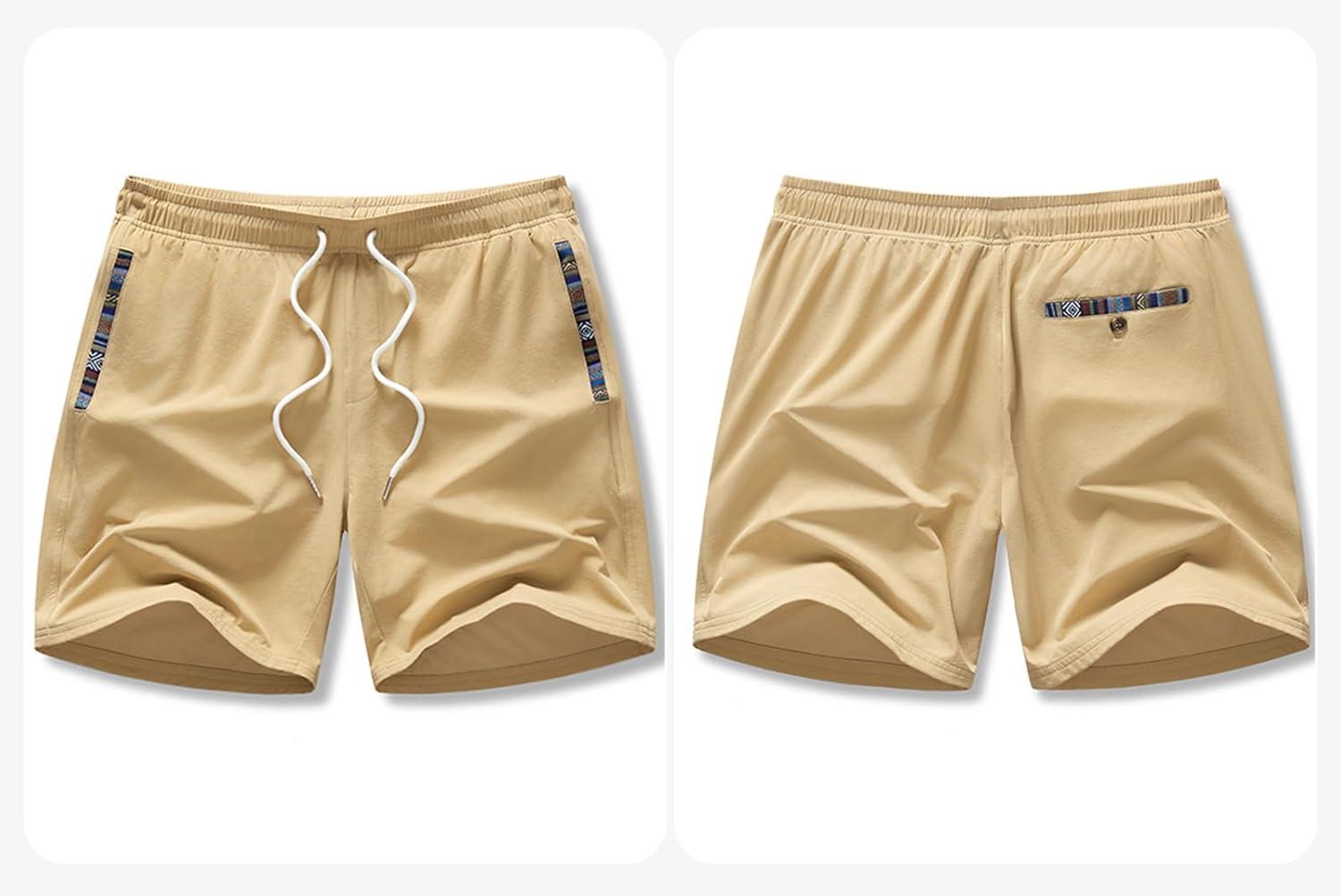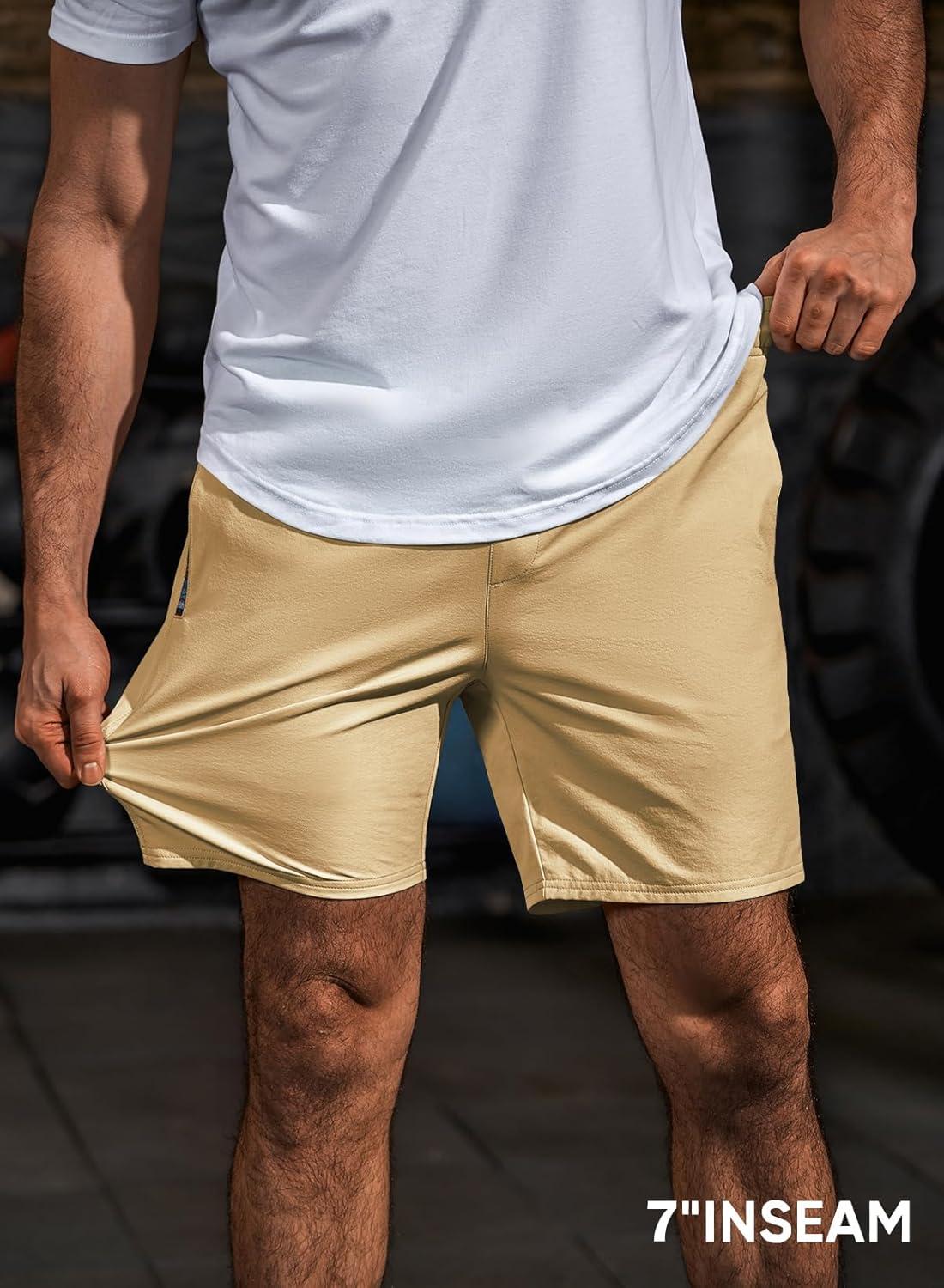 JMIERR Men’s Casual Shorts 5″/ 7″ Drawstring Summer Quick Dry Beach Stretch Waist Athletic Gym Short(7″ B-beige)