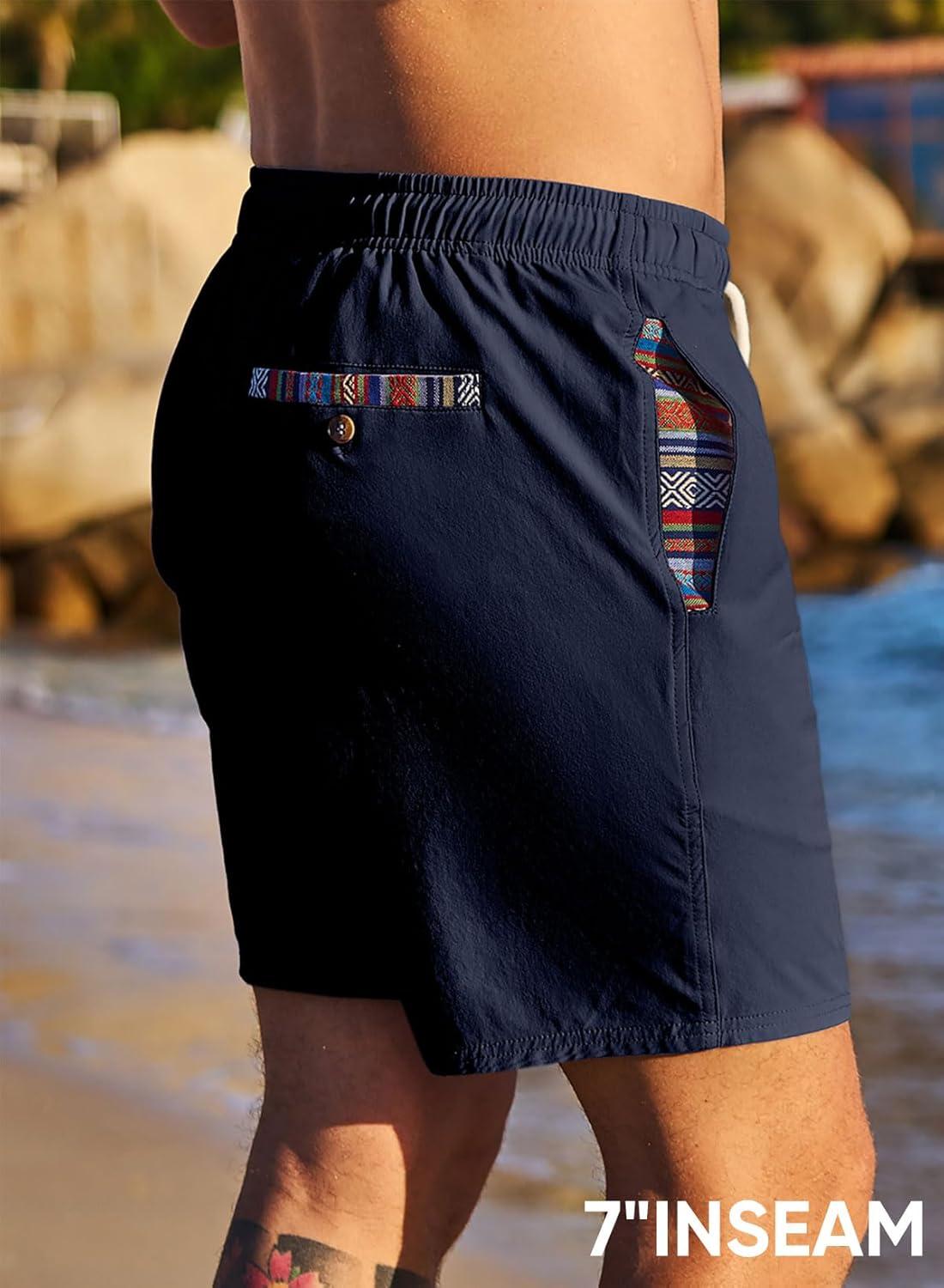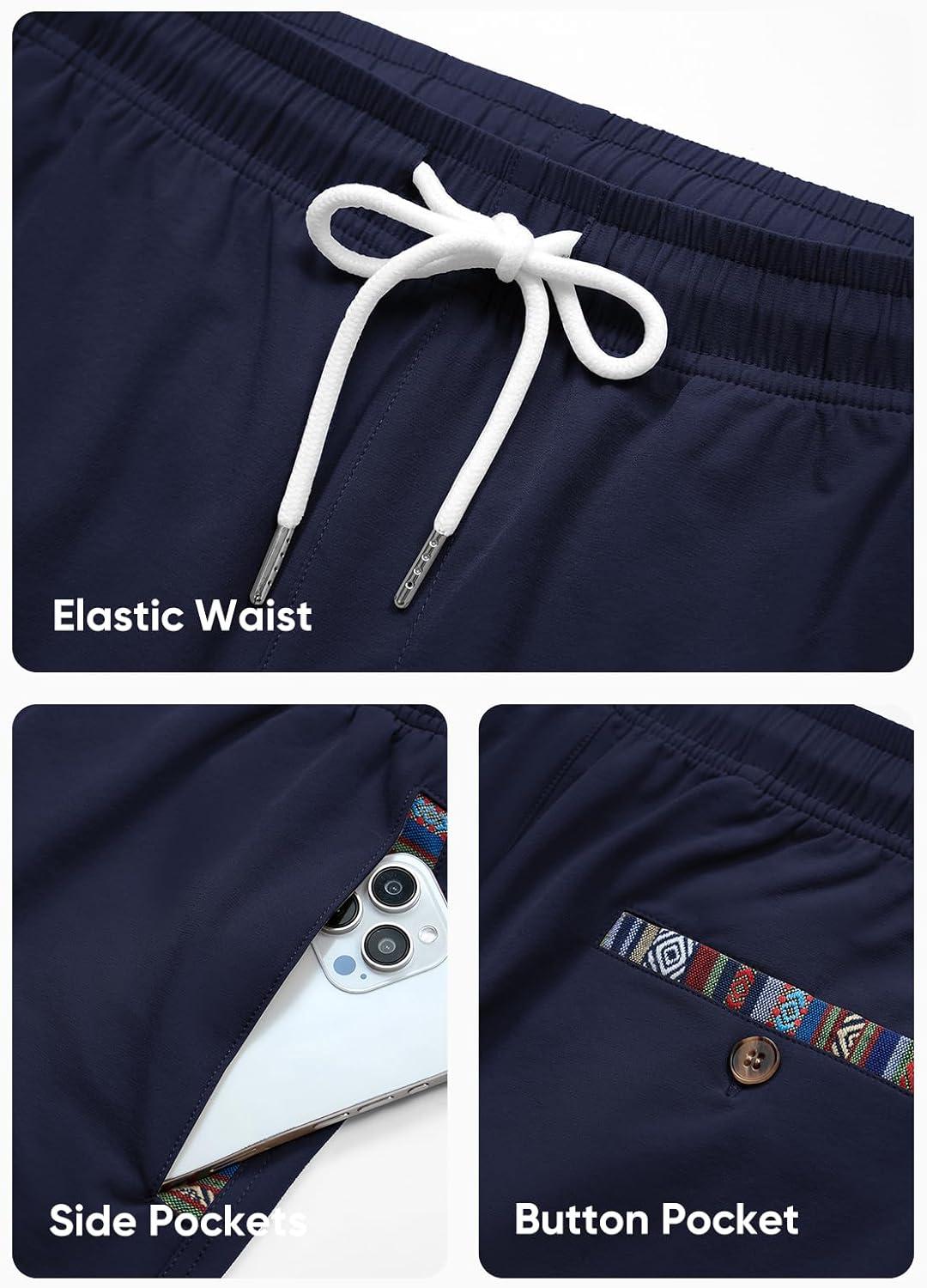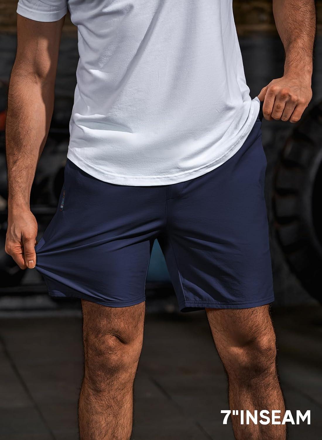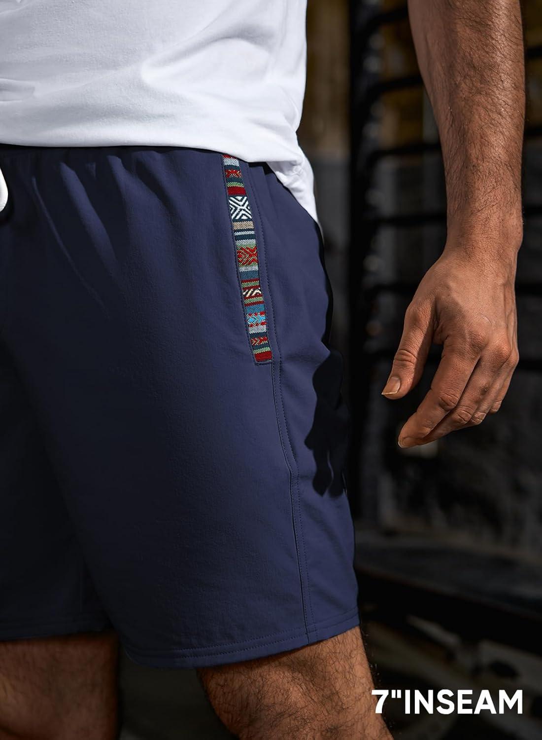 JMIERR Men’s Casual Shorts 5″/ 7″ Drawstring Summer Quick Dry Beach Stretch Waist Athletic Gym Short(7″ D-blue 1)