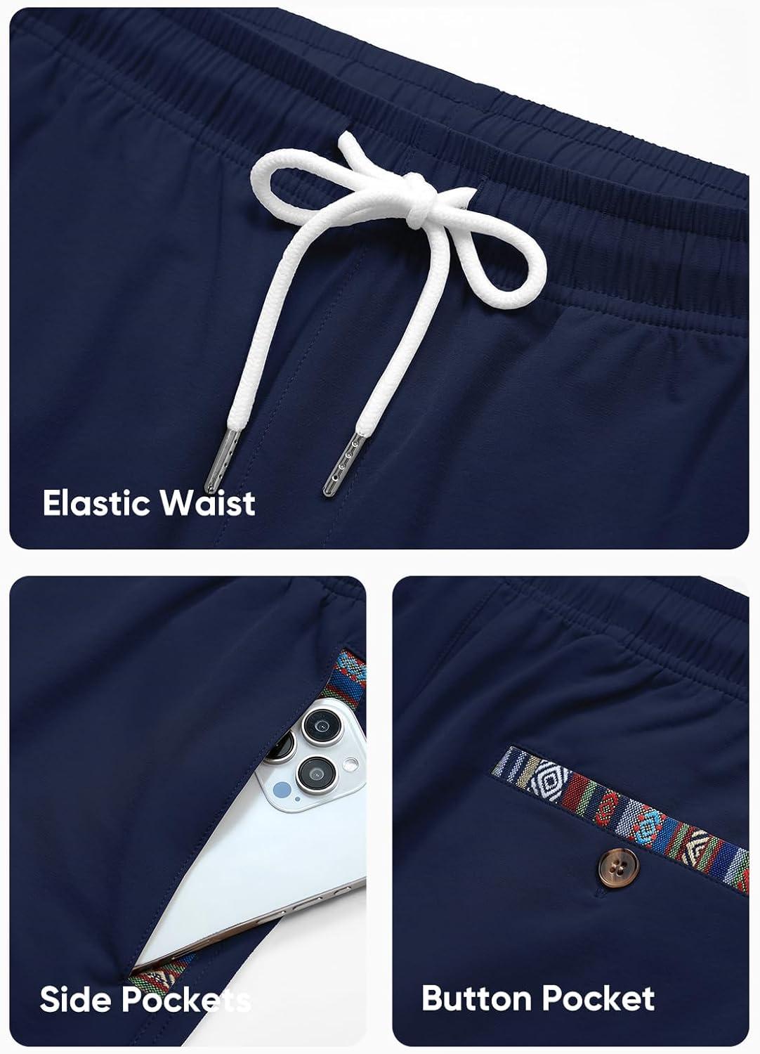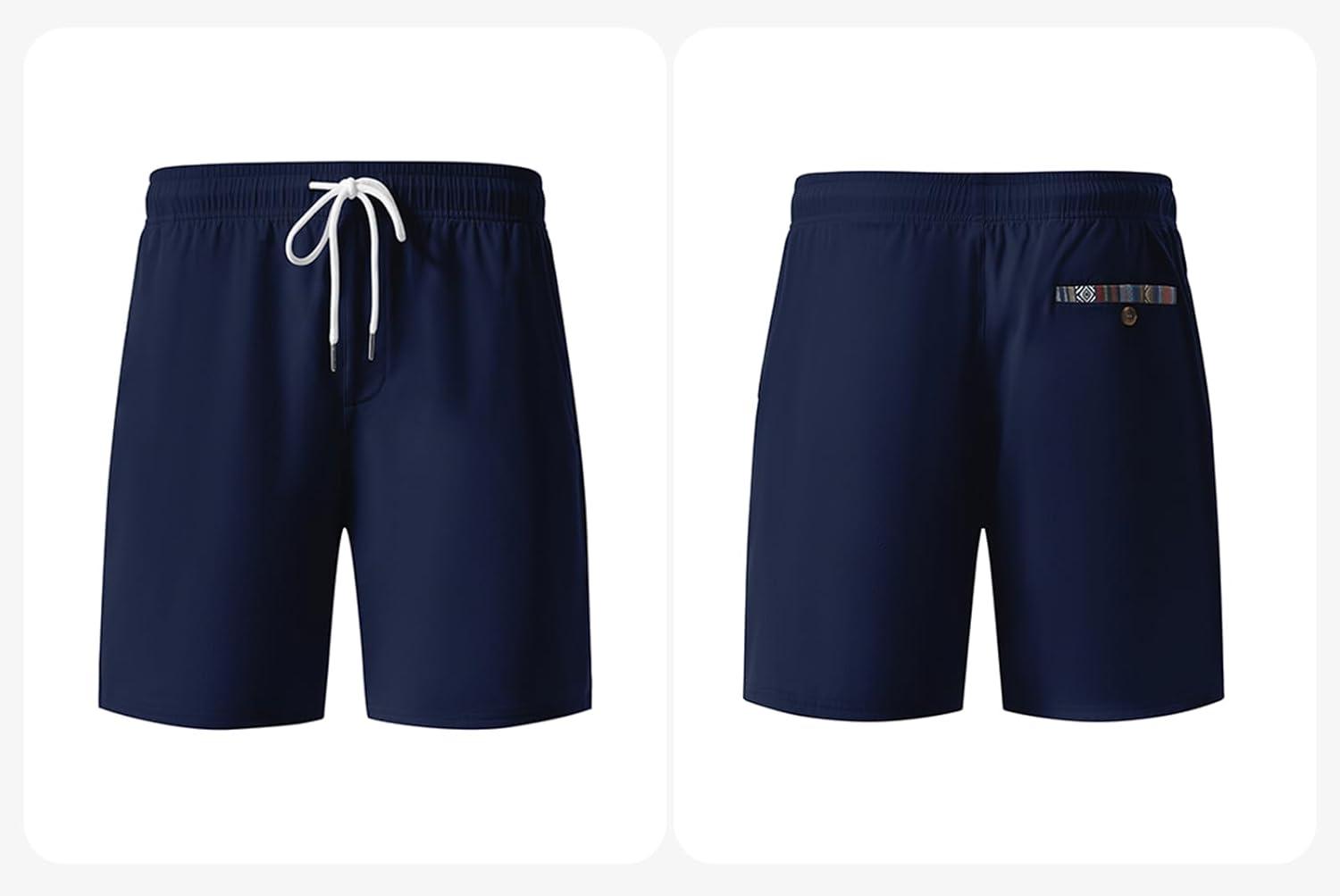 JMIERR Men’s Casual Shorts 5″/ 7″ Drawstring Summer Quick Dry Beach Stretch Waist Athletic Gym Short(7″ D-blue 2)