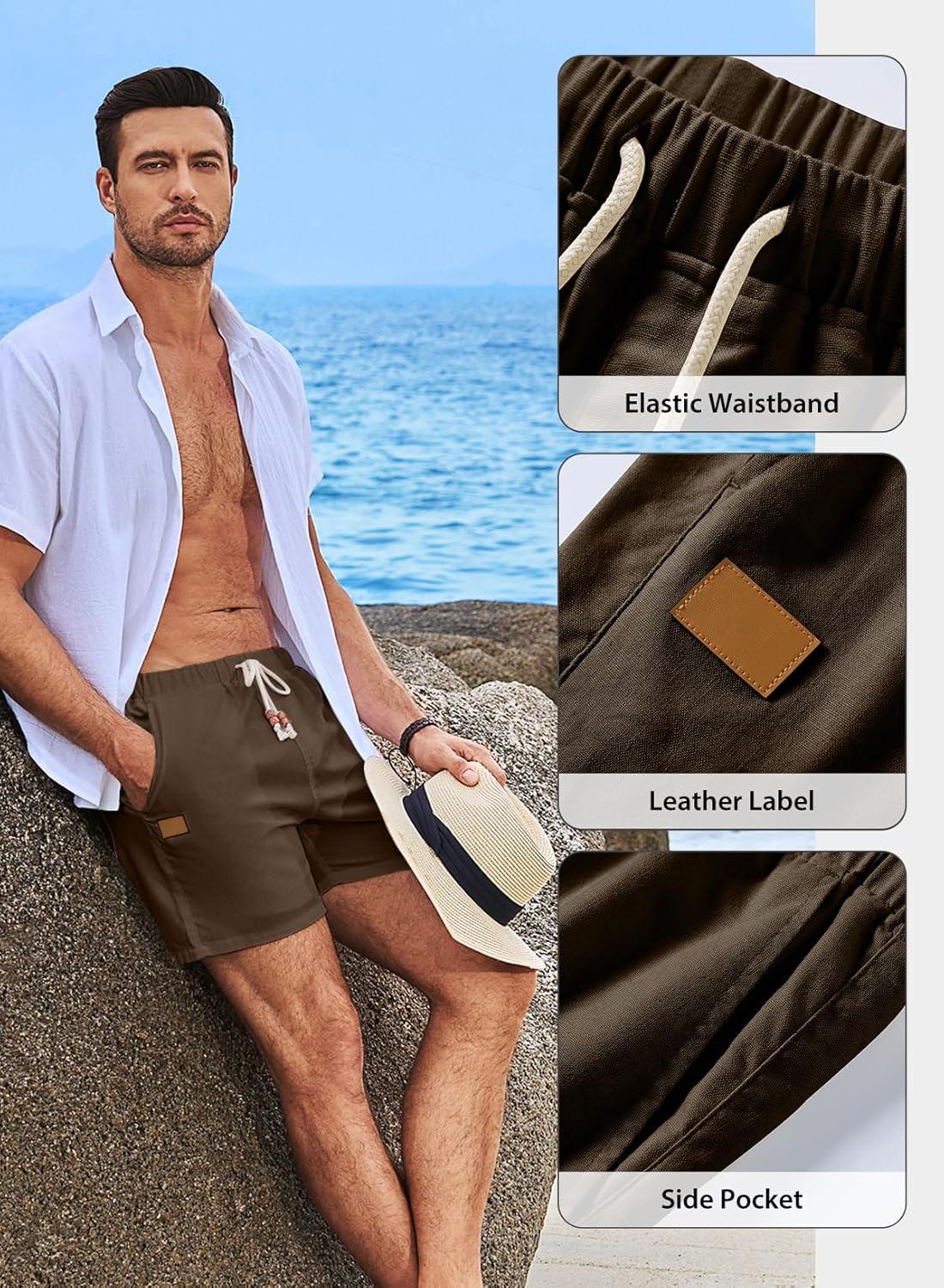 JMIERR Mens Casual Shorts – Cotton Drawstring Summer Beach Stretch Twill Chino Golf Short with Pockets(B Brown)