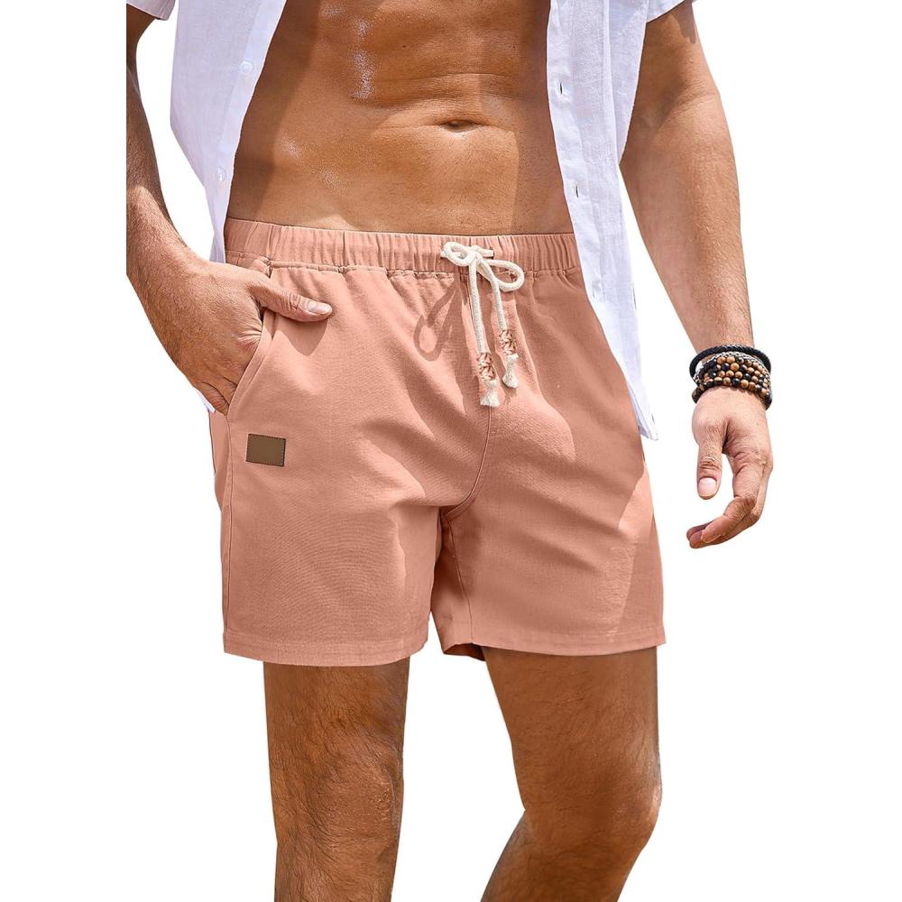 JMIERR Mens Casual Shorts – Cotton Drawstring Summer Beach Stretch Twill Chino Golf Short with Pockets(B Pink)