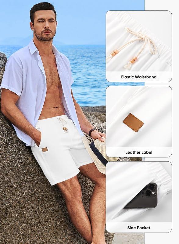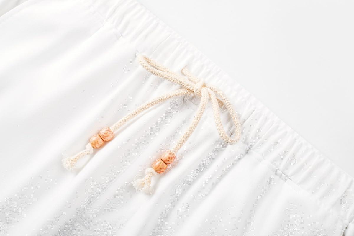 JMIERR Mens Casual Shorts – Cotton Drawstring Summer Beach Stretch Twill Chino Golf Short with Pockets(E0 White)