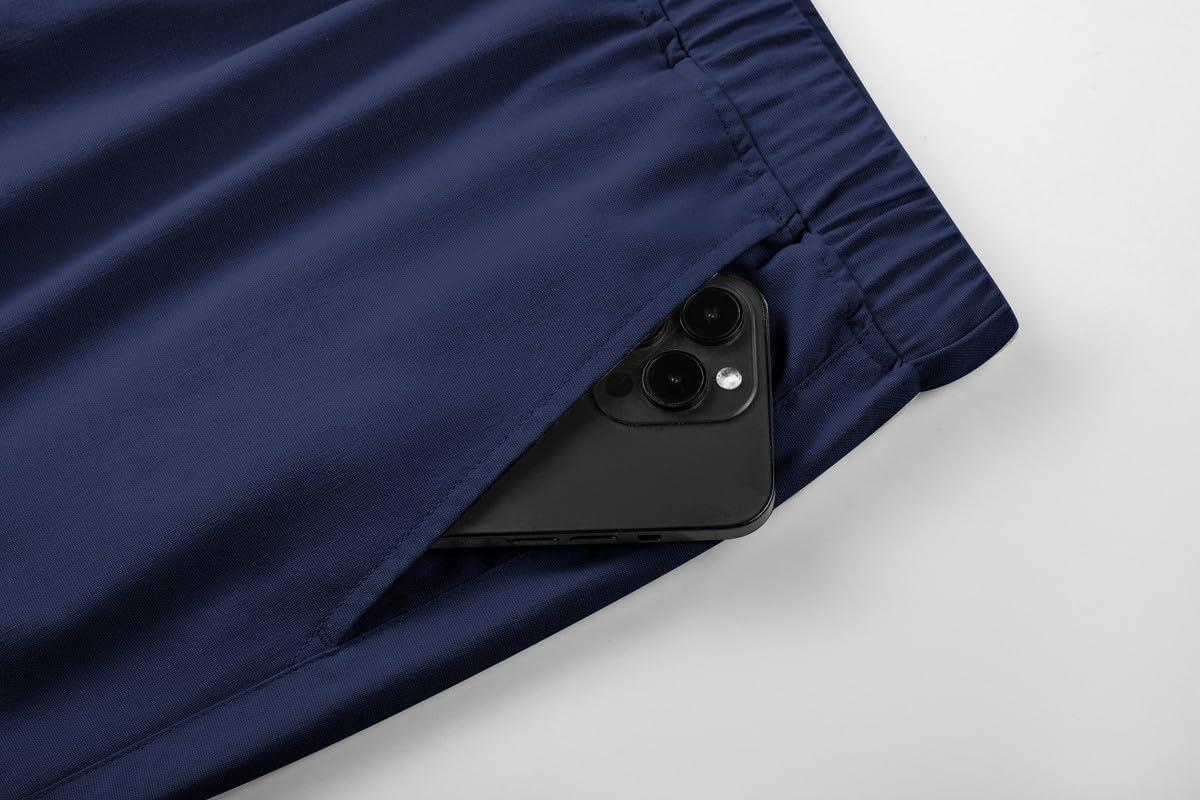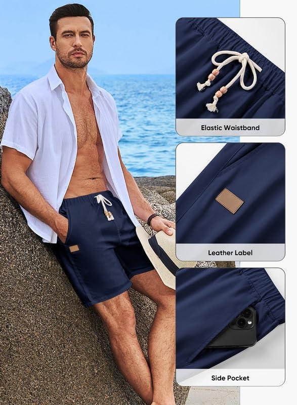 JMIERR Mens Casual Shorts – Cotton Drawstring Summer Beach Stretch Twill Chino Golf Short with Pockets(F Navy Blue)