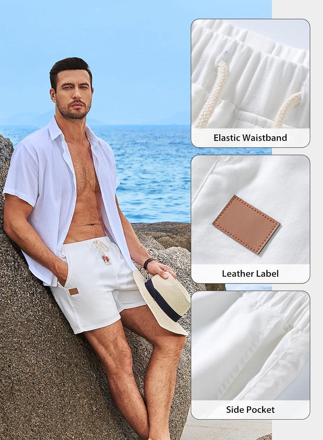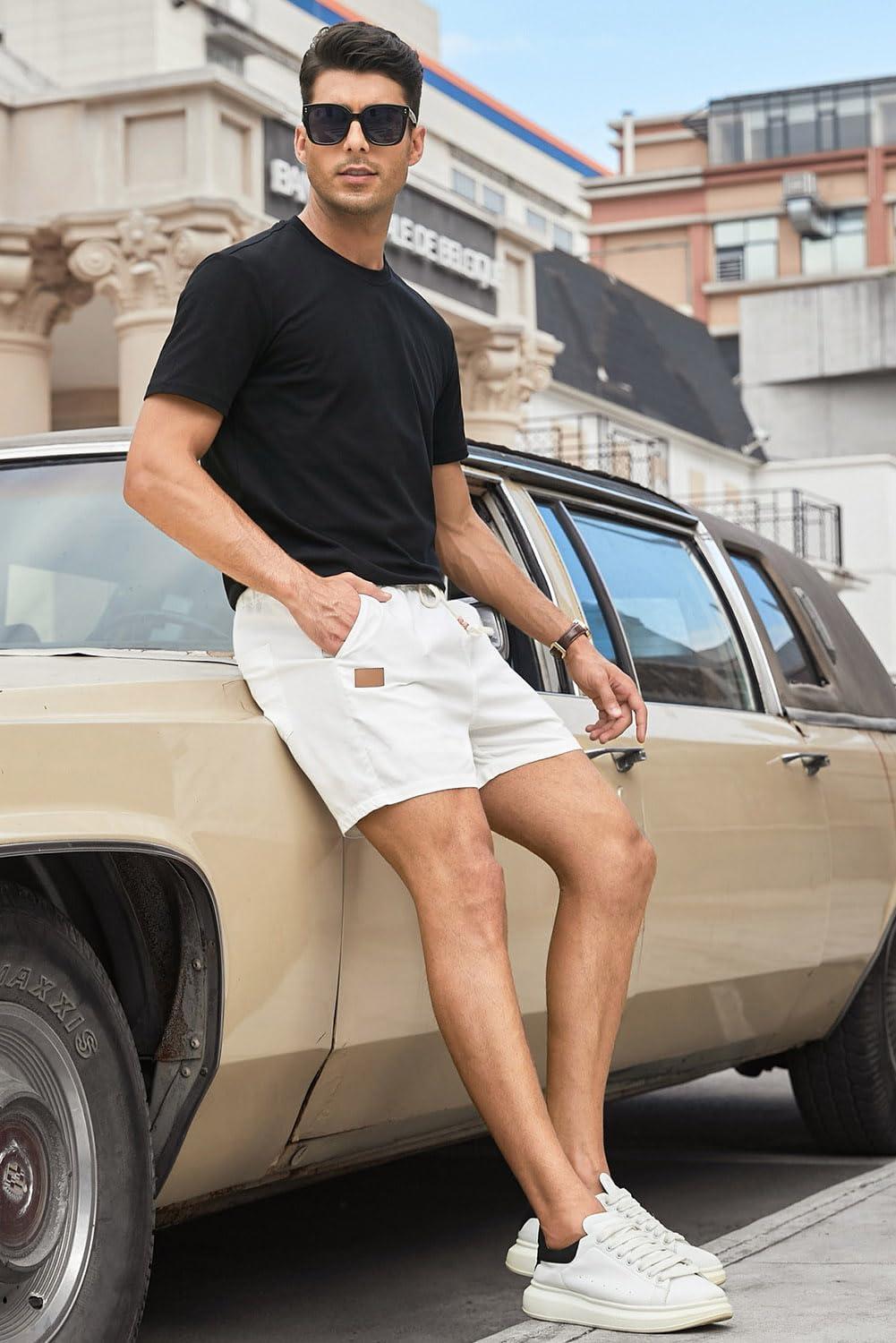 JMIERR Mens Casual Shorts – Cotton Drawstring Summer Beach Stretch Twill Chino Golf Shorts with Pockets(0 White)