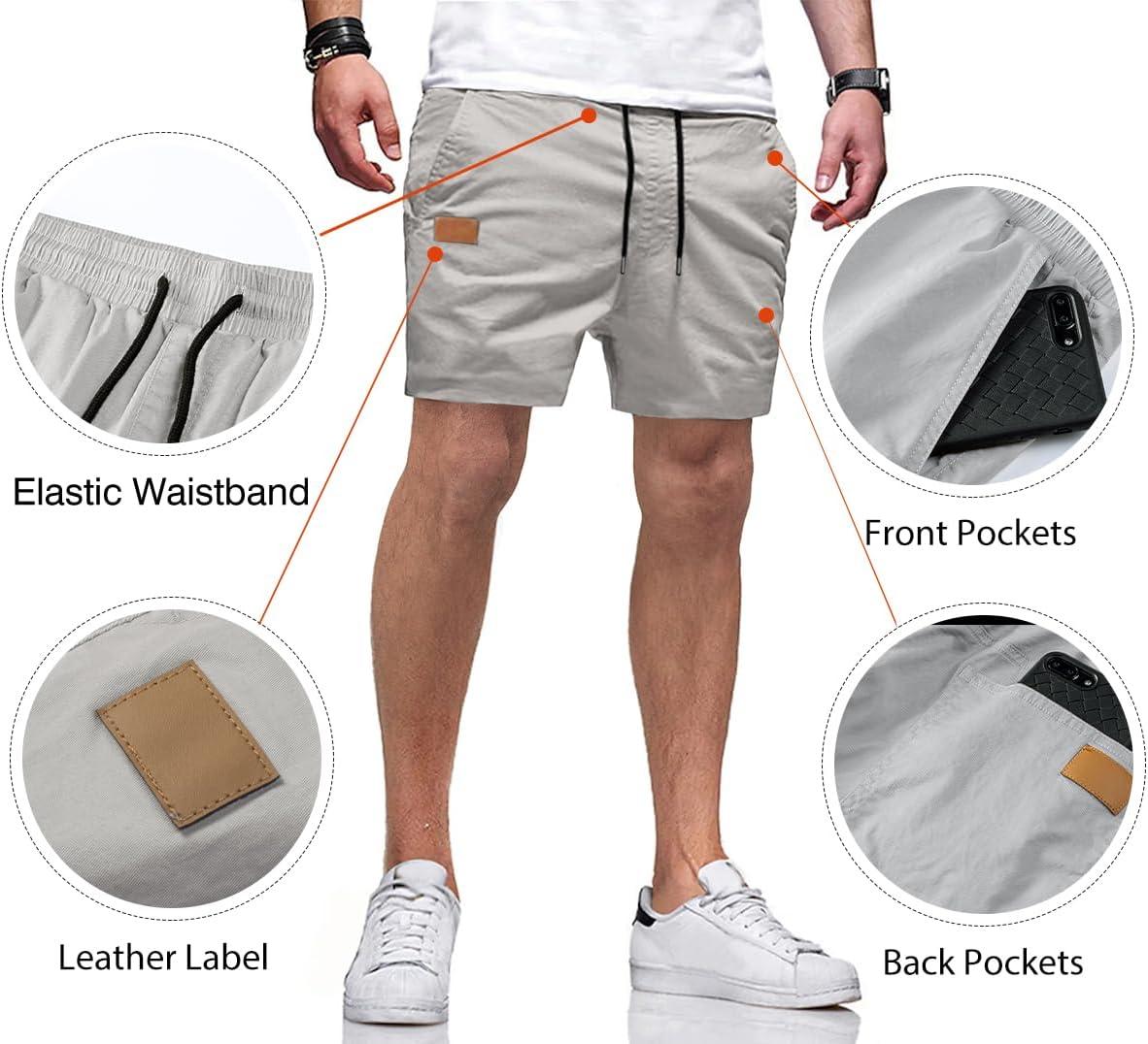 JMIERR Mens Casual Shorts – Cotton Drawstring Summer Beach Stretch Twill Chino Golf Shorts with Pockets(A1 Grey1)
