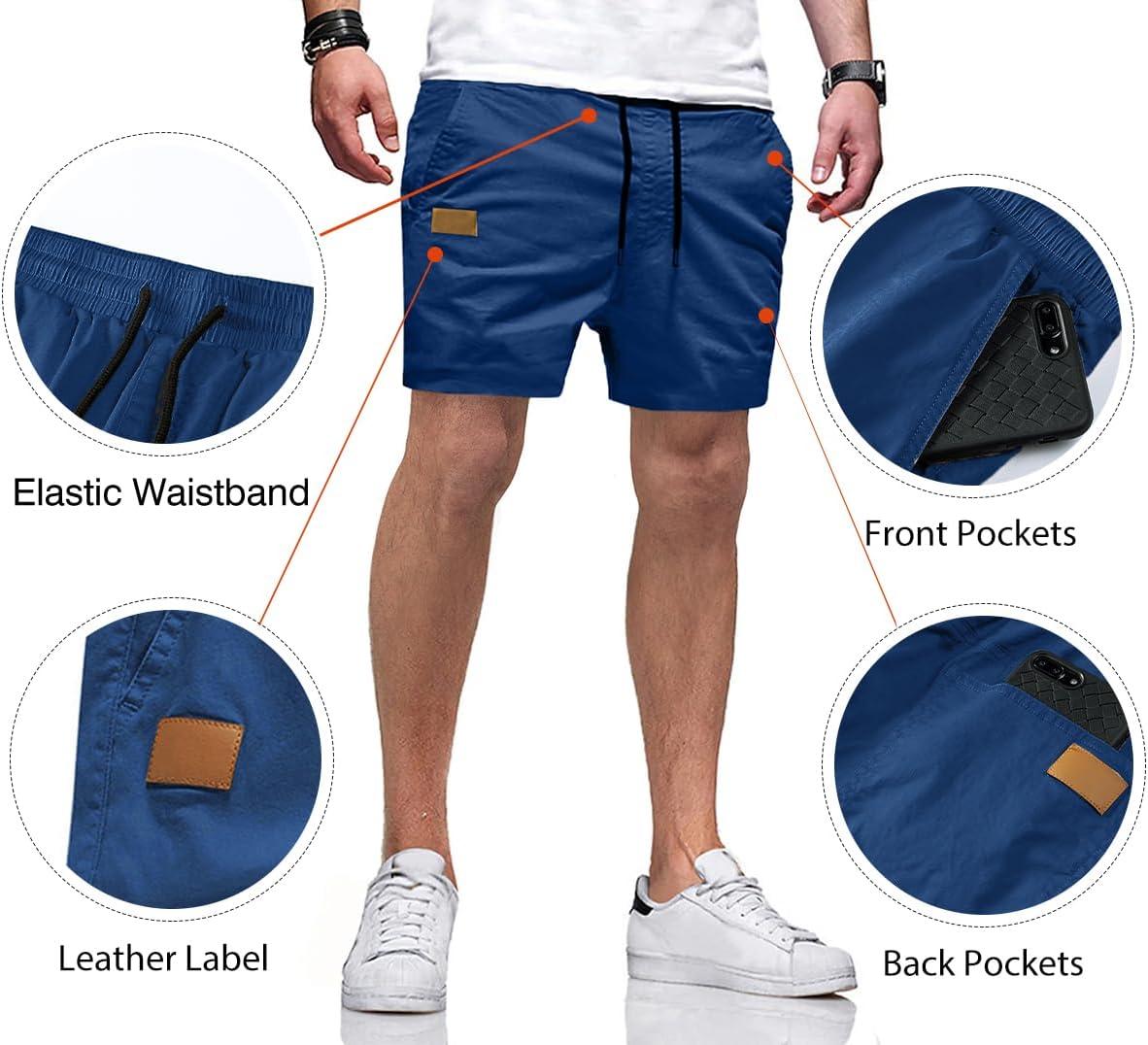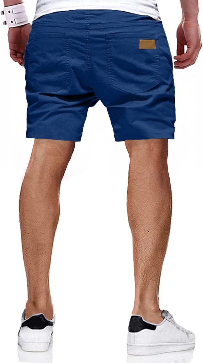 JMIERR Mens Casual Shorts – Cotton Drawstring Summer Beach Stretch Twill Chino Golf Shorts with Pockets(A2 Blue2)